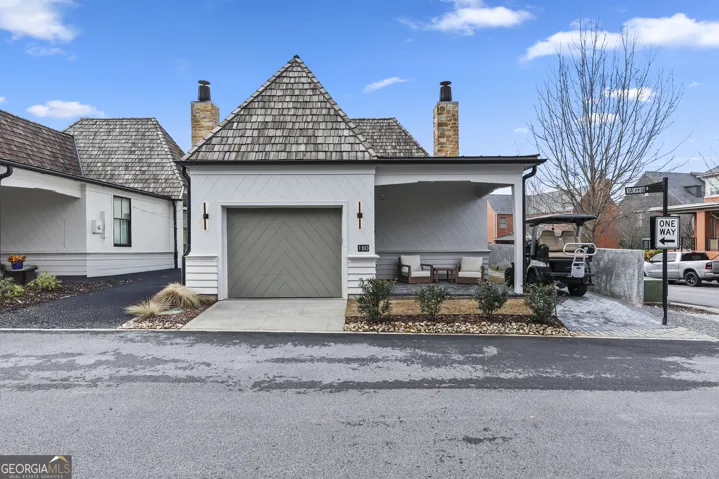 Rare opportunity to own a single-level ranch home in the heart of Trilith, one of the area's most sought-after communities. This immaculate cottage features 2 bedrooms and 2 full baths on one thoughtfully designed level. A charming front porch welcomes you into a bright living space with soaring 15-foot vaulted ceilings, creating an open and inviting atmosphere.