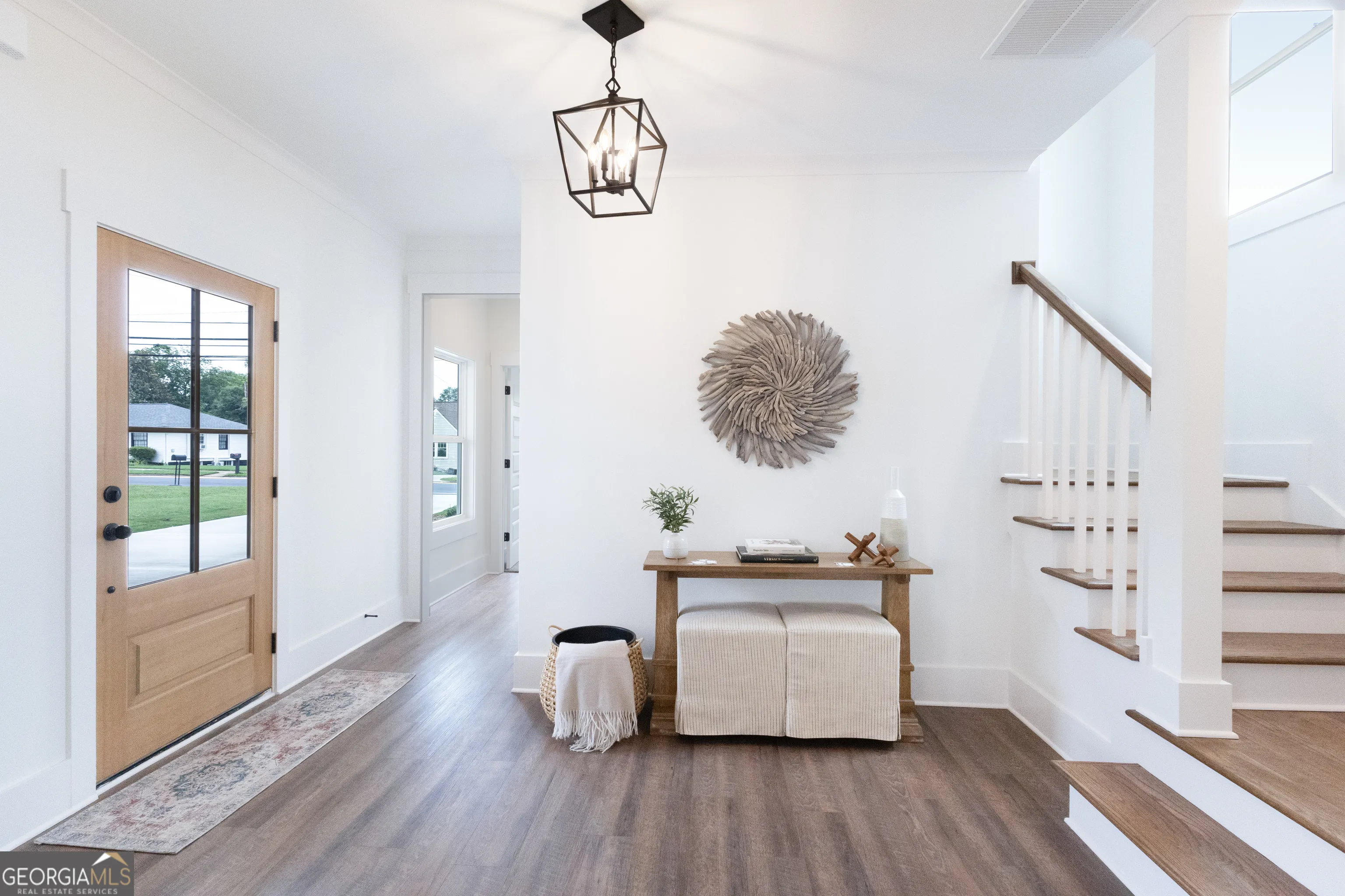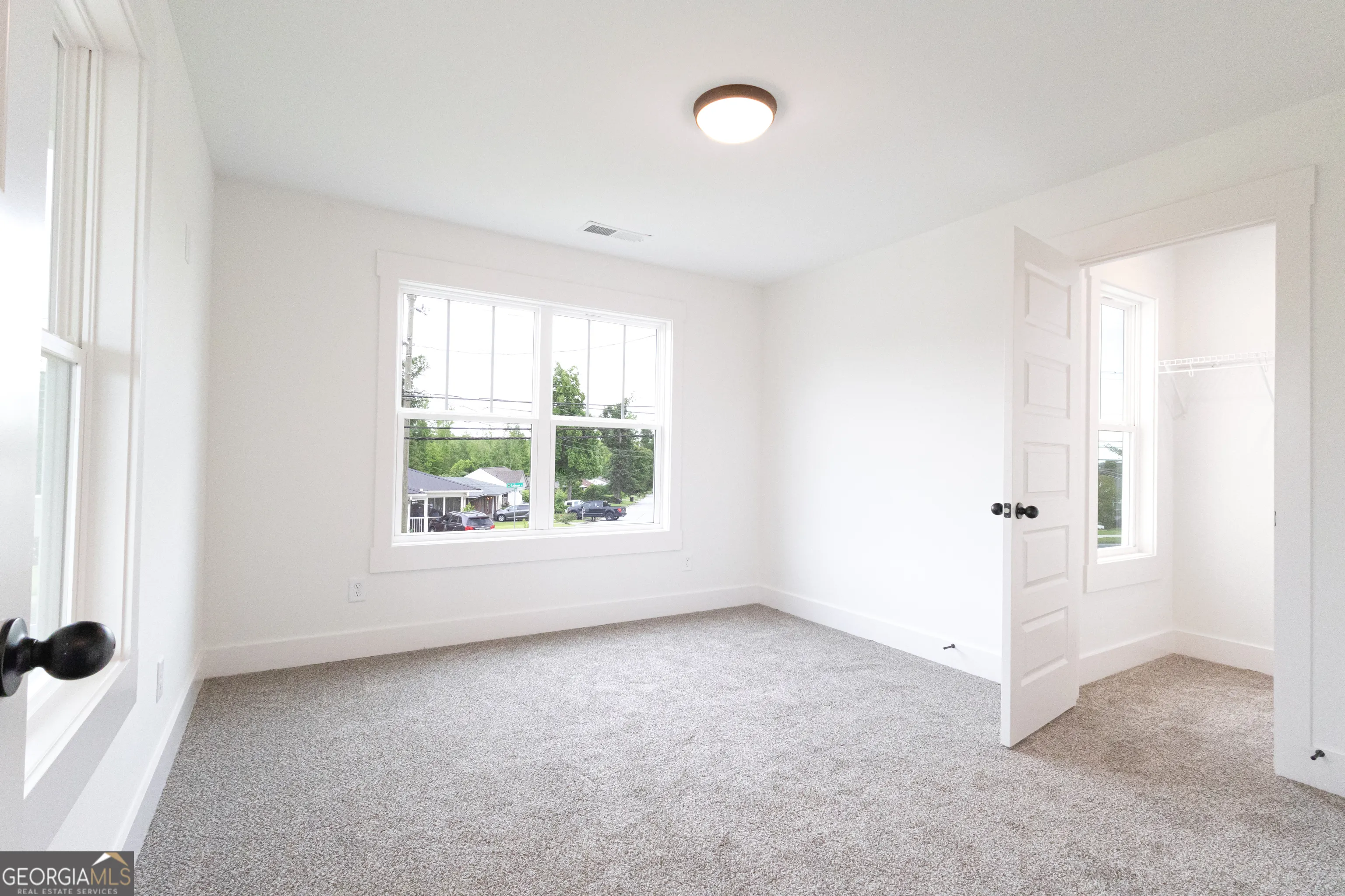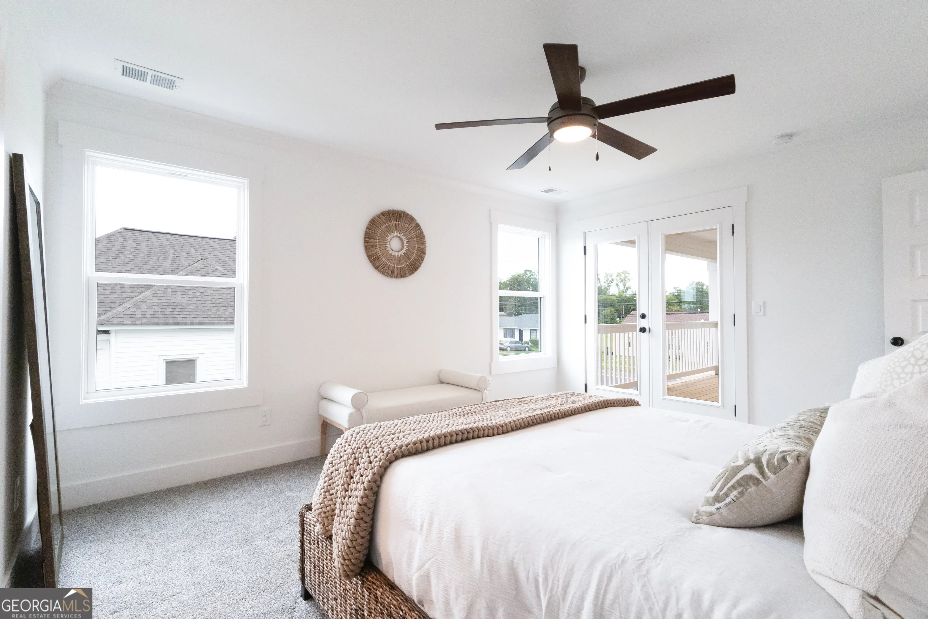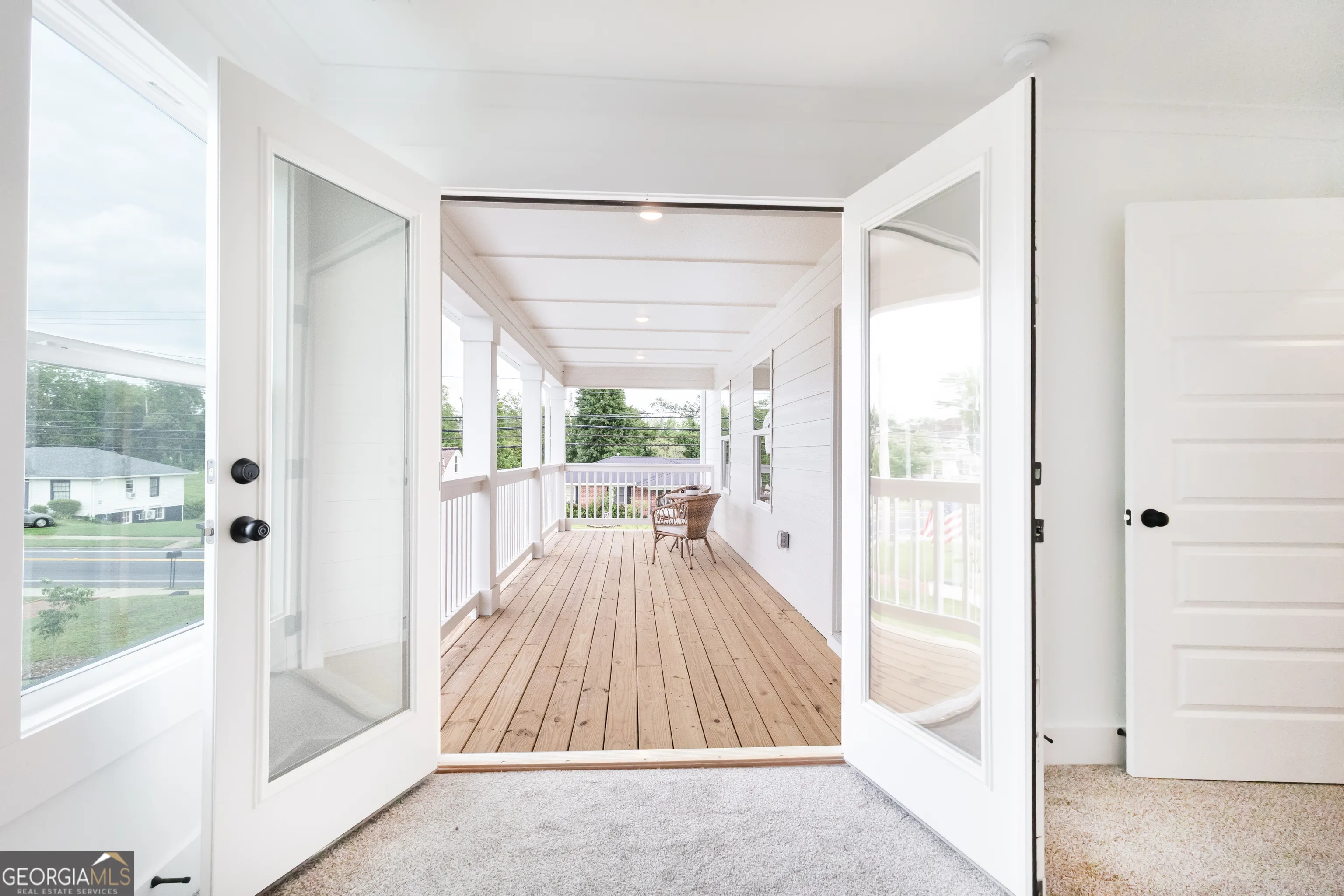 Charming Victorian-inspired home with double piazza porches and private back patio. This adorable home features 4 bedrooms and 3 full bathrooms. Enter the two story foyer from the covered piazza porch. The open-concept living room and kitchen features a brick fireplace, wood or LVP flooring, gleaming stone countertops, large kitchen island, ss appliances, and formal dining space. The main floor guest bedroom is situated perfectly for a home office. The luxurious primary bedroom features spa-like bathroom and french doors out to the upstairs covered balcony. Two additional bedrooms and shared bathroom complete the upper floor. The outdoor spaces are abundant. Back patio, two covered porches, and the large covered parking area doubles as an additional outdoor entertainment area featuring bead board ceiling. Enjoy being walking distance to downtown Newnan and all the dining and shopping Newnan has to offer.