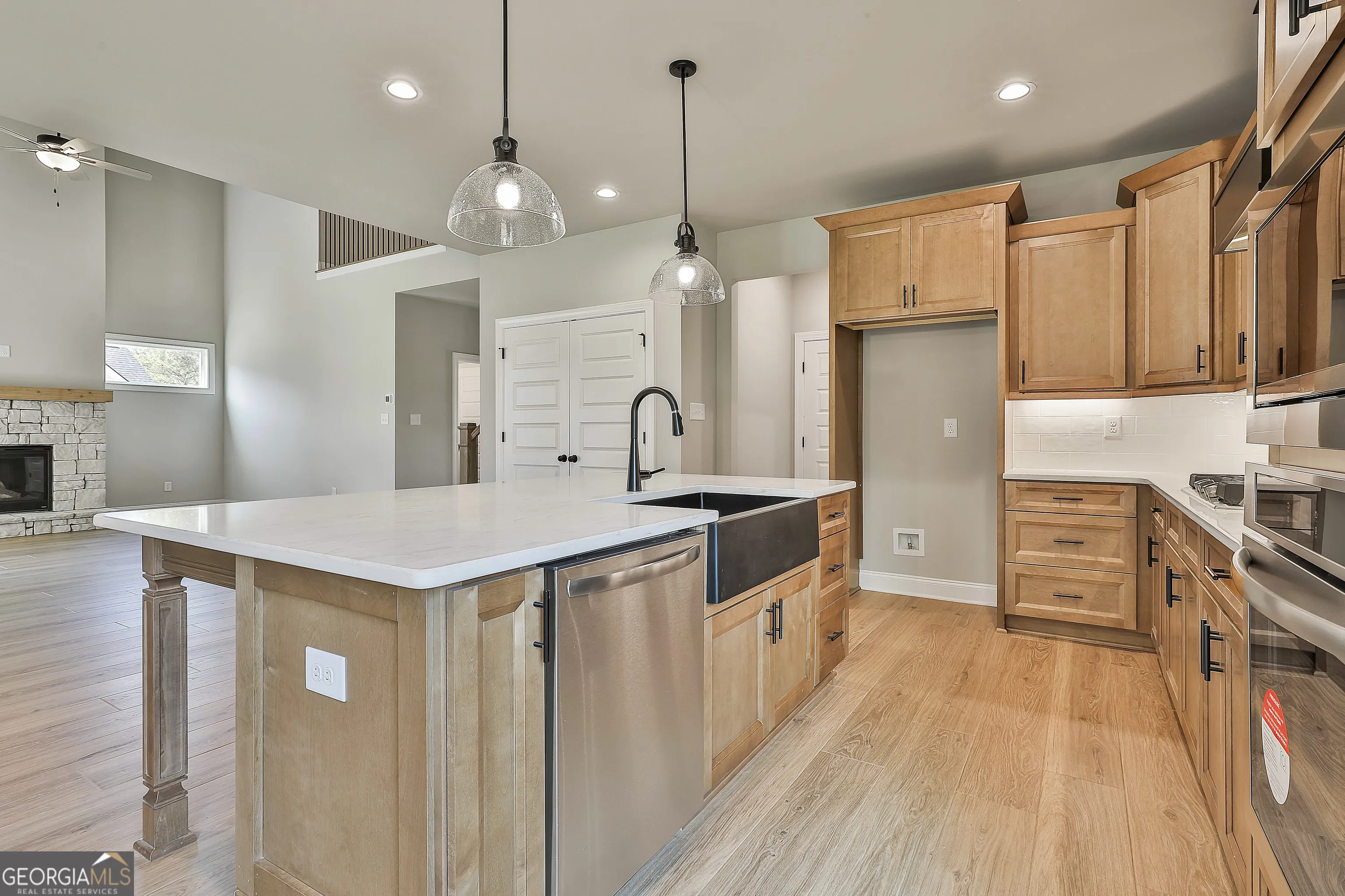 MANTLE B by Jeff Lindsey Communities Master on main. Guest bedroom with private bath on main. Open floor plan with large kitchen island and breakfast area open to two story family room – all with hardwood floors. Upstairs are two bedrooms with walk in closets and a Jack and Jill bath. Covered porches & exterior fireplace on back porch. This home is a MUST see!