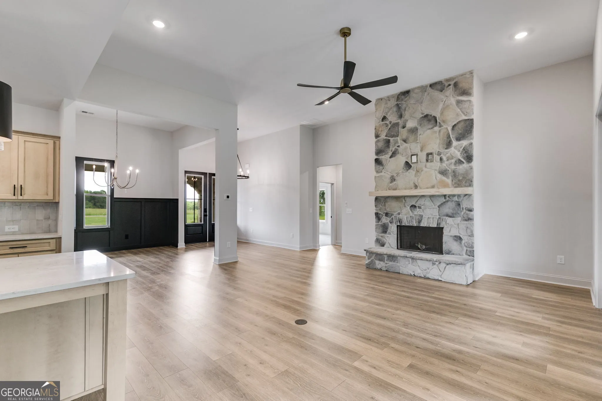 WOAH NELLIE…..HERE’S ANOTHER BEAUTIFUL HOME IN A GORGEOUS SETTING! The Meadows at Lake Circle is located in a stunning area of Haralson County known as The Flat Woods Community. It’s convenient to I-20, Hwy 120, Rome, Carrollton and the surrounding smaller towns. This home has so many phenomenal features they are difficult to list. Here we go…. Owner’s Suite on MAIN LEVEL, along with 3 other secondary bedrooms. There is a 5th Bedroom and full bathroom upstairs, which could also be used as an office or bonus space. When you enter the home through the wide foyer, you’ll see the formal dining room to the right with high judges paneling and an elegant chandelier. The family room has a stone wood burning fireplace and has double french doors leading to the covered back patio. The kitchen is a cook’s dream with Mystic Beige (cherry wood stained with a light glaze) wood cabinetry and QUARTZ countertops. The PROFESSIONAL THOR GAS COMMERCIAL RANGE is a delightful upgrade with a decorative range hood. The Owner’s Suite is delightful with Fantasy Brown Granite Countertops in the bathroom, freestanding soaking tub and cool tiled shower with bench seat and lots of STYLE! This home EXUDES style and sophistication! You will not be disappointed and the finished product is sure to please. This home is equipped with a SMART HOME PKG – Zoned HVAC – Spray Foam Insulation in the attic – SUPERB WARRANTY with 10 year structural warranty. Don’t sleep on this one, or it could be too late. Agent is happy to meet and go over all the Designer Selections in your personal design meeting.