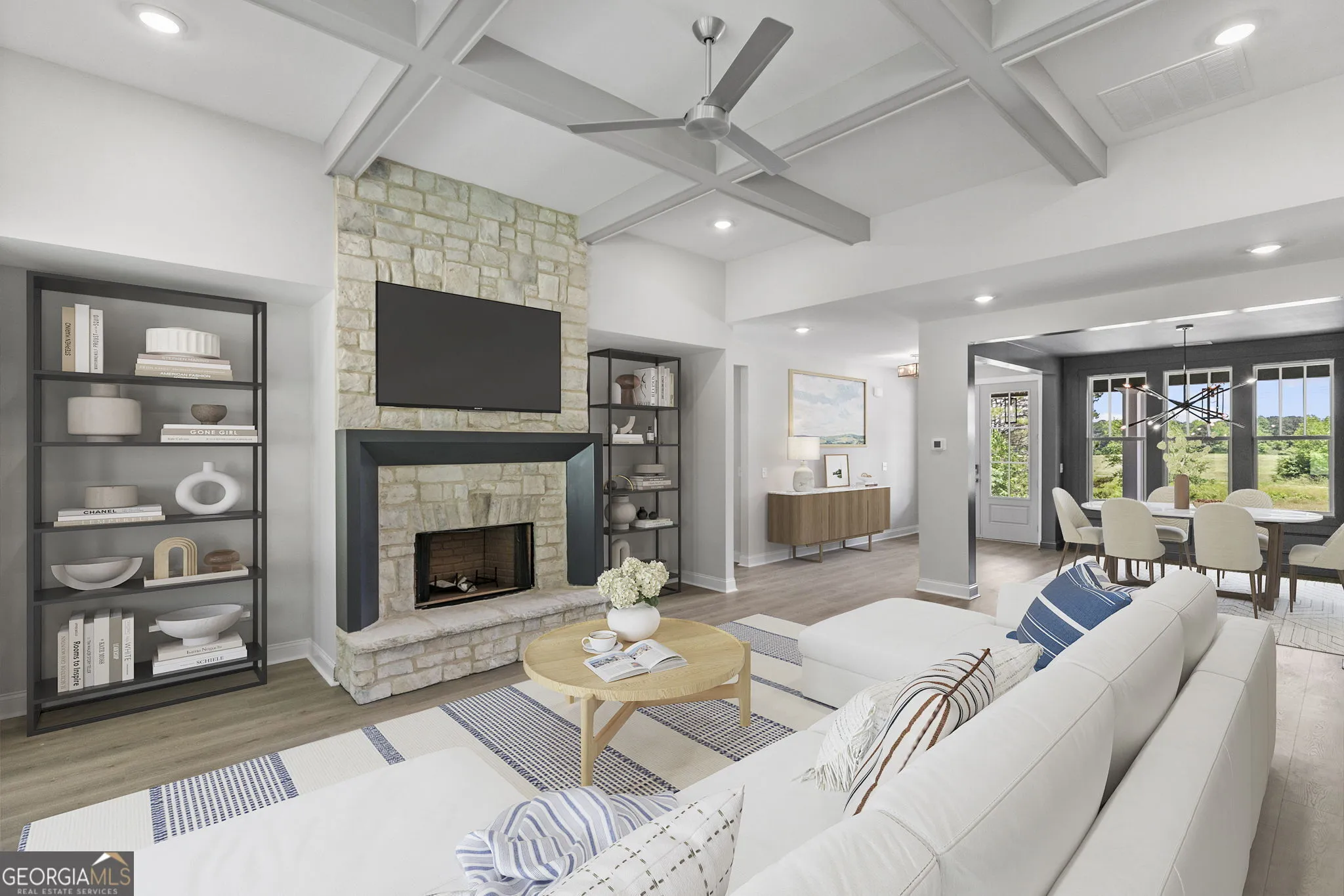WAIT ‘TIL YOU SEE THIS BEAUTY! The Meadows at Lake Circle is located in a stunning area of Haralson County known as The Flat Woods Community. It’s convenient to I-20, Hwy 120, Rome, Carrollton and the surrounding smaller towns. This home has a spectacular layout that is conducive to all types of living situations. The owner’s suite is on the MAIN LEVEL, along with 2 other secondary bedrooms. Upstairs there are 2 more secondary bedrooms, a bathroom and a media/loft/bonus area. As you enter the home through the lovely foyer, you’ll find the formal dining room on the left and then it opens to a gracious family room with coffered ceiling and wood burning floor to ceiling stone fireplace. The kitchen is massive with a huge central island, THOR GAS COMMERCIAL RANGE and decorative vent hood that will blow you away. The Pacific Sand cabinets give a warm feel, along with the gorgeous tiled backsplash and Calacatta Bali Quartz Countertops. Such a soft feel with gorgeous wood floors and extraordinary lighting throughout. This home is also equipped with a SMART HOME PKG, Spray Foam Insulation in attic, Covered Back Patio, Superb 1-2-10 Warranty (which includes a 10 year structural warranty). Designer finishes and accents throughout are the cherry on top of this delightful cake! Don’t sleep on this one!