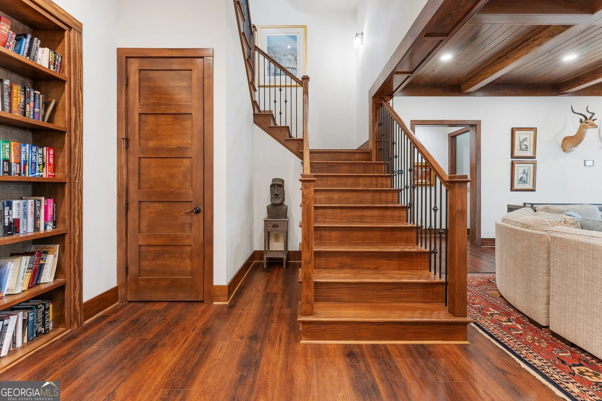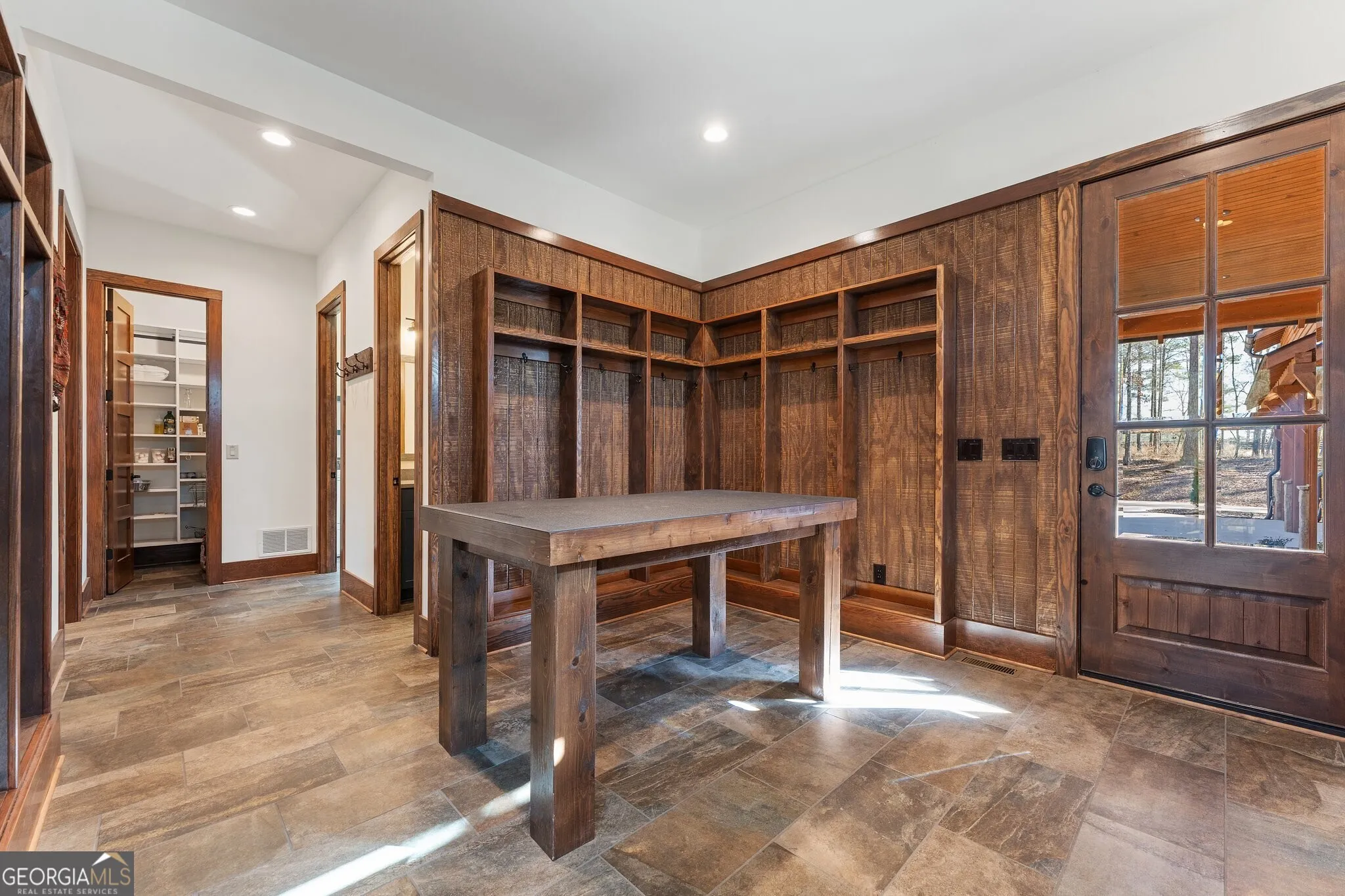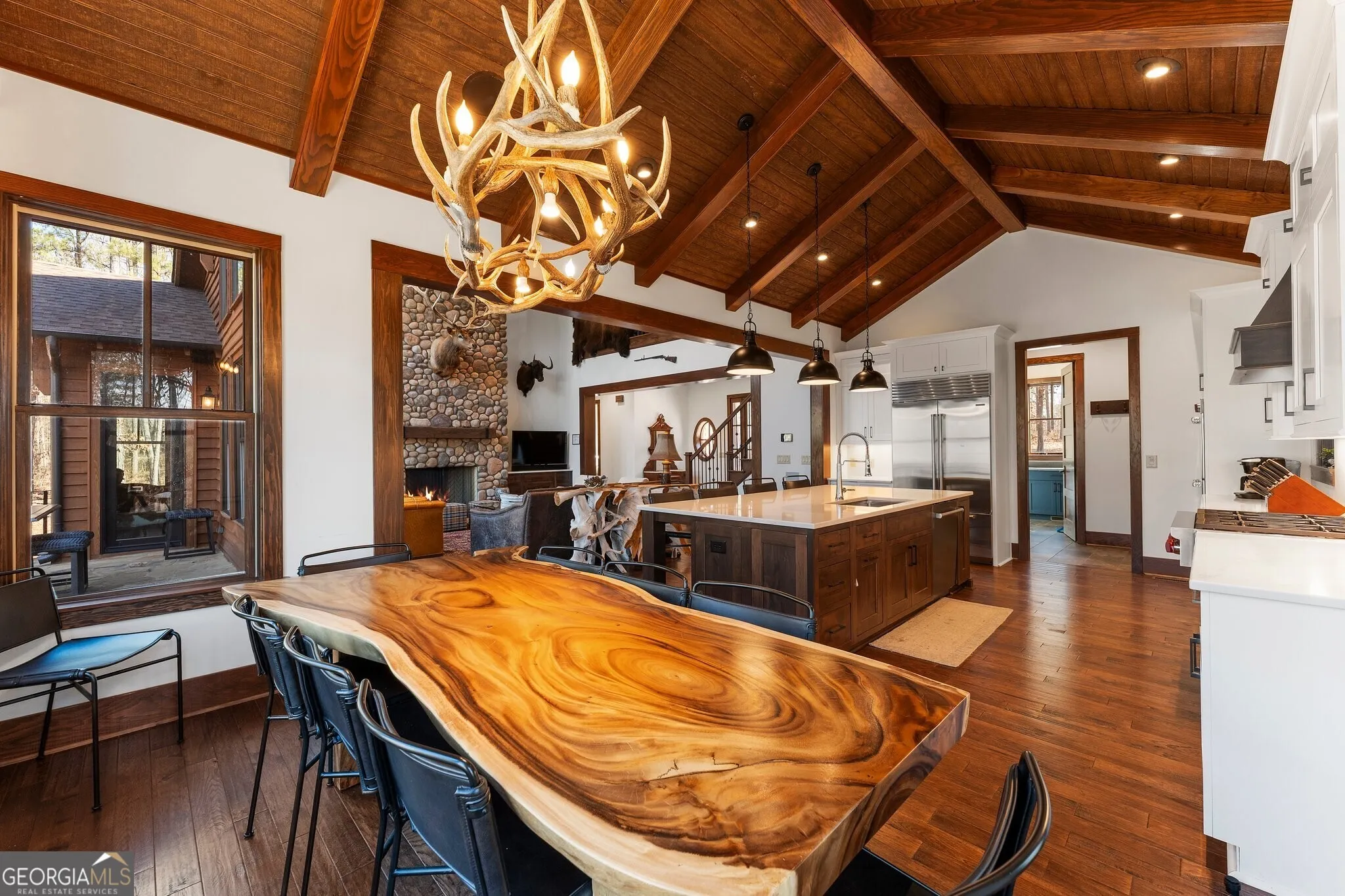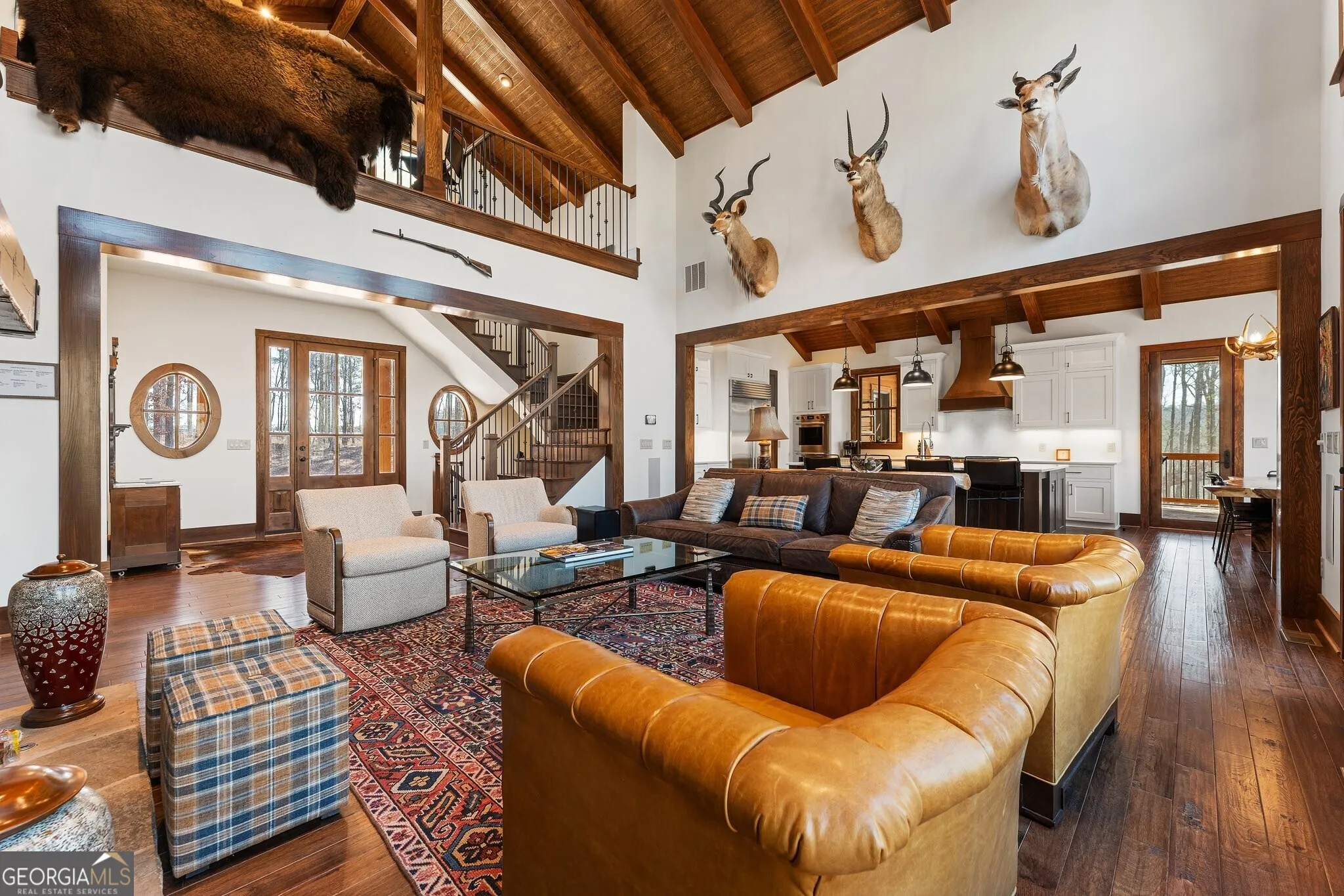 A short drive south of Atlanta is the getaway you need in your life…”Knotty Oak” Cabin in the beautiful, private sporting community of Blalock Lakes! Recently built, this stunning home is located on over 5 acres of wooded land with serene lake views, private fenced in pickleball court, and room to roam. Being sold fully furnished, this home has a dreamy entrance with meandering drive to the most charming cabin with 3 car garage with 1 bedroom carriage house with balcony and breezeway to 5 bedroom main house. Full of natural light, this pristine home is equipped with custom, luxury chef’s kitchen with wolf and subzero appliances, huge island, and views to massive family room with impressive floor to ceiling stone masonry fireplace. Screened in fireside porch off kitchen perfect for morning coffee and large open deck off living for outdoor dining and grilling on the green egg. Handsome wet bar in great room and stairs to loft area with game table perfect for poker or mahjong! Primary suite with soaking tub and door to porch on main, gracious secondary bedrooms on main and on terrace level. Terrace level boasts 3 bedrooms, bar, a cozy fireside den and screened porch that leads you to large stone patio for gathering around the fire pit. Terrace also has ATV garage. For all of your adventures, the breezeway has a large outdoor boot wash. Main level has incredible hunt room/mudrooom with several cubbies and gun cleaning table. Laundry room has ample custom cabinetry Speed Queen washer/dryer. The garage is equipped with two 220 volt plugs for EV, heated and cooled with TV, 2 half baths, and storage for event tables and chairs for large group entertaining. Truly the best house to gather, escape, entertain, and enjoy fun with family and friends. Blalock Lakes Sporting Club membership is optional, invitation only, and can be joined separately to enjoy the finest amenitities – fishing, horseback riding, hunting, shooting, hiking, and swimming. Don’t miss this special opportunity minutes from downtown Newnan and a short drive to Atlanta!