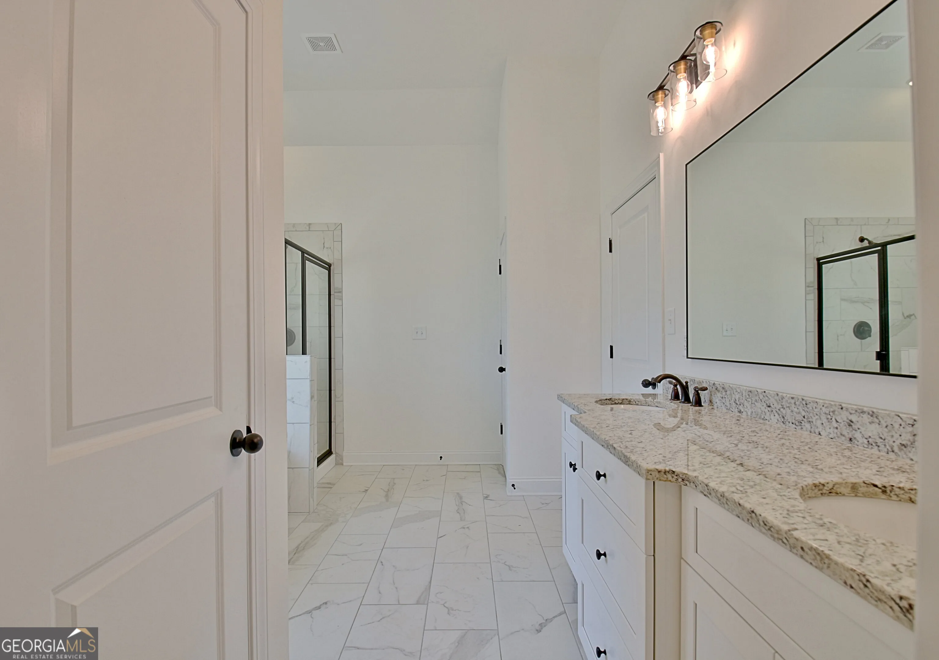 UP TO $15,000 IN CLOSING COSTS PLUS A FREE FENCE with preferred lender (ask agent for details). Gorgeous farmhouse by Dustin Shaw Homes located in the heart of charming Senoia. The popular Greenville plan features a three-car attached garage and a private covered rear porch, ideal for relaxing or entertaining. The open-concept main level offers an inviting foyer, elegant parlor, and a seamless kitchen and dining area highlighted by oversized signature picture windows. The kitchen blends beauty and functionality with hardwood floors, 11′ flat ceilings, granite countertops, custom cabinetry, a tile backsplash, stainless steel appliances, and a spacious walk-in pantry. Granite counters and custom finishes continue throughout the kitchen and baths for a cohesive, upscale feel.The primary suite on the main level serves as a true retreat with a spa-like bath featuring a tiled shower, soaking tub, and an expansive walk-in closet with a convenient laundry sneak door option. Upstairs, three generously sized bedrooms share a full bath with double vanities, completing this thoughtfully designed home built for comfort and timeless style.