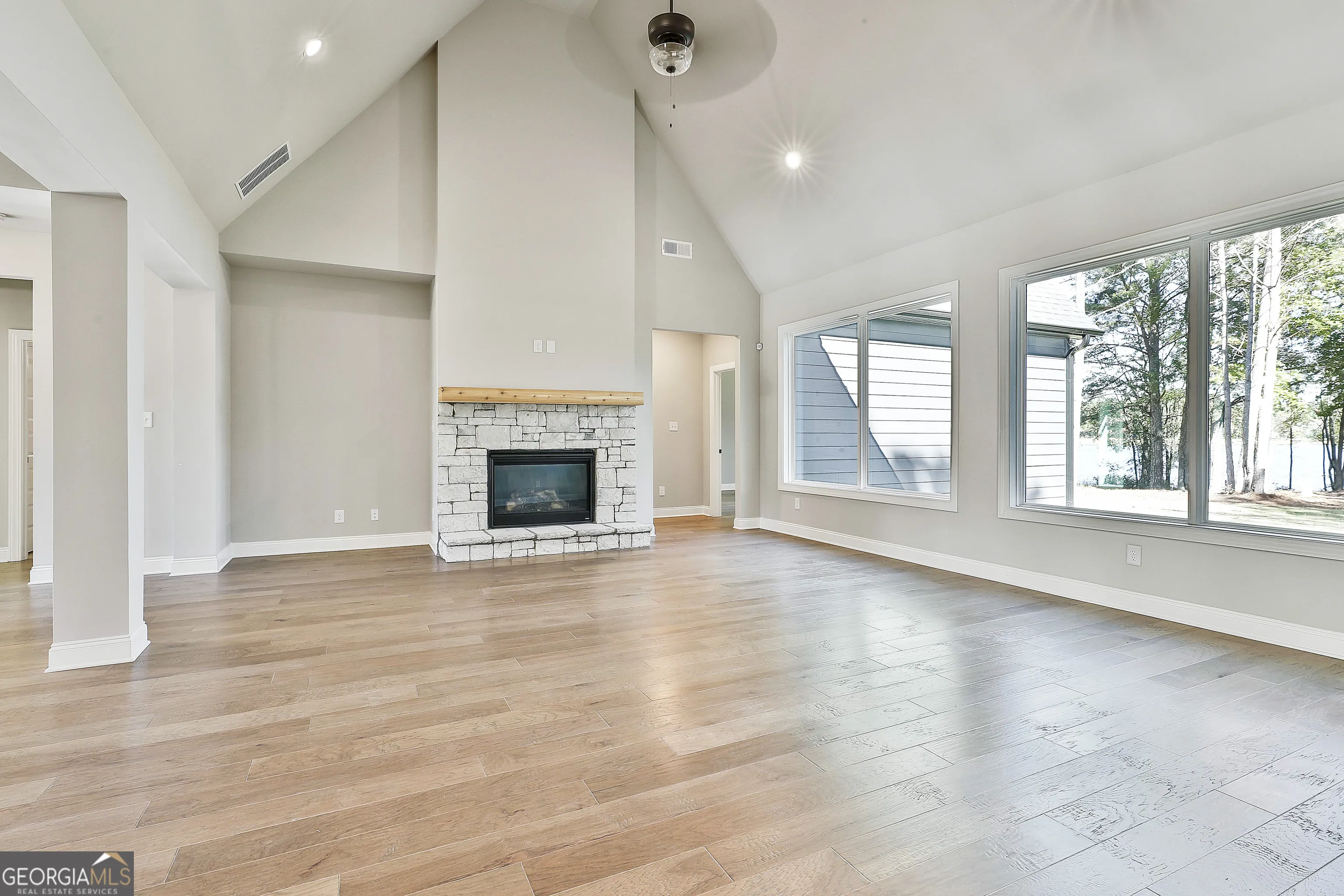Bryant 90 F New Construction Home on Lake Summergrove. The Bryant Features a spacious and open 5 bedroom and 5 bath home. On the main level you will find the open family, dining and kitchen area. The master ensuite, seconday bedroom or office and laundry are located on the main level as well. The oversized kitchen comes with ample cabinetry, large island and spacious walk in pantry. Upstairs you will find 3 bedrooms each with their own personal full bathroom. This home features a 3 car garage and sits on 1.03 acres. The lot sits right on the lake with breathtaking backyard views and lake access.