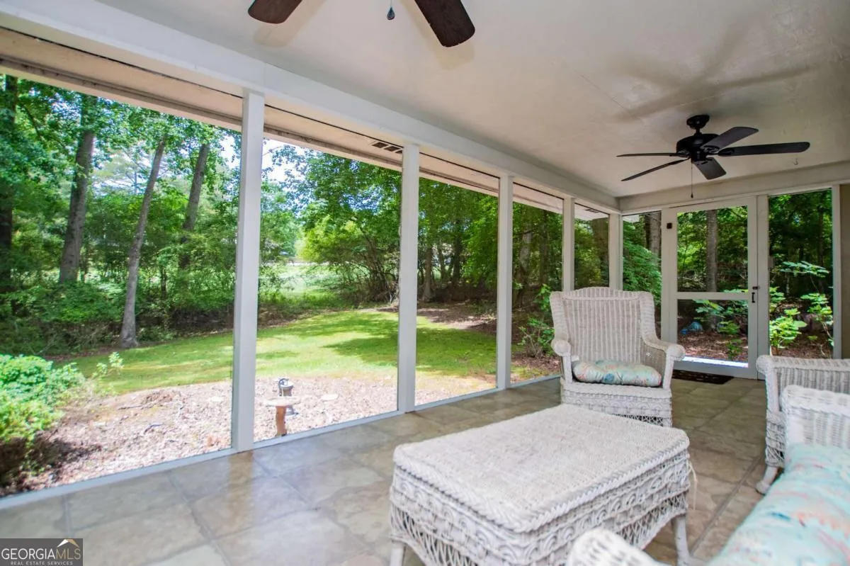 This 3-bedroom, 2-bathroom home offers modern comfort with a touch of classic charm. Step inside to discover an open floor plan with high ceilings that create an airy and inviting atmosphere. The newly renovated bathroom and freshly painted exterior add to the home’s move-in ready appeal. Flowing from the kitchen to the dining area and then into the spacious living room, you can take in the warmth and enjoy the wood-burning fireplace. In the back the sunporch is ideal for spending some quiet time or entertaining friends. Situated on the 7th hole of the golf course, this home offers scenic beauty right in your backyard. Whether you’re an avid golfer or simply appreciate tranquil surroundings, this location delivers. Don’t miss the chance to own this peaceful retreat in a gated community with resort-style amenities.