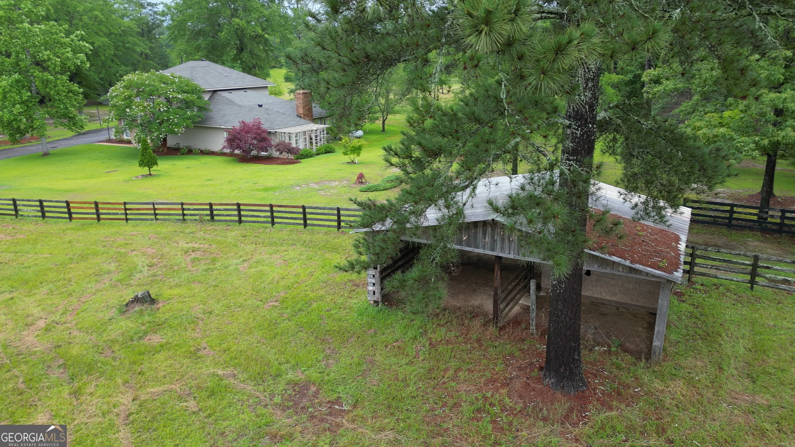 Price Drop Opportunity to customize the updates you would like! Beautiful and truly tranquil ‘hobby farm’ just one hour from the Atlanta Airport. Originally designed for horses, this property sits on 26 acres of pasture and woods with a year round stream that supports local wildlife such as deer and turkey. The land has several structures from pole barn, to tractor tack barn and the largest a 16 x 20 storage barn. There is also a standing ‘treehouse’ structure. The main house is surrounded with beautiful trees, including Japanese maples, offering a contrast to the hardwoods and pines on the land.The primary house structure offers endless possibilities. It has four bedroom and two baths upstairs. Another two bedrooms and baths on the main including the primary suite. There is a bonus office room as well. The kitchen has new stainless steel appliances and opens to the breakfast room. There is a generous formal dining, a cozy living room, a larger family/great room and a sunroom. Outside there is a gazebo area and patio for outside dining. In addition to ample parking there is a 2 car carport. The home has three HVAC systems, a new septic and drain field and a newer roof. Call your agent or the listing agent to arrange to see this unique opportunity. Recording devices are active on the property and prior permission from listing agent is required before touring.