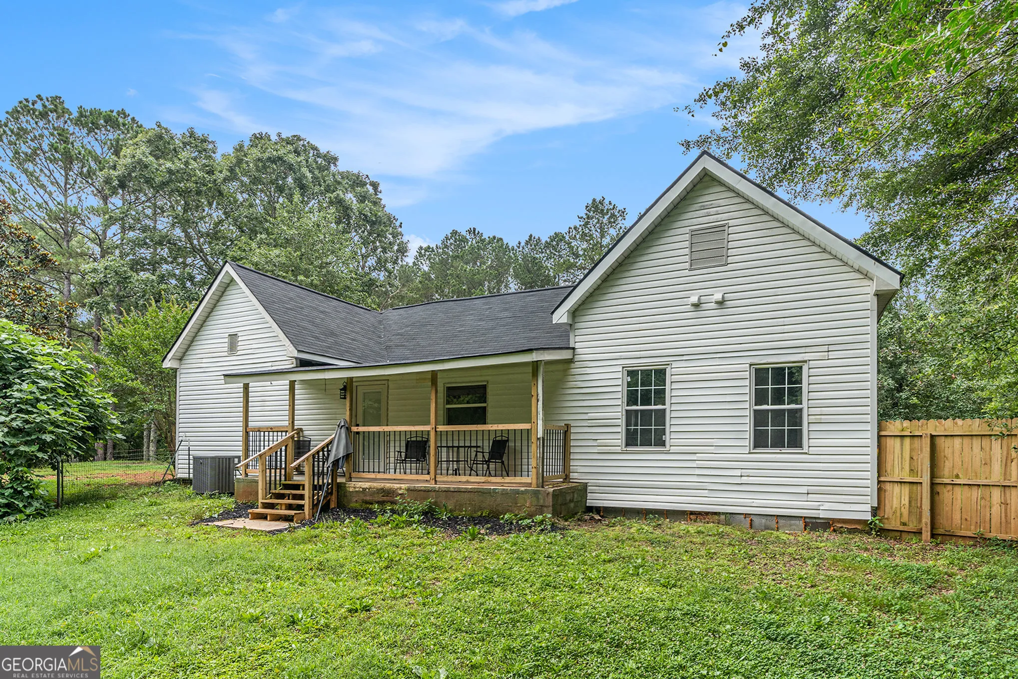 This 1935 farmhouse has been totally remodeled! New roof, new HVAC, new septic system, new plumbing, electrical, and windows! As you step into the front foyer, you will immediately notice the high ceilings and amazing light this home takes in. The primary suite is to the left with a double door entry. There is a huge walk-in daylight closet, and a spacious en-suite bath with a soaking tub and separate shower. This kitchen is ready for the home chef with ample counter space, new appliances, a pot filler, and a walk-in pantry. The bar area features a gorgeous tile backsplash with a wine cooler and additional storage. The family room is open to the kitchen, and there is a second bonus space that could be a home office or playroom. The 2nd bedroom has a walk-in closet. There is a large laundry area with cabinets and folding space. Relax on your back deck or front porch. This home sits on .6 acres with a fenced-in backyard. The land has fruit-producing trees, including pear, fig, and peach trees. You will also find blueberries, and for the flower lover, there are gardenia, rose of Sharon, rose bushes, lilies, and more! Located less than an hour from Atlanta.