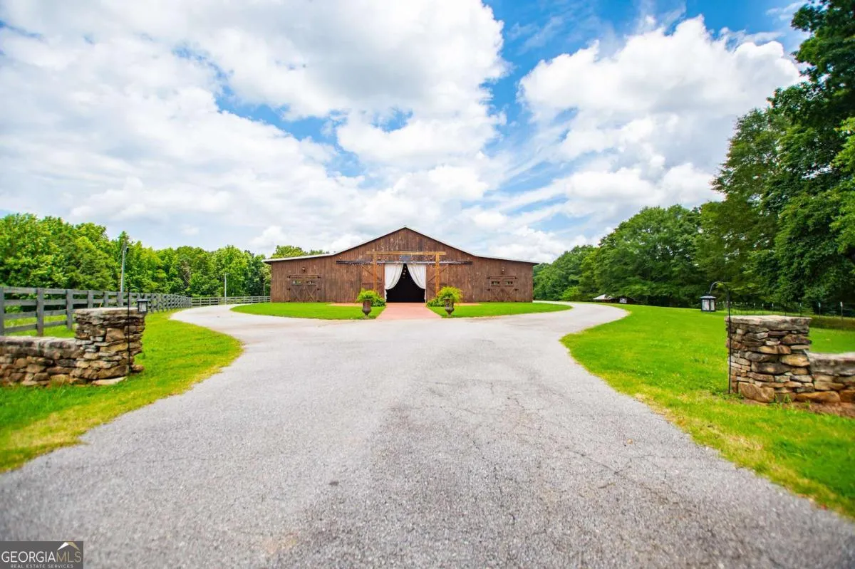 Once in a lifetime opportunity to own a breathtaking farm featuring a Georgian style brick main residence, 7500 square foot event center, hay/equipment barn with tack room, covered riding arena, RV parking with power, and she shed, all located on almost 53 acres ready for your livestock and horses. The main home first level features gorgeous hardwoods, dining room that seats 12 plus, wood paneled office with fireplace, living room with fireplace, screened porch overlooking the in-ground pool and grounds, spacious kitchen with island, granite, and farmhouse sink, oversized laundry, and owners suite. Upstairs, you will find 3 more spacious bedrooms all with en suite full baths, plus a sitting area connected to the covered 2nd floor porch. Downstairs is yet more space, featuring a gaming area, theater area, kitchenette, and another full bath. This area opens up to the pool deck directly. The event center is 7500 square feet of gorgeous perfection with burnished concrete floors, air conditioned kitchen with warmer, coolers, and prep area plus access to loading area, his and her air conditioned baths, over 20 farmouse tables and chairs to seat over 200, 2 bar areas, and attached storage. The equipment barn has a tack room, covered tractor parking, and ample space to store your hay. There is also RV parking with power, a she shed, and a covered riding arena. All of this is accessed by an almost 1000 foot long driveway from beautiful Glenloch Rd, ensuring the highest level of privacy. The pastures have automatic watering systems serviced by county water and are fenced and ready for your horses and cattle. This has been used for many years to host weddings and can continue to be used for events or could be used solely as a residence/farm.