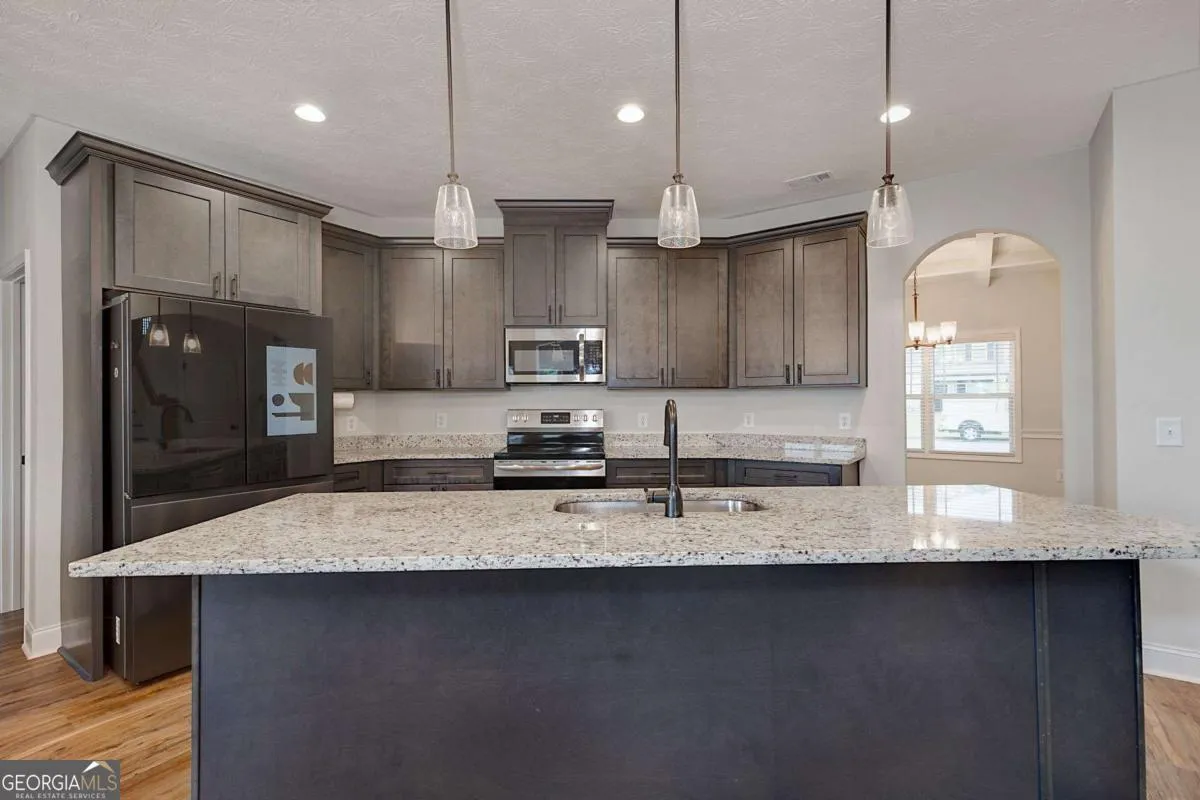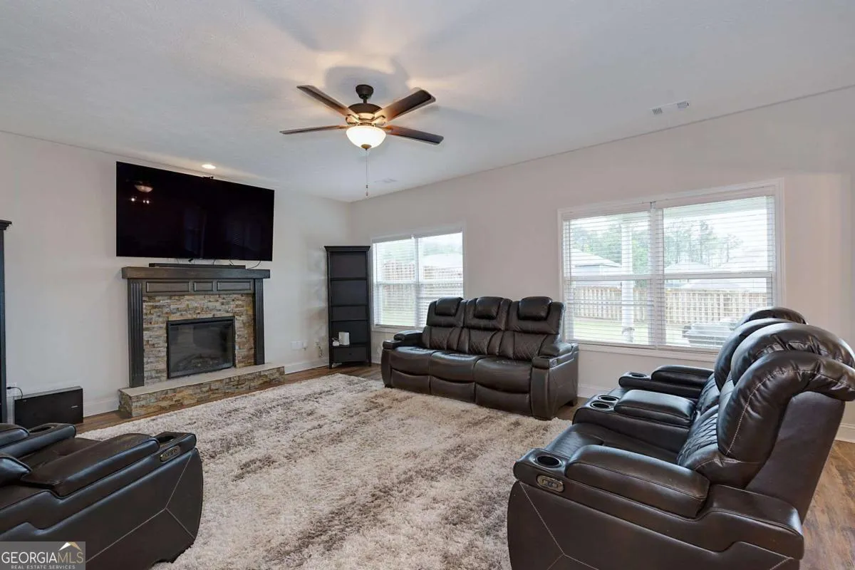 Stunning 5-Bedroom Home with Open Concept Living and Luxurious Upgrades Welcome to this beautifully maintained, nearly new 2-year-old home offering 5 spacious bedrooms and 3 full bathrooms. Designed with modern living in mind, this home features an open concept layout with luxury vinyl plank (LVP) flooring throughout the main living areas, creating a seamless flow and stylish appeal. A formal dining room provides an elegant space for entertaining, while the additional flex room is perfect for a home office, playroom, or media space. A guest bedroom on the main level offers comfort and privacy for visitors or multigenerational living. The heart of the home is the expansive great room with a cozy stone fireplace and views into the gourmet kitchen-perfect for gathering with family and friends. Upstairs, the massive master suite is a true retreat, featuring a spa-like bathroom with dual vanities, a soaking tub, separate shower, and an oversized walk-in closet. Architectural highlights include a dramatic two-story foyer and double staircase, adding sophistication and charm. Step outside to the covered patio-ideal for outdoor dining or relaxing-overlooking a large, fully fenced backyard with plenty of space to play, garden, or entertain. Don’t miss this opportunity to own a move-in ready home that combines luxury, space, and function in one exceptional package!