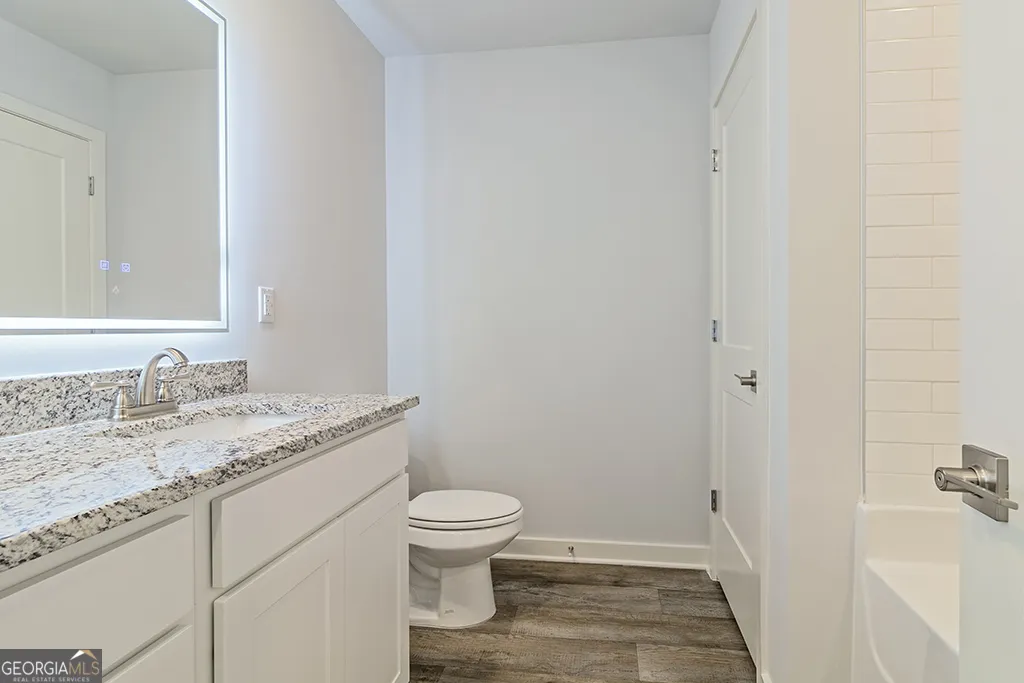 Walking into your new home you will immediately feel the openness that is perfect for entertaining friends and family. The kitchen offers a lot of cabinet and countertop space, stainless steel appliances, large single bowl sink with cup wash station. The kitchen also boasts granite countertops, crown molding on the cabinets and a great countertop eating space, perfect for breakfast! The oversized family room has a recessed fireplace and plenty of wall space for that extra large TV you’ve been wanting. Upstairs you will find 3 oversized bedrooms. The primary bedroom has it’s own private bathroom with standalone tub, separate shower, tile floors, LED backlit mirrors and smart toilet! The other two bedrooms are situated on the opposite side of the home and share a guest bathroom and have quick access to the loft area. The convenient location is a PLUS, just minutes away from shopping, dining, entertainment and parks with easy access to Interstate I-85