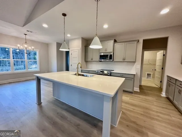2 +/- ACRES IN NORTH TROUP COUNTY WITH TWO BEDROOMS ON THE MAIN! The Smithfield Plan features foyer opening to Dining Room. The Dining Room features trim work accent for added detail. The Family Room offers Vaulted Ceiling and wood burning Fireplace with Brick or Stone Hearth. This plan offers an open flow from Family Room/Kitchen/Breakfast Area. The Kitchen boasts shaker style cabinets, quartz or granite counters, tile backsplash, stainless appliances, and pantry. The island is a great place for serving or entertaining! On the main level, you’ll find a nicely sized Owner’s Suite with vaulted ceiling and can lighting. The Owner’s Bathroom features tiled shower, garden tub with tile surround, double vanity, and a walk-in closet. Additionally, on the main level you’ll find a guest bedroom and bathroom. On the second level you’ll find a flex room ideal for playroom, media space, or office. Two guest bedrooms share a hallway bathroom featuring tiled flooring and quartz or granite counters. Each guest room is pre-wired and braced for a ceiling fan. This beautiful home features a FOAM INSULATED ATTIC, total electric construction, and architectural shingled roof. **SMART HOME TECHNOLOGY PACKAGE included for convenience** Perkins Place offers quaint living, but easy access to I-85 for commuters! Up to $6,500 toward closing costs assistance available when using builder’s preferred lender!