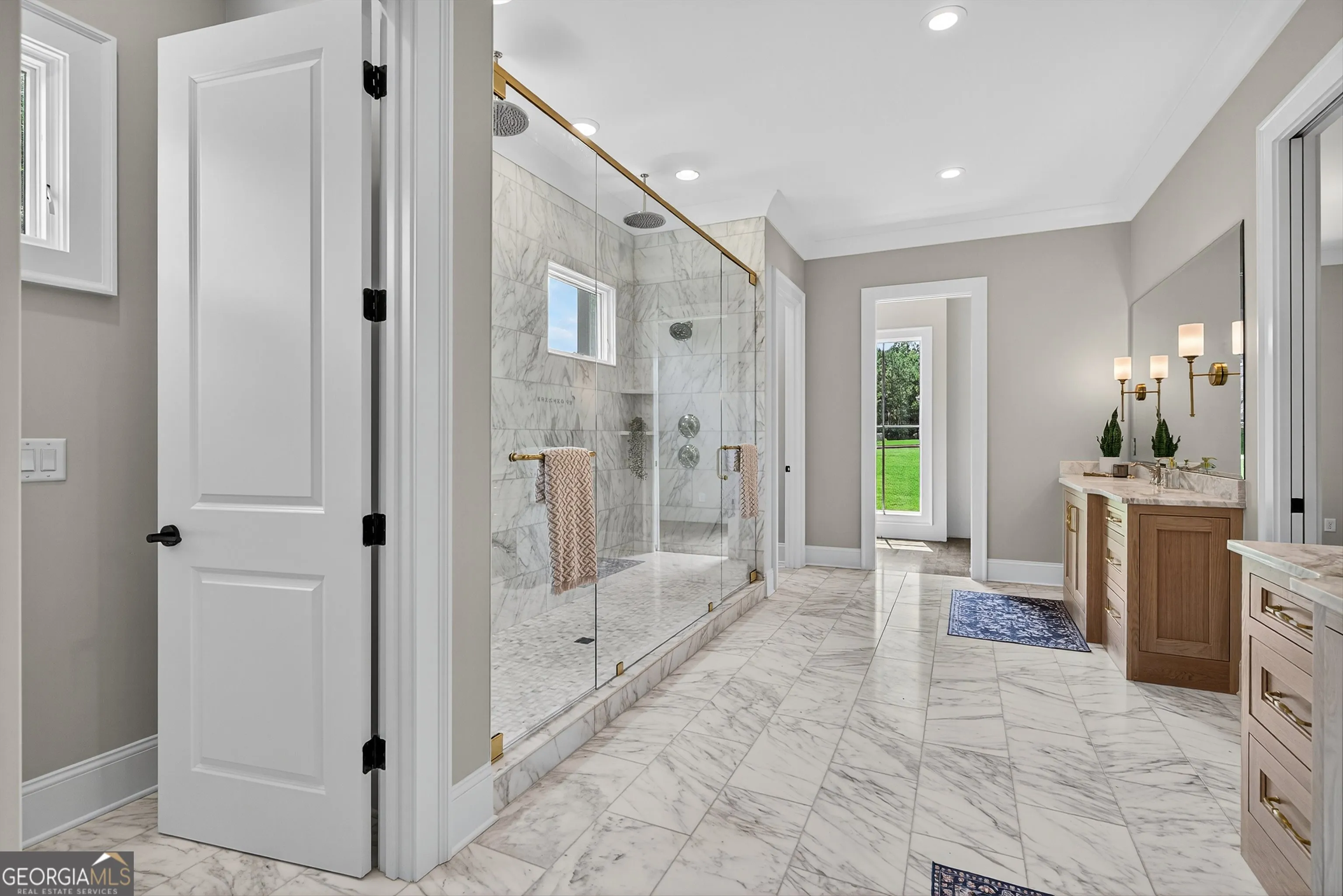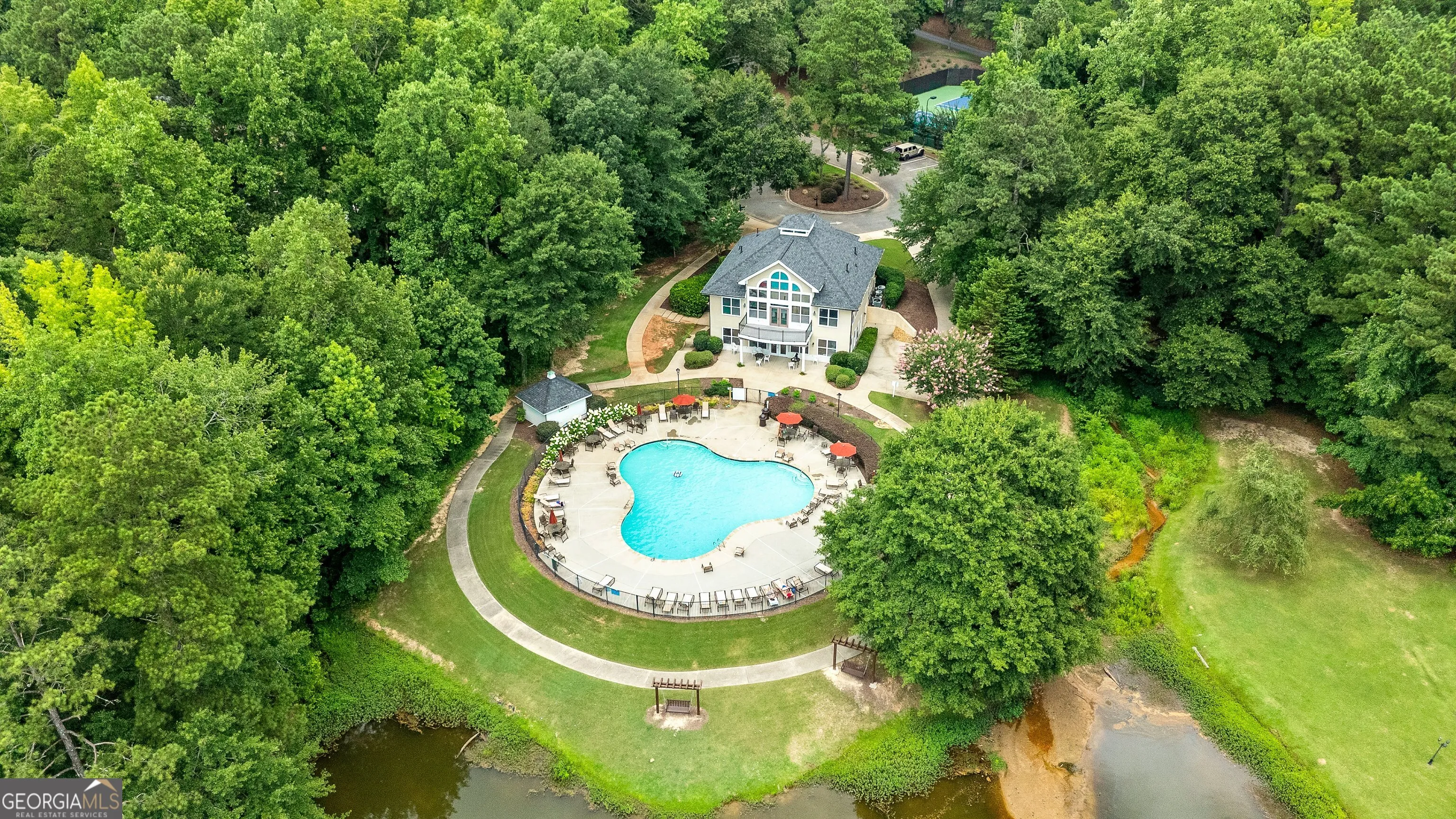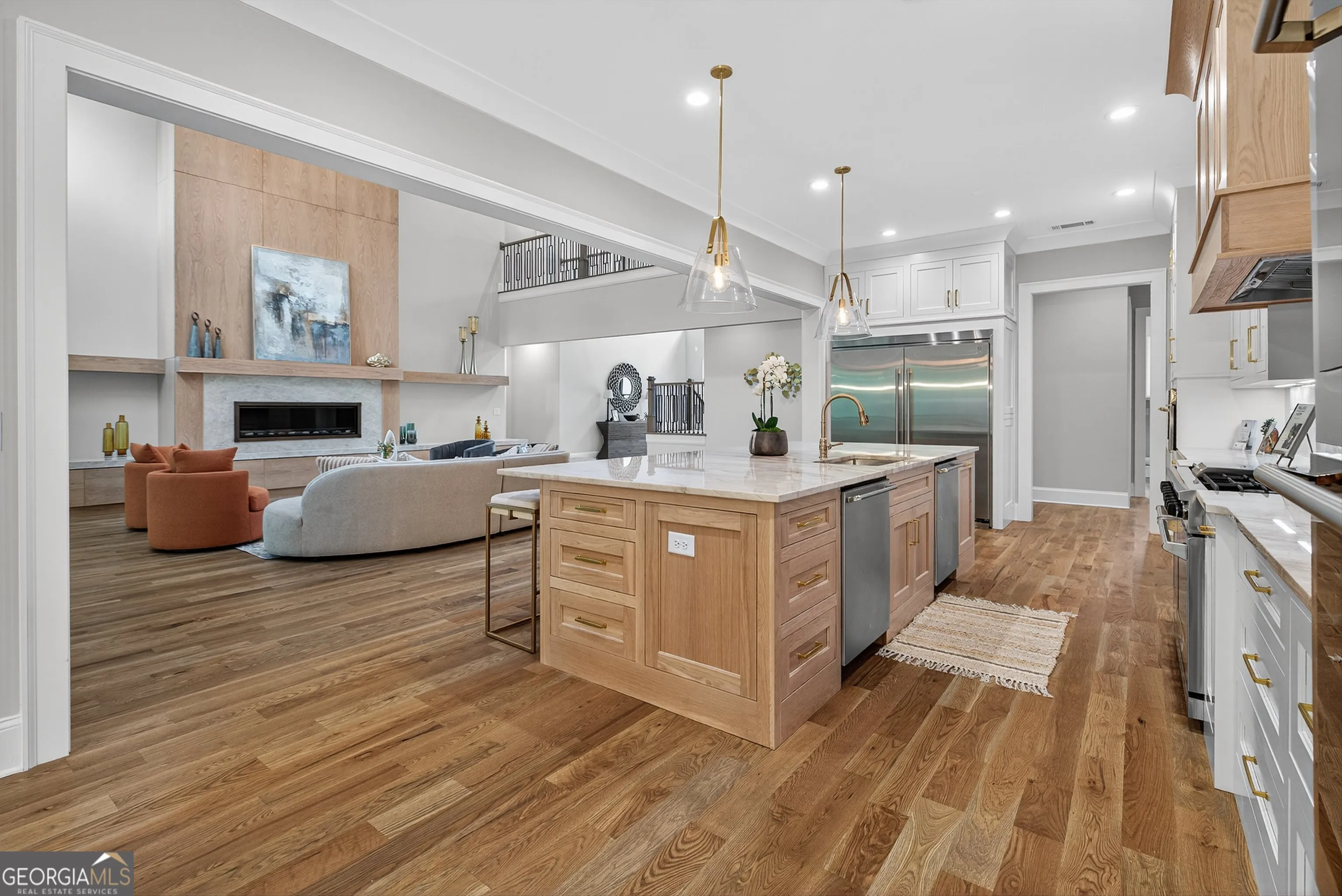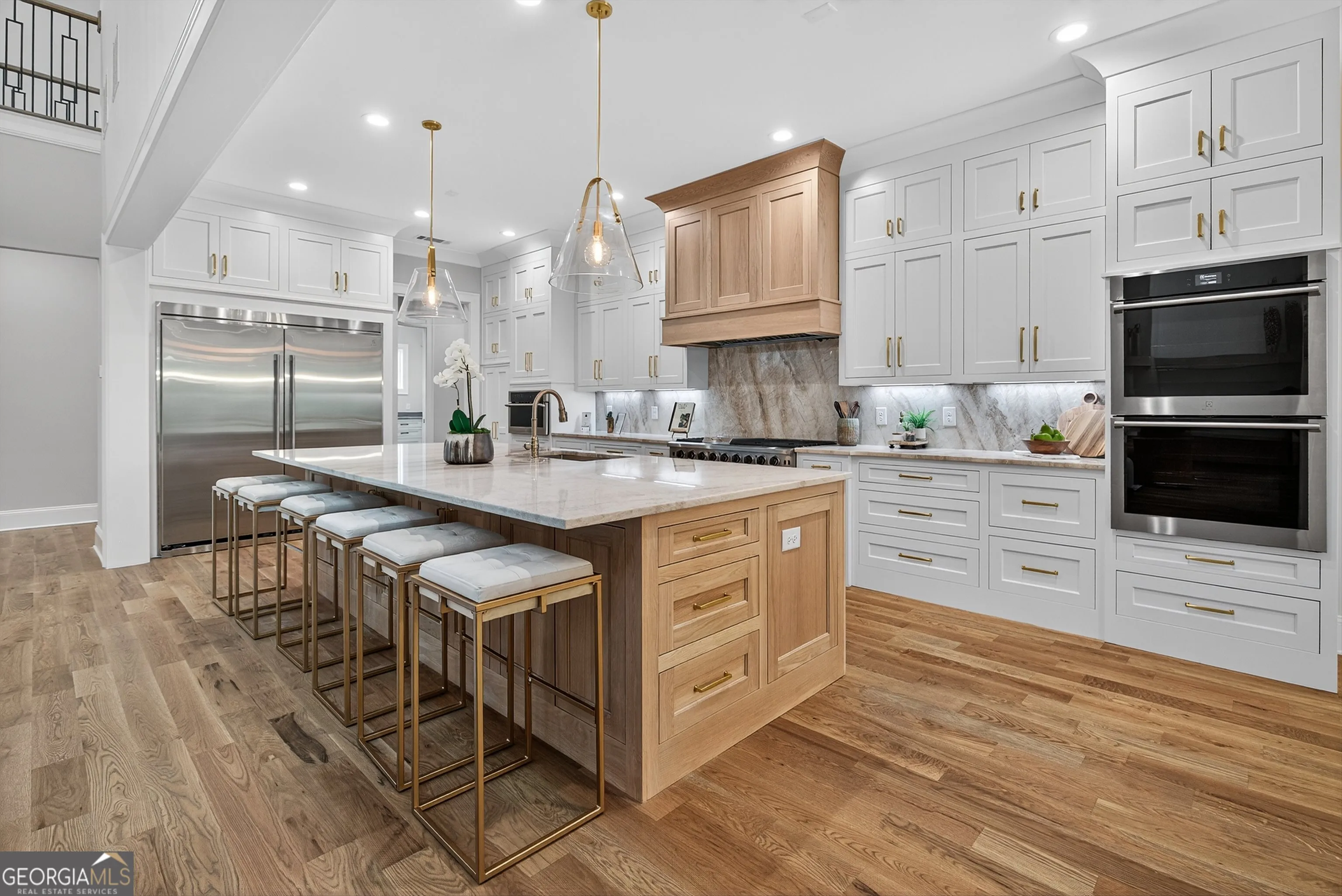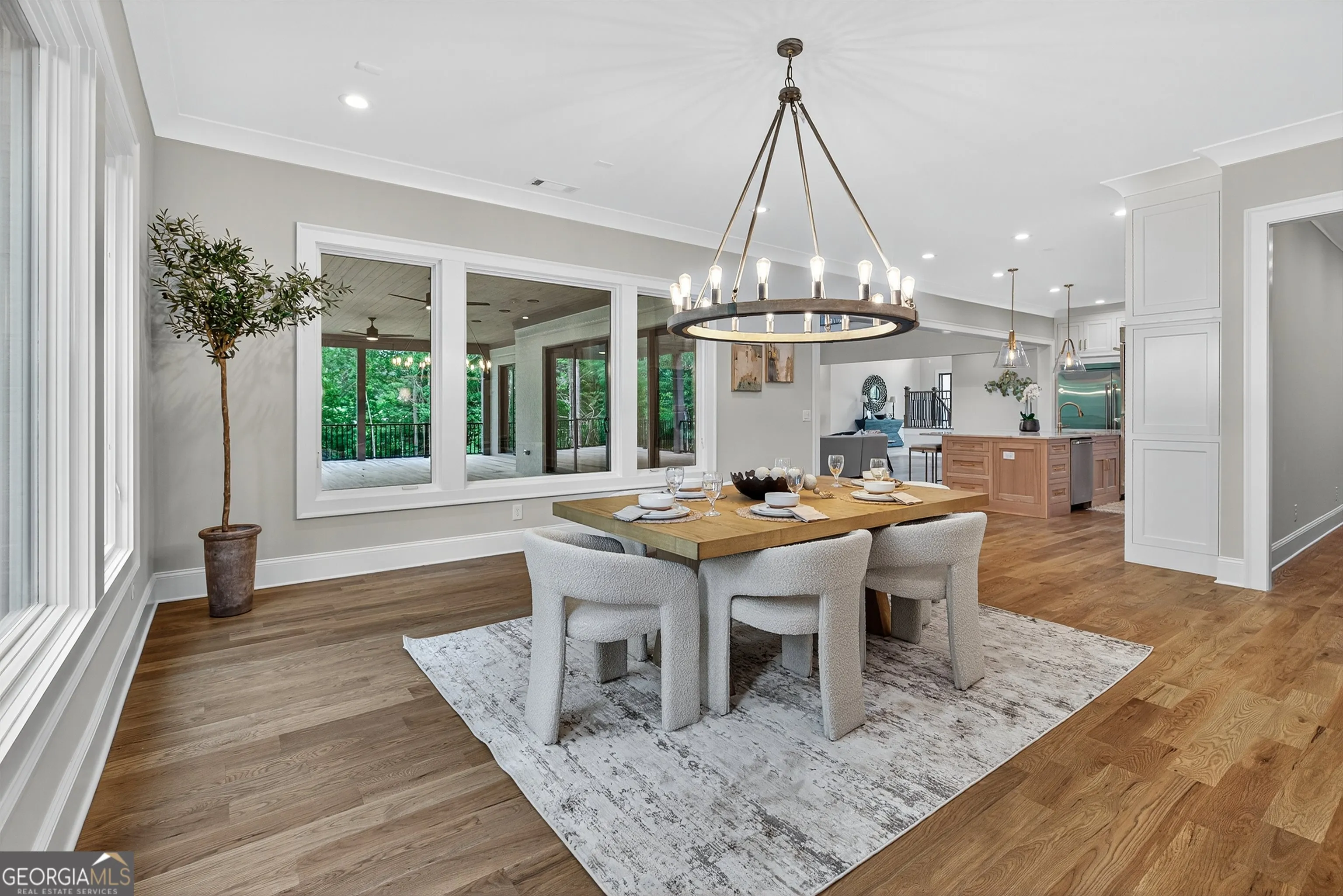 Welcome to this stunning new construction custom home crafted by Abernathy Custom Homes and perfectly situated on 1.78 acres in the prestigious Arbor Springs community of Newnan. This thoughtfully designed residence offers over 5,400 square feet of luxurious living space with five bedrooms and five and a half bathrooms, blending timeless craftsmanship with today’s modern functionality. From the moment you arrive, the all-brick exterior and covered front entry create a grand and lasting impression. Step inside your custom front doors to a soaring foyer and discover an open, light-filled layout that flows seamlessly from one space to the next. The heart of the home is the extraordinary gourmet kitchen, designed with both everyday functionality and upscale entertaining in mind. Outfitted with premium Electrolux appliances, this space features an oversized gas range with eight burners and a center griddle with double ovens, a custom vent hood, a built-in wine fridge, a large side-by-side refrigerator and freezer, built-in microwave, and two dishwashers for maximum convenience. The expansive island offers ample seating and prep space, while lower cabinets are thoughtfully designed with abundant drawer storage for practical use without sacrificing style. Privately tucked behind the main kitchen is a hidden prep kitchen, complete with pantry space, additional cabinetry, an extra sink, and two beverage refrigerators-perfect for catering, entertaining, or keeping everyday clutter out of sight. Every detail has been considered to elevate this kitchen to a true chef’s dream and a showpiece for the home. The living room is breathtaking, featuring soaring vaulted ceilings that create an airy, open feel and draw your eye upward to the dramatic wood-accented fireplace wall, which extends all the way to the ceiling for a bold architectural statement. Custom built-in storage with sleek drawer systems lines the wall beneath the fireplace, blending style with functionality. A full wall of sliding glass doors spans the rear of the living room, flooding the space with natural light and providing seamless access to the expansive back patio. From here, you’ll enjoy peaceful views of the wooded landscape beyond-offering a private, picturesque backdrop that feels like your own retreat. The main level also includes a formal dining room, a flex space ideal for a home office, den, or playroom, a large laundry room with built-in space for lifted front loading appliances, and abundant cabinet and storage space. You’ll also find a guest suite, tucked privately at the back of the home with it’s own private ensuite with beautiful tiled shower. The luxurious owner’s suite provides a private retreat with spa-like features including a frameless glass shower with multiple shower heads and space and plumbing to add in a soaking tub if desired, dual vanities with abundant cabinet space, and a generous walk-in closet ready for your total customization, courtesy of the builder. Upstairs, each of the secondary bedrooms is oversized with its own en suite bath and walk-in closets with custom shelving, offering comfort and privacy for family or guests. High-end finishes abound throughout the home, including white oak wide-plank hardwood flooring, designer tile, upgraded lighting, detailed millwork, and coffered ceilings that add depth and character to every room. Beyond the beautifully finished living space, this home presents exciting opportunities to personalize even further. The expansive unfinished terrace level offers room to create a custom basement with a home theater, fitness studio, bar, guest suite, or additional living space. It features 12 foot ceiling and a plumbed in bath, ready for your own ideas. Located in Northgate school district and close to golf, shopping, and dining, this exceptional home offers a rare combination of luxury, customization, and location.