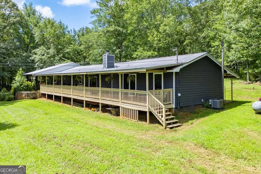 Set on 22.63 acres in beautiful Heard County, this renovated five-bedroom, three-bath ranch pairs country charm with modern comfort. The newer metal roof and freshly painted interior welcome you home to wide-open spaces, where pasture meets hardwoods and a quiet creek winds its way through the land. The heart of the property is a spacious, light-filled home with newer LVP flooring throughout and a recently updated interior. The primary suite feels like a private retreat, featuring a walk-in tiled shower and luxurious finishes. A wood-burning stove warms the entire home with ease, though propane heat and a traditional fireplace remain options for those who prefer them. Outside, a covered country deck with classic porch is an ideal place to watch sunsets and entertain family. A four-car carport, pole barn, and storage building provide abundant utility, while a handcrafted wood playhouse provide abundant fun for the kids. Cattle have thrived here, watered by the creek, but the land is versatile-ideal for horses, gardening, or simply room to roam. The property is on well water, with a county water tap already in place at the street for future convenience. Every detail has been considered to create a home that feels solid, welcoming, and ready for your family. This is more than a place to live. It’s a place to breathe. A place to grow. A place to settle in and call your own.