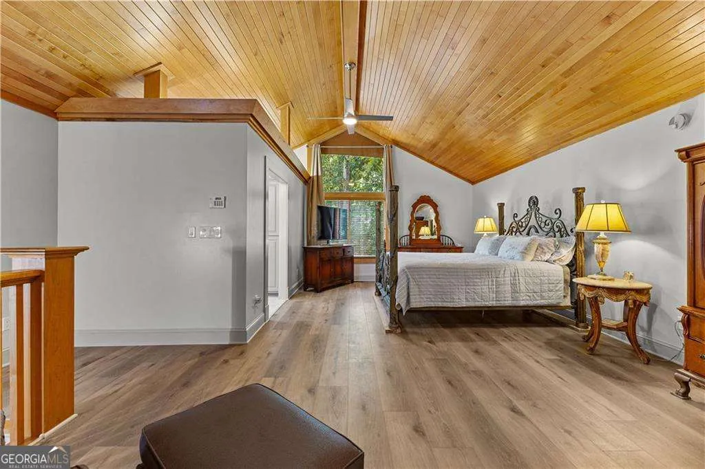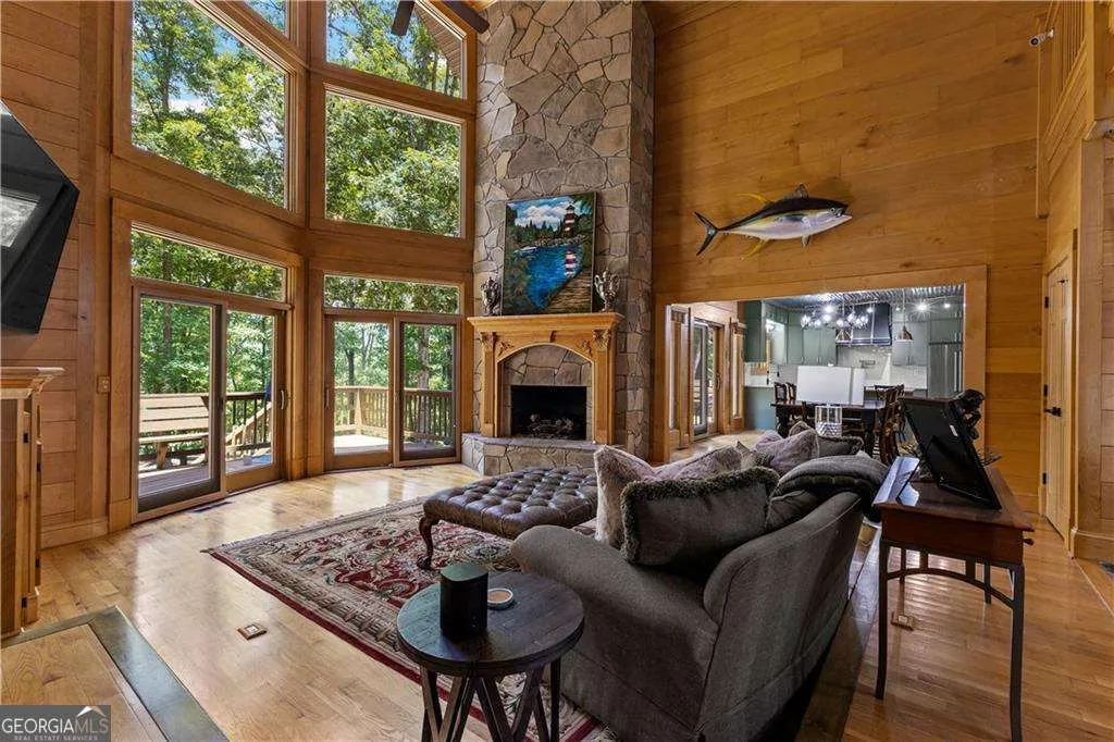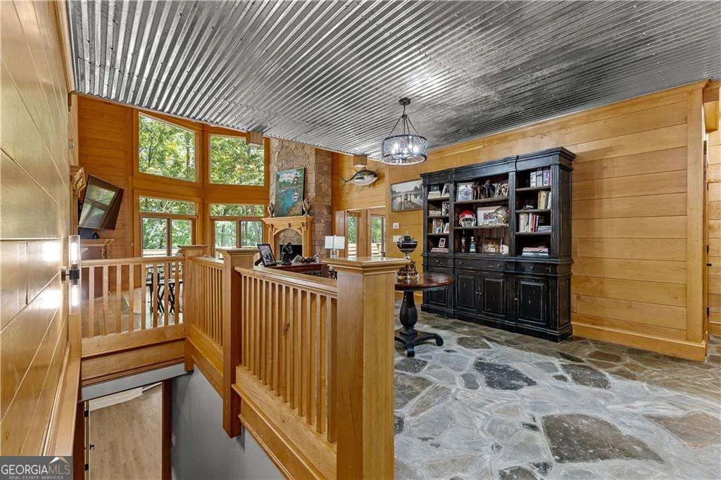 Live Like a King at the Lake – In a Home Built by a Champion Want to live like royalty at the lake? How about doing it in a custom-built retreat crafted by a 3-time Super Bowl Champion? Nestled on over 5 private, wooded acres directly across from the Earl Cook Recreation Area, this spectacular 4-bedroom, 3.5-bath home offers three levels of luxurious, lakefront living – complete with stunning water views and your very own brand-new, single-slip covered dock. From the moment you arrive, this home wraps you in a warm, rustic cabin feel with soaring ceilings and a wall of windows that frames the lake like a living portrait. A huge 2-story stone fireplace is the centerpiece of the main floor. The heart of the home has a fully remodeled kitchen with no expense spared – outfitted with: * French Republic vent hood * Commercial-grade appliances * Farmhouse sink * Pull-drawer microwave * Amish-built custom cabinetry * Cambria quartz countertops * 24″ long-stem faucet * And all-new designer lighting There is also a bar, dining area, and cozy family room all perfect for entertaining. Two spacious bedrooms, a beautifully updated full bath, and a convenient half bath complete the main level. Upstairs is your private sanctuary: a spacious suite with a massive primary bedroom, brand new bath with luxury finishes, and a separate office or nursery space – all with panoramic views and total privacy. The basement level is a haven of its own, boasting an open-concept layout with a sitting area, wood-burning fireplace, pool table zone, additional bedroom area, full bath, and even a third garage bay ideal for a boat, ATV, or workshop. Recent upgrades include a new roof, new flooring throughout, and new bathrooms – every inch of this home has been meticulously updated for comfort, style, and functionality.
