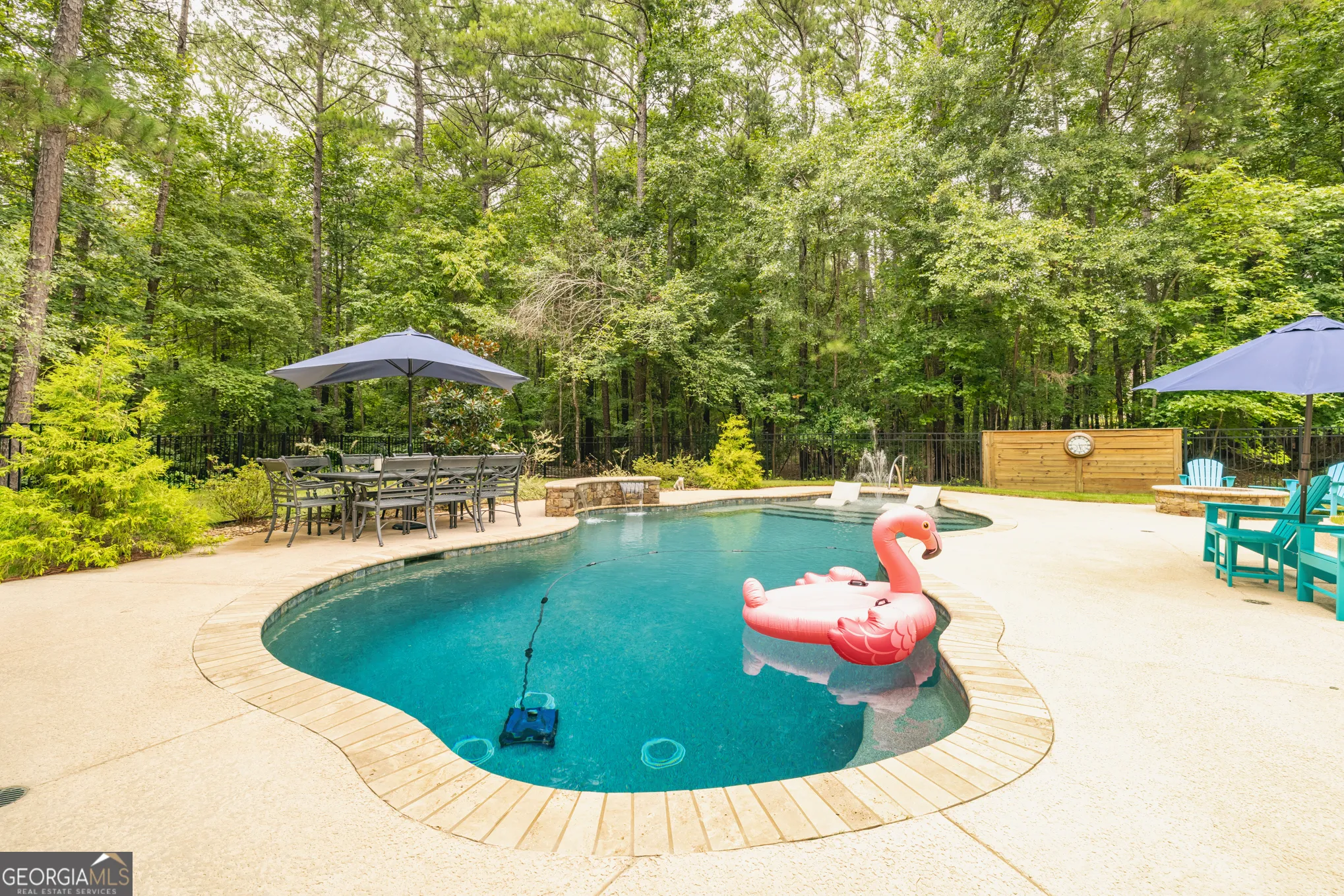 Your Private North Coweta Oasis – Custom Luxury Styled for Outdoor Entertaining Year Round. Welcome to a one-of-a-kind retreat in the sought-after Northgate High School district – a 4 bedroom, 4.5 bath home set on a private, wooded 5-acre tract. From the moment you turn onto the winding drive, you’ll know this is something special. Designed from the ground up – architectural plans convey – this low maintenance, four-side brick home offers a lifestyle that’s as functional as it is unforgettable. Your front door opens to a soaring Foyer bisecting the formal Living Room and Dining Room, and then flowing into a large Family Room centered on a fireplace. The Kitchen features custom oak cabinets with under-cabinet lighting and stone countertops. The Breakfast Room and Family Room offer access to the screen porch and a grilling deck near the Kitchen. The Primary Suite is on the main level, featuring a spa-style bath with dual vanities, a jetted tub, and a separate shower. Upstairs, you’ll find three more Bedrooms plus a huge Bonus Room – perfect for work, play, or guests. Step outside and discover a backyard oasis designed by J&M Pools – a heated and cooled PebbleTech saltwater pool with waterfall, sun shelf with bubblers and loungers, and dazzling LED lighting. The KoolDeck concrete patio, fire pit, and Bullfrog hot tub make entertaining effortless, while the Outdoor Kitchen shaded by an arbor sets the scene for memorable gatherings. Enjoy a screen porch for relaxing mornings, a grilling deck for summer feasts, and the convenience of a new terrace-level Full Bath adjacent to the pool. Three garages on the kitchen level plus a boat garage/shop on the terrace level (with concrete drive access) ensure space for every hobby. Spray foam insulation and newer HVAC units offer energy efficiency. All this is just minutes from Interstate 85 and the 300-acre BT Brown Reservoir, offering fishing and kayaking among quiet natural beauty. With thoughtful design at every turn, this is the home you’ve been waiting for – a truly custom home where every day feels like a getaway. Schedule your tour and experience the lifestyle for yourself.