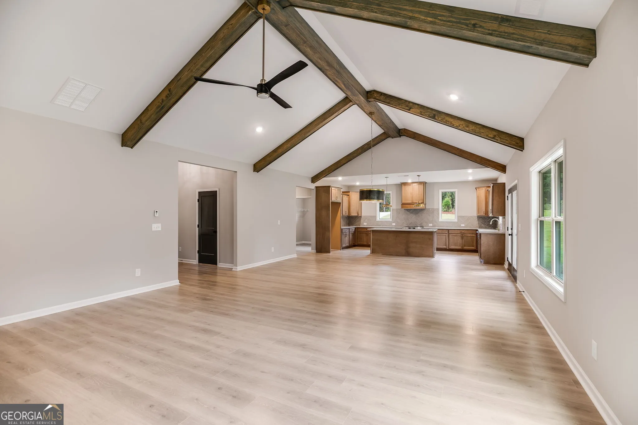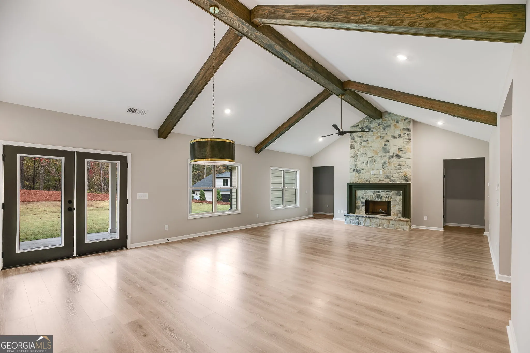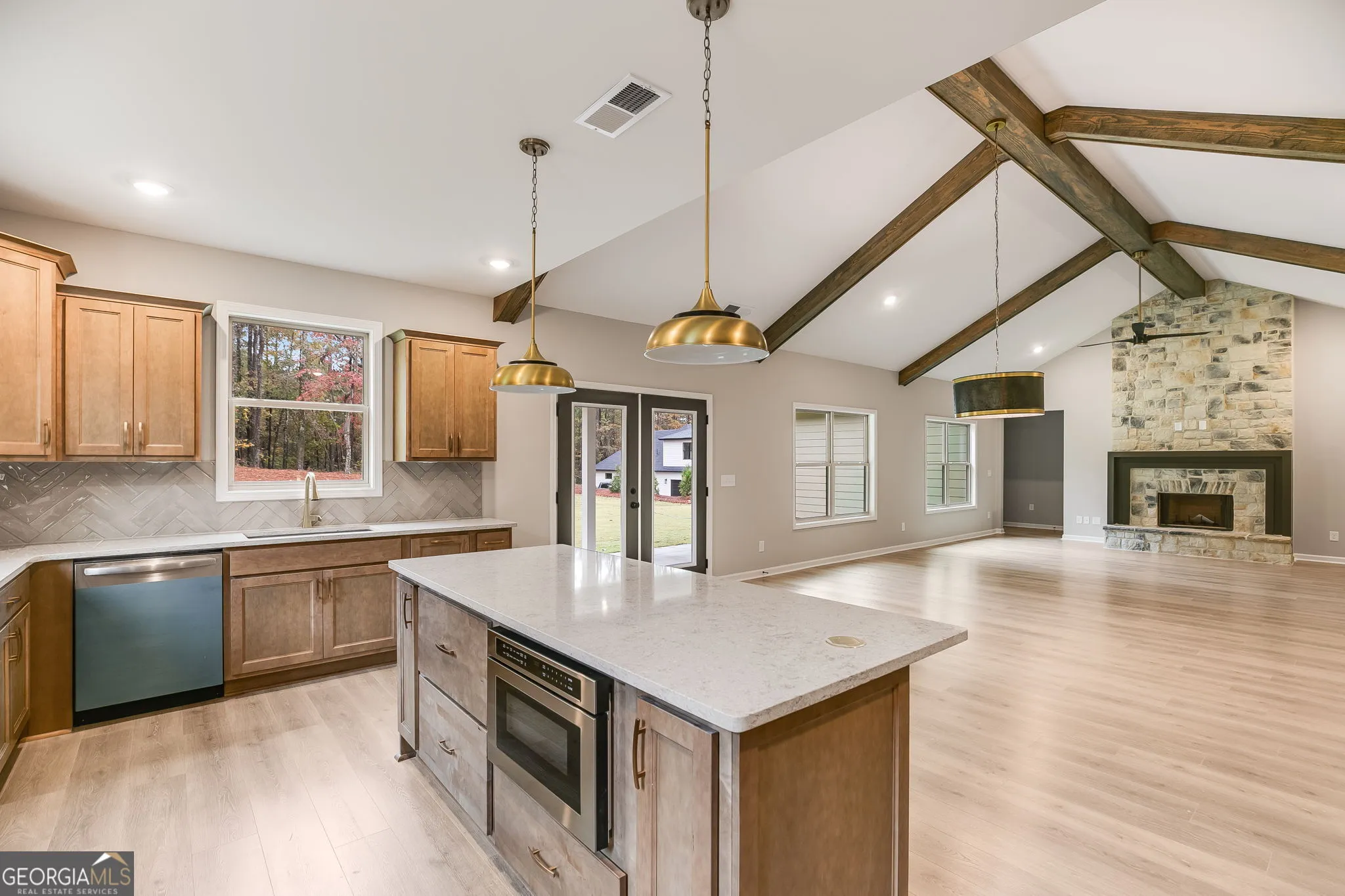 Lovely 4-Bedroom Home on 1.48 Acres – No HOA, No City Taxes This stunning single-level home combines modern comfort with timeless character. Featuring 4 bedrooms, 2.5 baths, and an open floor plan, it offers spacious living with thoughtful details throughout. Step inside to a large family room with exposed wood beams and a cozy wood-burning fireplace, flowing seamlessly into the dining area and a chef’s kitchen with a central island, upgraded appliances, and custom wood cabinetry. A generous laundry and mud room add everyday convenience. The vaulted owner’s suite is a true retreat with beam accents, a spa-inspired bath showcasing a free-standing tub and oversized tiled shower. Outside, enjoy the home’s stone and Hardi exterior, covered back patio, and side-entry garage on a private 1.48-acre lot. Additional features include: Upgraded finishes throughout Spray foam insulation for energy efficiency Smart home package High-speed internet access Home warranty included With no HOA and no city taxes, this property offers the perfect blend of freedom, efficiency, and style. Schedule your showing today and experience this exceptional home for yourself! RENDERING IS AN EXAMPLE – NEW PHOTOS COMING SOON.