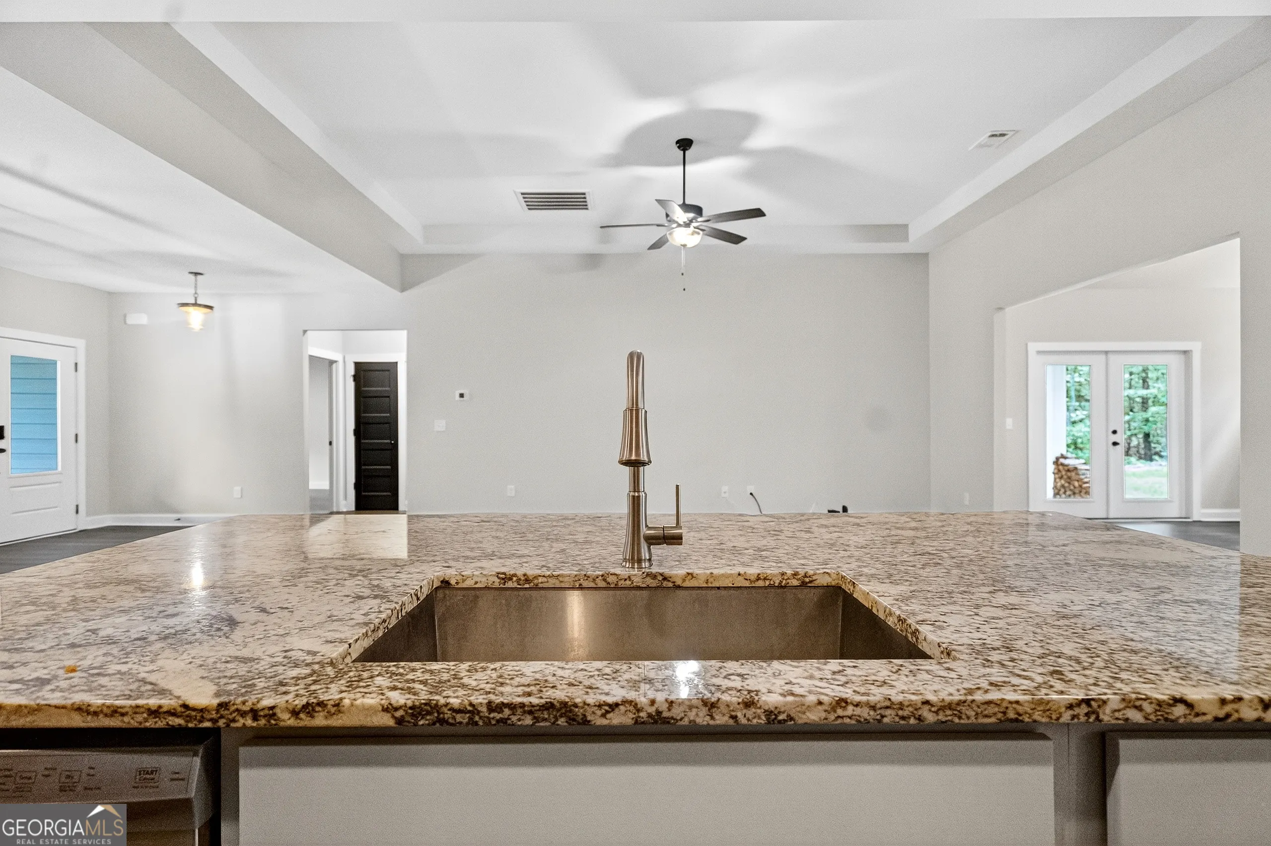 WELCOME HOME to this stunning 4-bedroom, 3-bath ranch/craftsman-style home in the desirable Deer Creek community of Moreland GA. Here, small-town charm blends with peaceful, wooded surroundings, creating the perfect retreat for both relaxation and gathering with family and friends. Tucked away at the end of a quiet cul-de-sac on 3.01 wooded acres, this home offers both privacy and natural beauty. From the moment you arrive, the inviting front porch calls for rocking chairs or a porch swing, an ideal spot to slow down and soak in the setting. Step inside and you’ll immediately notice the open, airy flow that connects the foyer, formal dining room, family room and a cozy bonus room. A designer fireplace and a vaulted ceiling anchor the space, creating warmth and ambiance that can be enjoyed from multiple rooms. Sunlight pours in, and French doors invite you outdoors to one of the two covered patios, perfect for extending your living space into the fresh air. The heart of the home is the gourmet kitchen, where shaker-style cabinetry, stainless steel appliances, subway tile backsplash, and a large island with breakfast bar combine both style and function. A generous walk-in pantry ensures plenty of storage, while the open design keeps you connected to the family room and breakfast area. Another set of French doors here leads to a second covered patio, perfect for sipping morning coffee or firing up the grill. Conveniently located near the kitchen, the laundry room and garage entry include space for a future drop zone–ideal for organizing coats, bags, and shoes. Tucked privately on one side of the home, the owner’s suite is a true retreat, complete with a spa-like bath featuring a soaking tub, tiled walk-in shower with glass enclosure, dual vanities, linen closet and oversized walk-in closet. On the opposite side, two additional bedrooms share a spacious full bath, creating a functional split-bedroom layout. Upstairs, a private suite with bedroom, full bath and walk-in closet offers flexibility, whether for guests or multi-generational living or a quiet home office. Throughout the home, you’ll find thoughtful details like tray and vaulted ceilings, upgraded trim, luxury vinyl and tile flooring, soothing color palette, and Smart Home Technology. Energy efficient features such as foam-insulated attic, Low-E windows, and architectural shingles add peace of mind. Outdoor living is equally inviting, with two covered back patios overlooking a peaceful wooded backyard, an ideal backdrop for quiet evenings, weekend cookouts, or fall football gatherings. A two-car garage with an extra parking pad completes the package. Just minutes from I-85, you’ll enjoy easy access to Newnan, Peachtree City, Atlanta, Fayetteville, LaGrange and beyond while still coming home to the peace and privacy of your wooded retreat. Barely lived in and meticulously maintained, this home is ready to welcome its next chapter…YOURS!!