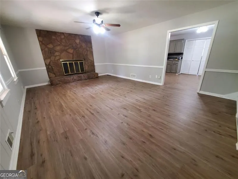 This is it, multi-level home located on a private 2.68 +/- acres. Features include: Covered rocking chair front porch, back deck, private fenced back yard, fresh interior & exterior paint, new Edwards Oak LVP flooring, great room with stone fireplace, kitchen with an abudance of cabinets, black appliance package including range, dishwasher & microwave, ceramic tile bathrooms, finished lower level with 4th bedroom & additional living room. Perfect for a home office set up. Energy effecient spray foam insulation in attic & crawl space. Clean & move in ready. Great Carrollton location. The house is near multiple shopping areas & the University of West Ga.
