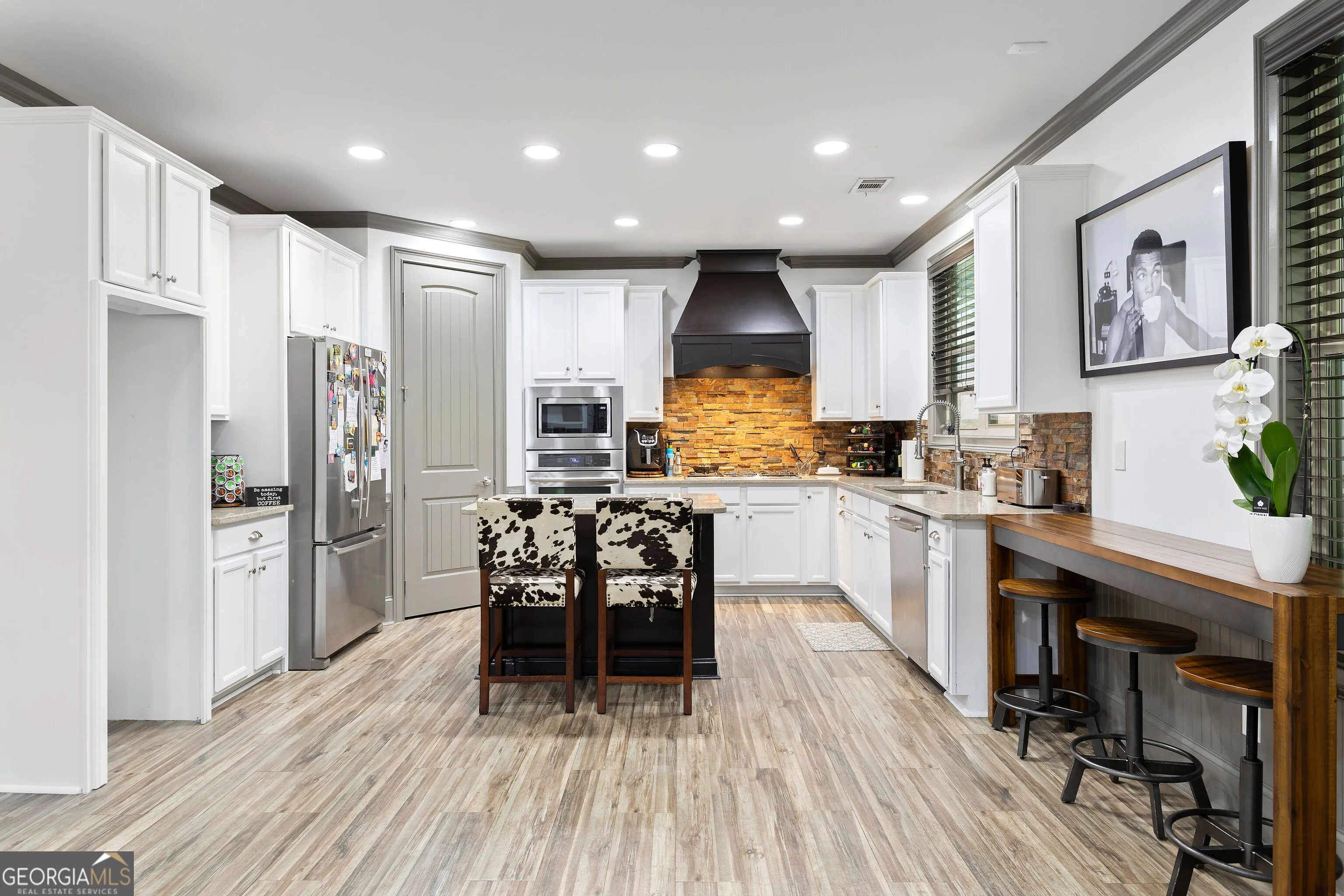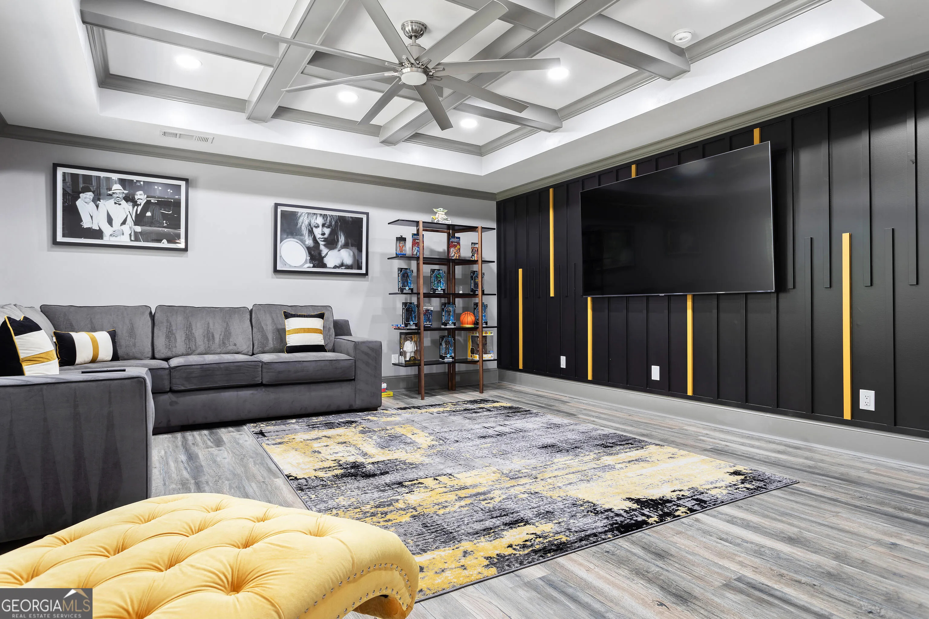 WOW! WOW! WOW! This stunning craftsman-style home in the highly sought-after Canoe Club community has been completely updated in 2024, making it feel like new. From the moment you arrive, you’ll be impressed by the beautiful landscaping, custom finishes, coffered ceilings and attention to detail throughout. Inside, enjoy new flooring, fresh paint, custom trim, and cabinetry, along with upgraded appliances, and a gourmet kitchen featuring a gorgeous stone backsplash and quartz countertops. The inviting family room features a gorgeous stone fireplace and custom shelving. The primary suite on the mail level features elegant French doors to your private backyard oasis and vaulted ceilings. The spa-like bath offers slate tile, a custom ceramic tile shower, quartz countertops and spacious walk-in closet. Upstairs you will find the additional bedrooms and two full baths, along with a spacious bonus/media room with custom accents and all new flooring. Step outside to your private oasis – enjoy the screened in porch, amazing swimming pond with gorgeous waterfall feature, new lush zoysia grass, new stone walkway, and patio with new pergola. For added peace of mind, the home also includes a whole house Generac generator. Conveniently located to shopping, restaurants, Piedmont Hospital and all that Trilith has to offer. This home has everything- now all it needs is you! See it for yourself- call to schedule your private tour today!