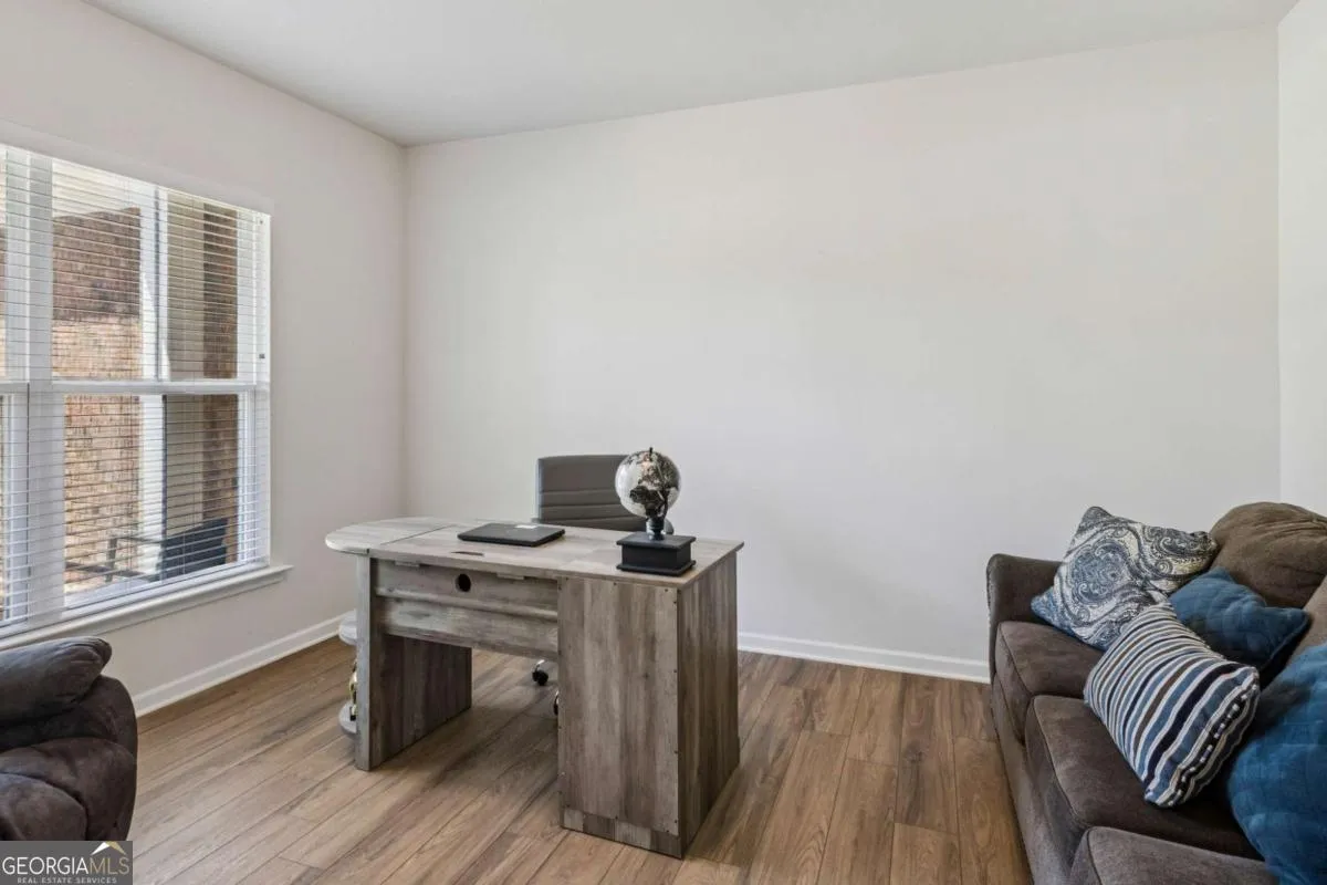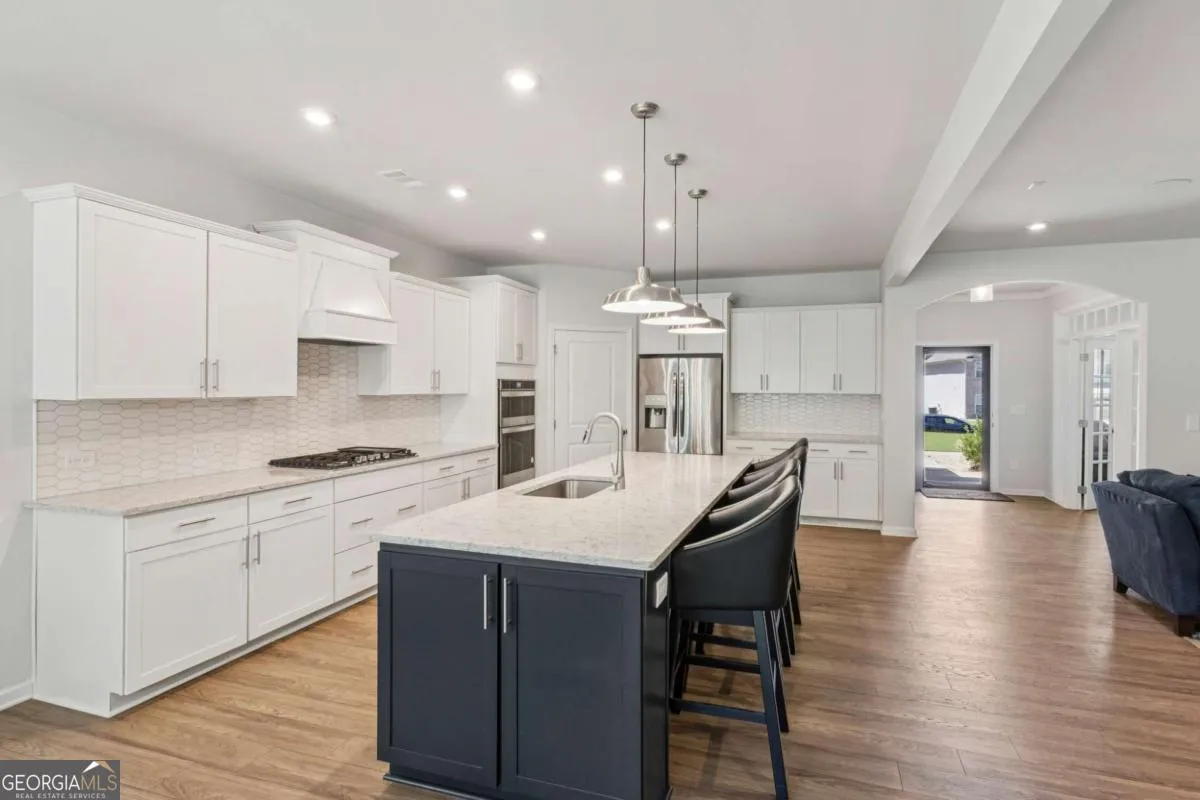 Hard-to-find TRUE ONE-LEVEL LIVING in this newer construction home in the Brighton subdivision. Assumable 5% VA loan. This thoughtfully designed home offers an open-concept layout on a private and level lot, combining comfort with style. Inside, you’ll find three spacious bedrooms and three full bathrooms, plus a private library and bright sunroom, perfect for working from home or relaxing. The gourmet kitchen is a showstopper, featuring Silestone countertops, an oversized island, stylish vent hood, gas cooktop and oven, and upgraded finishes – ideal for entertaining. The owner’s suite offers you a private retreat with a tray ceiling in the bedroom, large walk-in closet and luxurious bathroom details, while the mudroom cubbies by the interior garage entry keep everyday life organized. Throughout the home, hardwood flooring and high-end upgrades add warmth and elegance. This home truly blends function and luxury – ALL ON ONE CONVENIENT LEVEL. Beautiful tree-lined 1+ ACRE LOT (lot extends up ridge to right of the house and beyond lawn in rear). ***HOA includes business-class internet service.*** Zoned for highly sought after Fayette County schools. Close to Trilith/Trilith LIVE, Fayette Pavilion, and the highly anticipated US Soccer National Training Center. Easy access to the airport and downtown Atlanta.