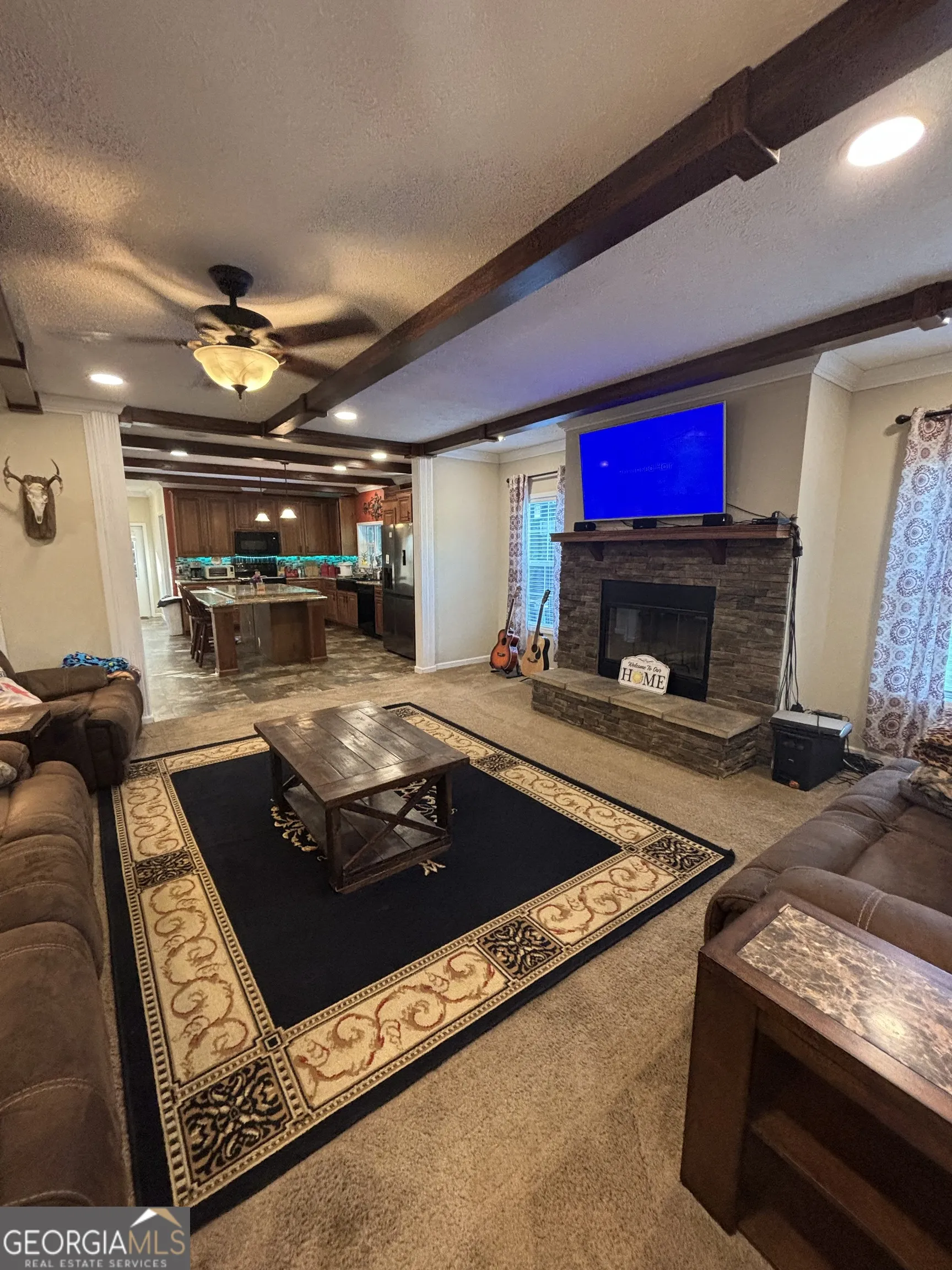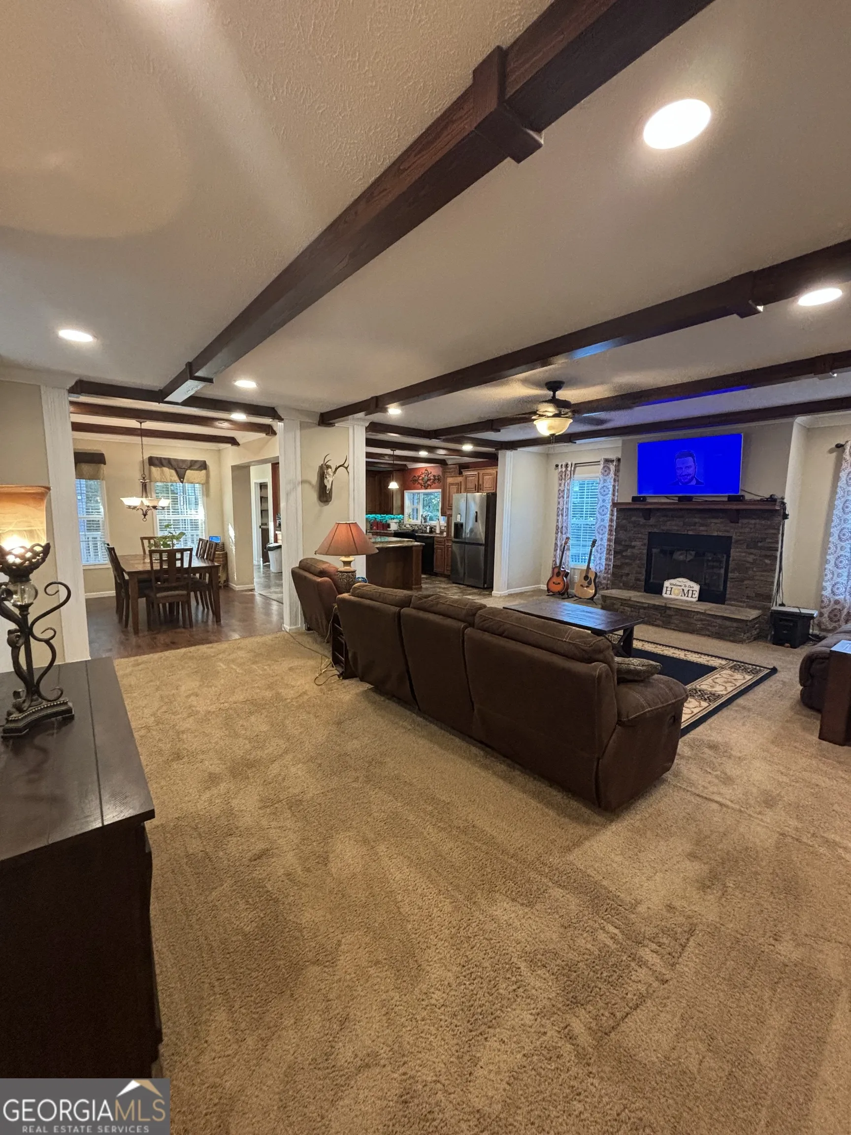 10.9 acres with a stream/creek on back of property and too much wildlife to mention. This property also has an RV hookup, an above ground pool with a deck surround that is fully equipped with an outdoor “chef’s station for the grill master”, and there is an ATV track out back too. These are just a few of the “outdoor features”. The house plan was lovingly selected and built by these homeowners in 2017. Upon arrival, A pretty front porch ushers you into an entry foyer overlooking a large family room with stone accent real wood burning fireplace, vaulted ceilings and exposed beams that continue throughout the open floor plan into the kitchen and dining area. The kitchen boasts a large island, new stainless-steel refrigerator and a farmhouse sink with a window above it overlooking the outdoor pool area. The laundry room is roomy with a utility sink and the new water heater. There is side/kitchen level entry from the outdoor parking pad for bringing in those groceries. All the bedrooms are spacious. There is a jack and jill bathroom with 30-inch dual vanity between 2 of the secondary bedrooms. The owner’s suite is large enough for YOUR California King bed and all the dressers and nightstands that accompany them with room left over! The adjoining master bathroom is a dream, with garden tub, separate shower, and double vanities. This home has been beautifully maintained and has all the outdoor and indoor characteristics you need! Call your favorite Realtor today and have them schedule your appointment!
