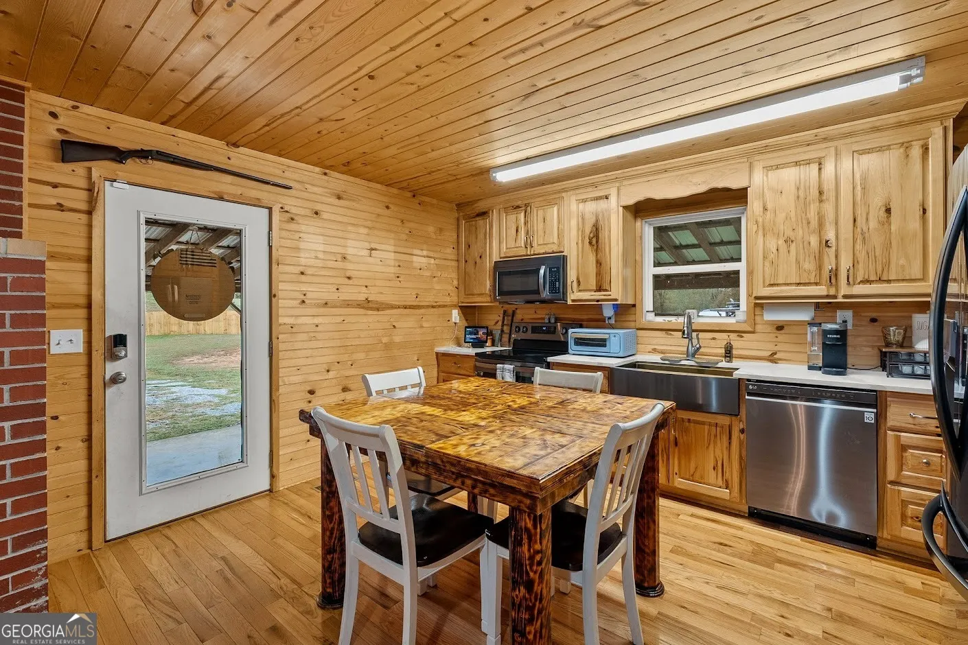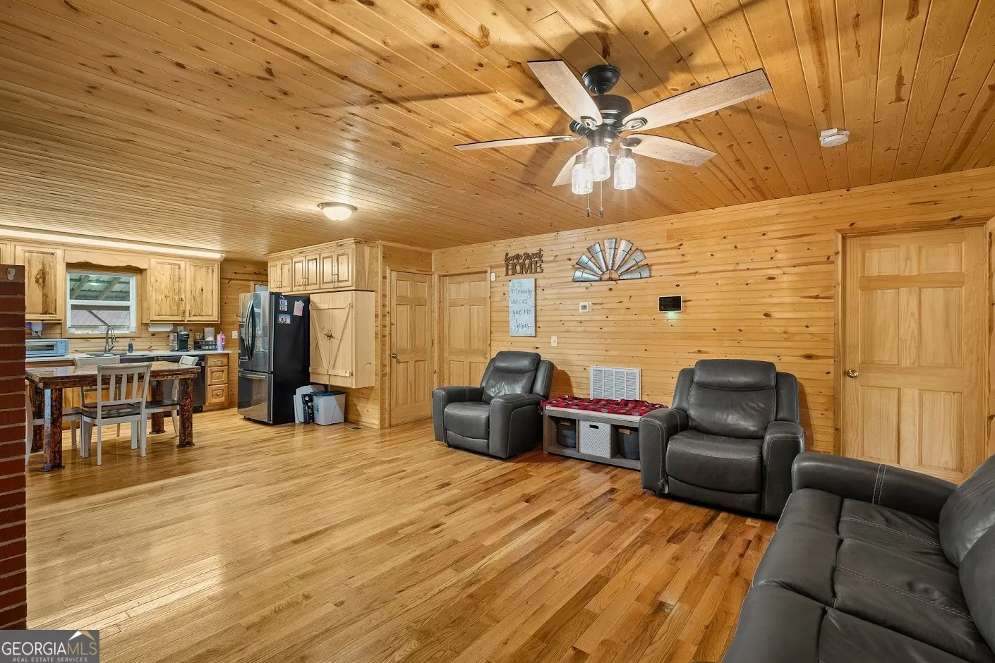 **New pictures!** Built in 2017, this 5 bed/2 bath brick home blends modern efficiency with rustic charm, featuring a log cabin-style interior beneath a durable metal roof. Two bedrooms and one bathroom are on the main level. The country kitchen is standout, showcasing quartz countertops, a farm-style sink, and sleek black stainless steel appliances, flowing seamlessly into the great room. A stunning masonry fireplace serves as the centerpiece, powerful enough to heat the entire home. The finished FULL basement offers 2 more bedrooms (no windows in the downstairs bedrooms – perfect for day sleepers!), a bathroom, and another masonry fireplace. You may want to use the basement as your deluxe man cave or even a theater room! Upstairs, you’ll find one more bedroom and generous walk-in attic storage. Outdoor living is exceptional! Enjoy the expansive back deck overlooking the lake, relax under the wraparound covered patio, or roam the fenced acreage. A covered shelter provides parking for a camper and boat, and the blend of pasture and privacy fencing makes it ideal for homesteading or recreation. Thoughtfully designed and energy-efficient, this property delivers the perfect blend of comfort, privacy, and timeless appeal, now at a price you won’t find again!