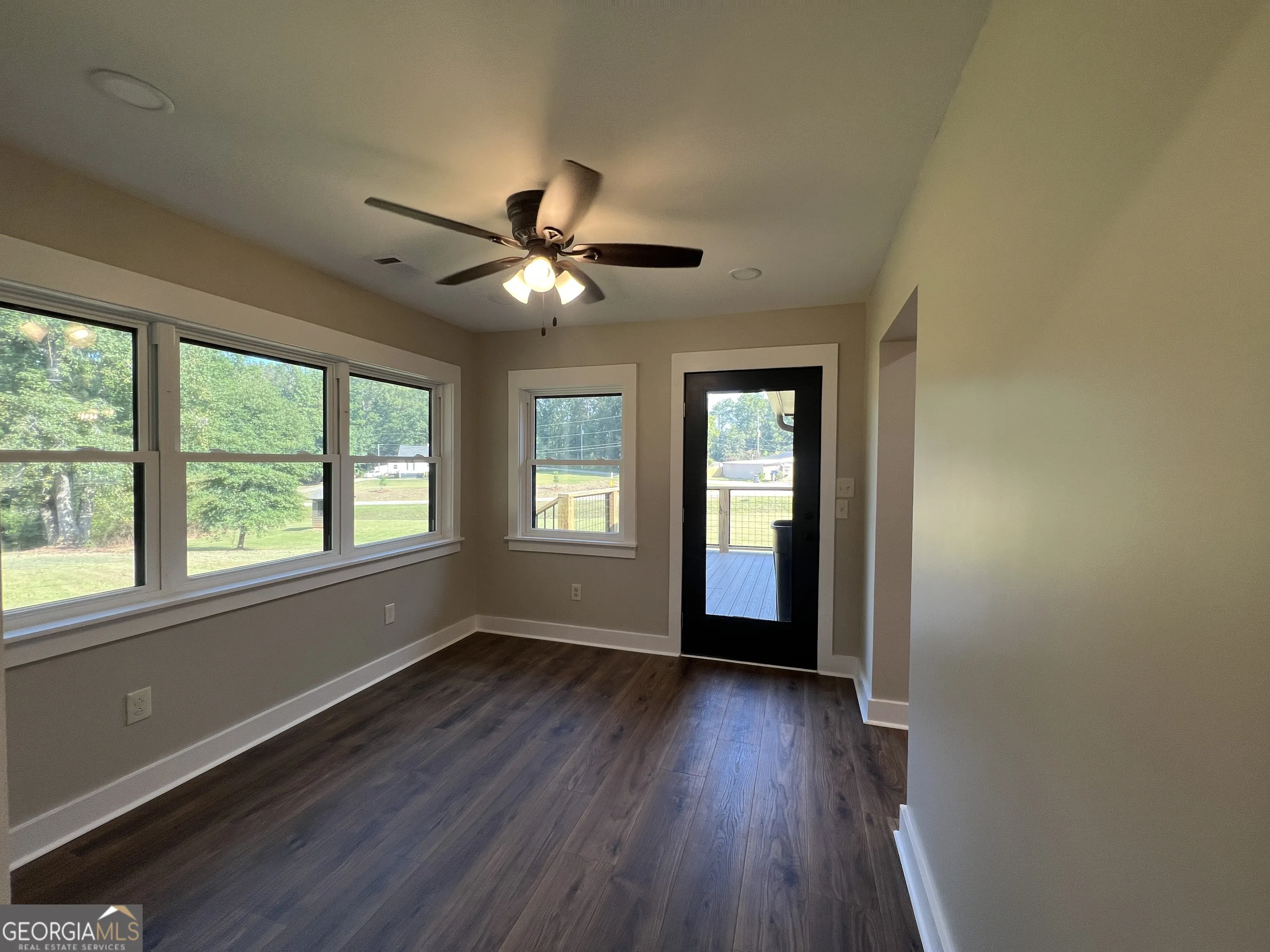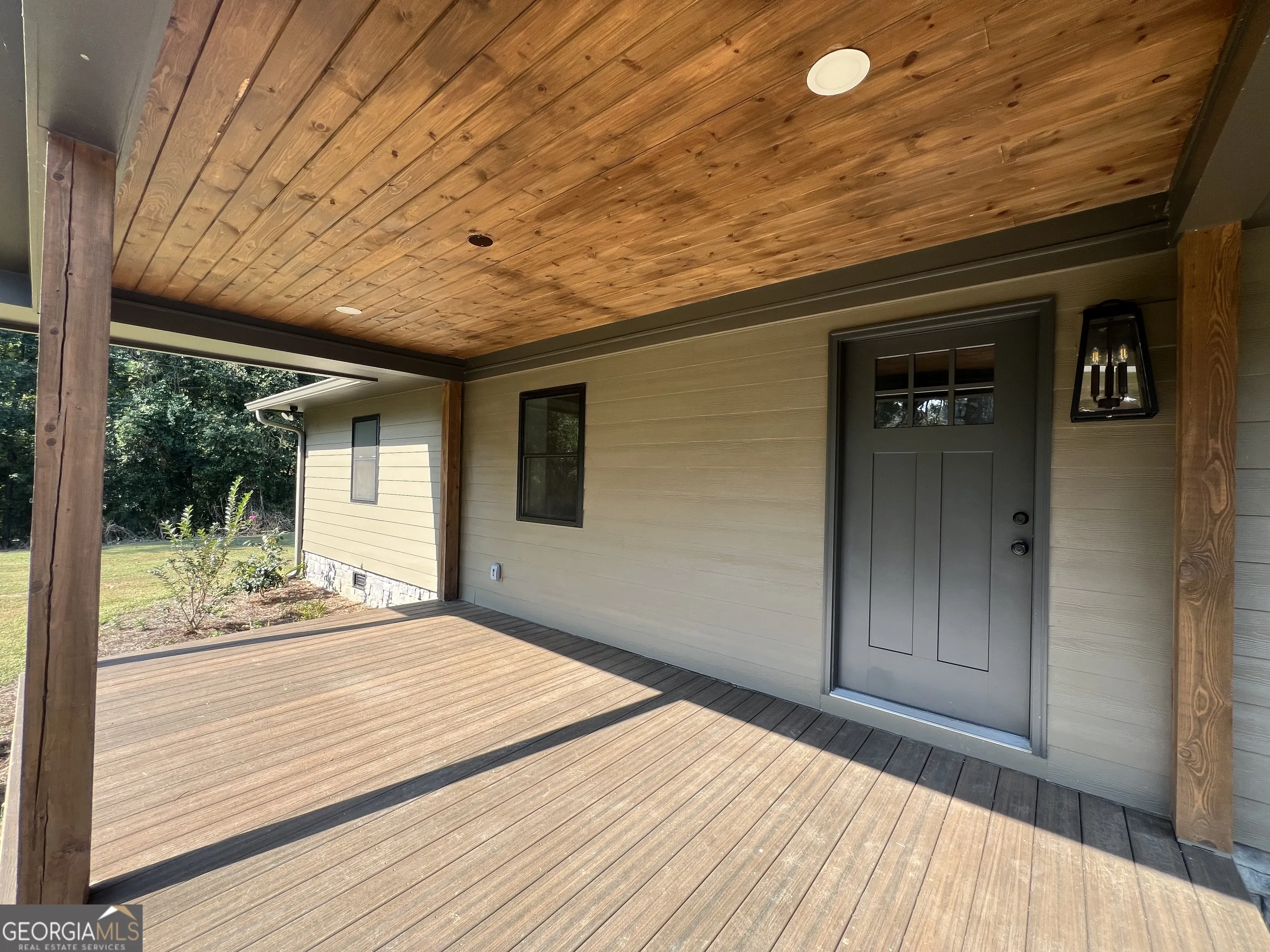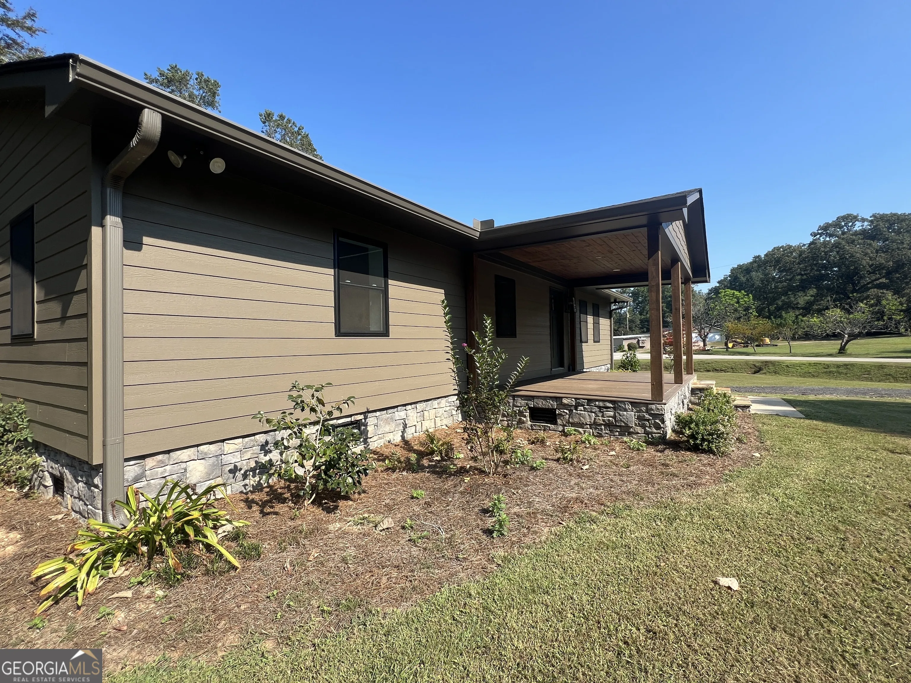 Welcome home to this beautifully fully renovated ranch situated on a full 1-acre corner lot in the desirable Crossings Subdivision. This immaculate 3-bedroom, 2-bath residence has been re-imagined from top to bottom with a focus on modern comfort, energy efficiency, and high-end finishes. Professionally redesigned by LK Design. Step inside to discover an open floor plan bathed in natural light, featuring luxury vinyl plank flooring throughout, striking electric fireplace, and stylish custom cabinetry with quartz countertops. New plumbing, full electrical rewiring, LED lighting, and updated fixtures ensure peace of mind and move-in ready. The master suite delights with a tiled walk-in shower and dual vanities; guest bath boasts a tub with tile surround. A separate laundry room and a bright sun room (ideal for dining, home office, or quiet reading) round out the interior. Outside, enjoy wide front and rear porches with Trex decking and cypress columns. The house is designed for both style and efficiency – with fully insulated walls, spray foam attic insulation, Energy Certified Windcore windows, new HVAC, new architectural roof with updated gutters, new Hardie Plank siding, fresh exterior paint, and stonework accents. Lets not forget The Crossings community has lake access and a small playground at the entrance of the lake access.