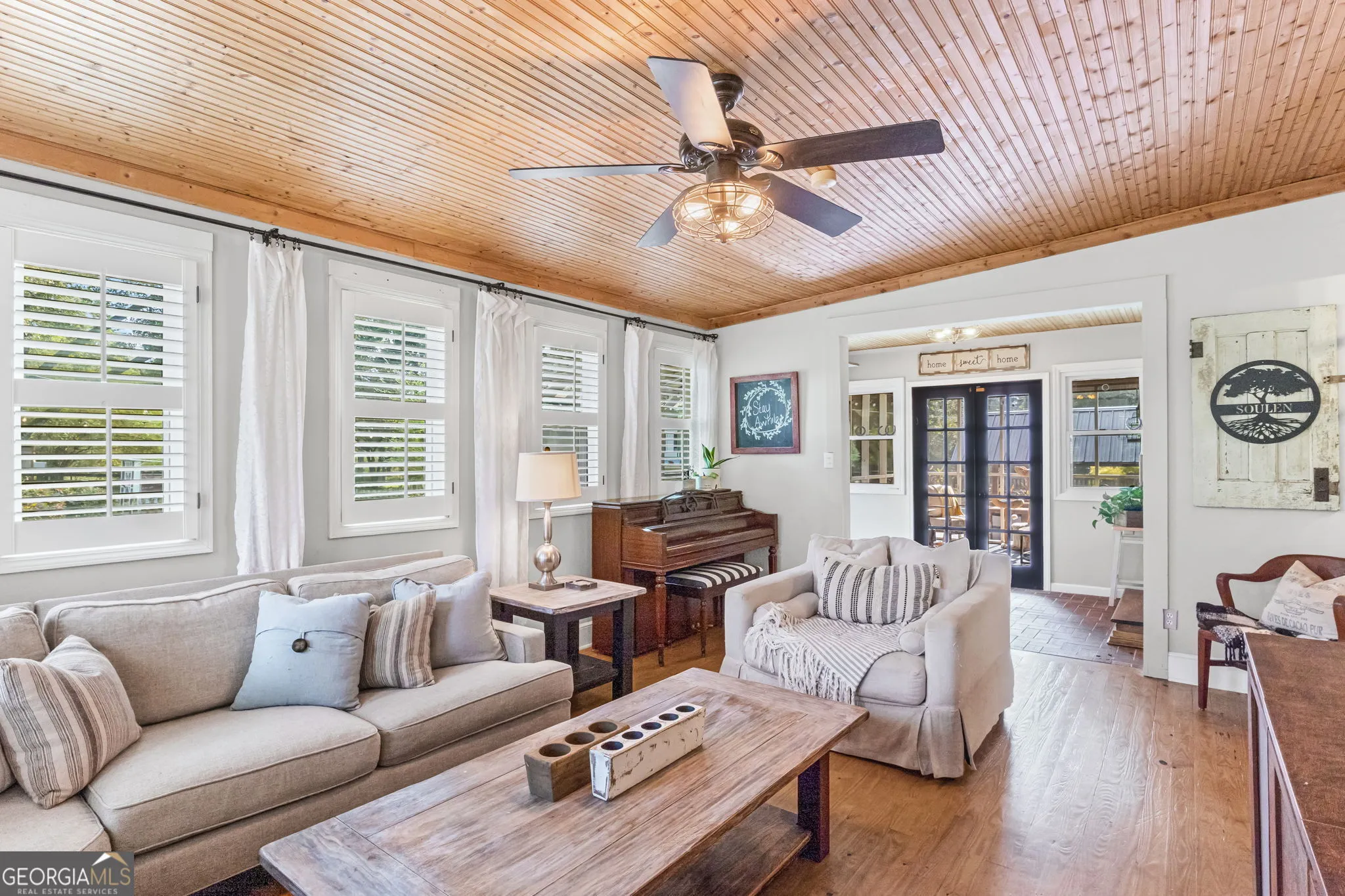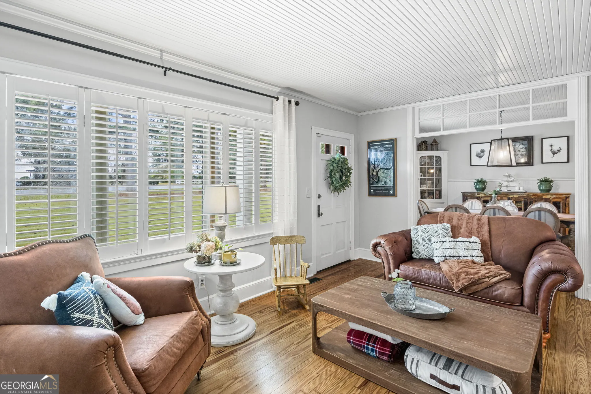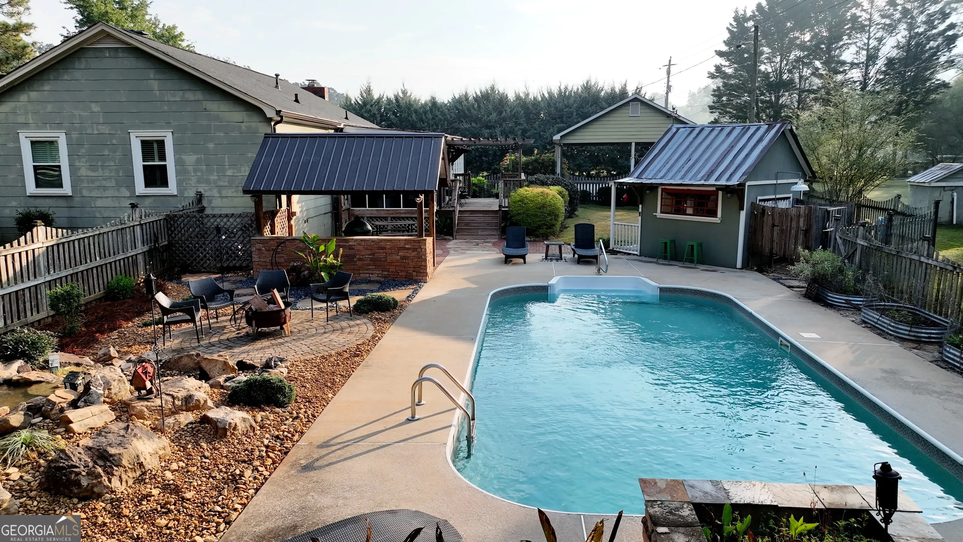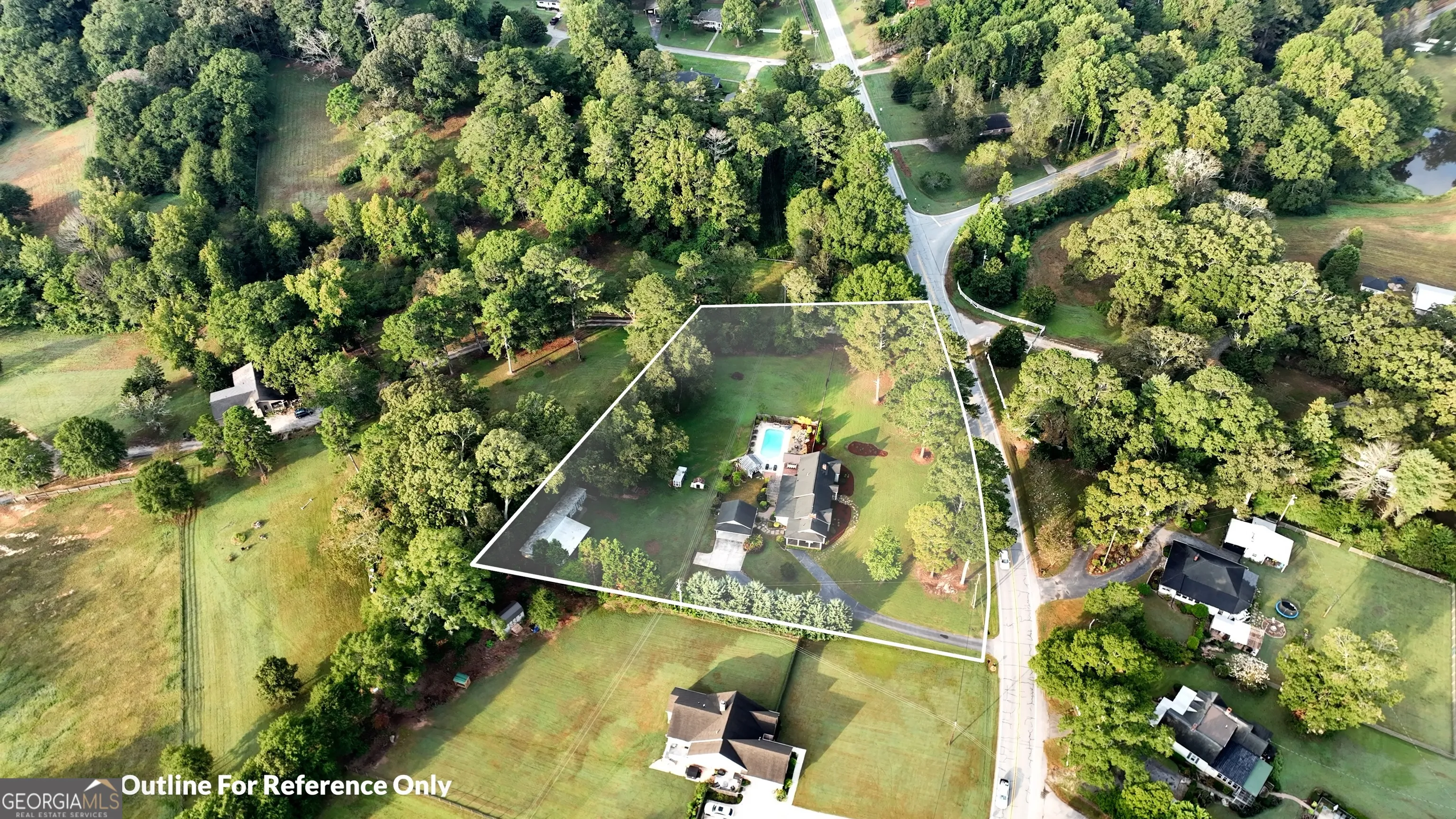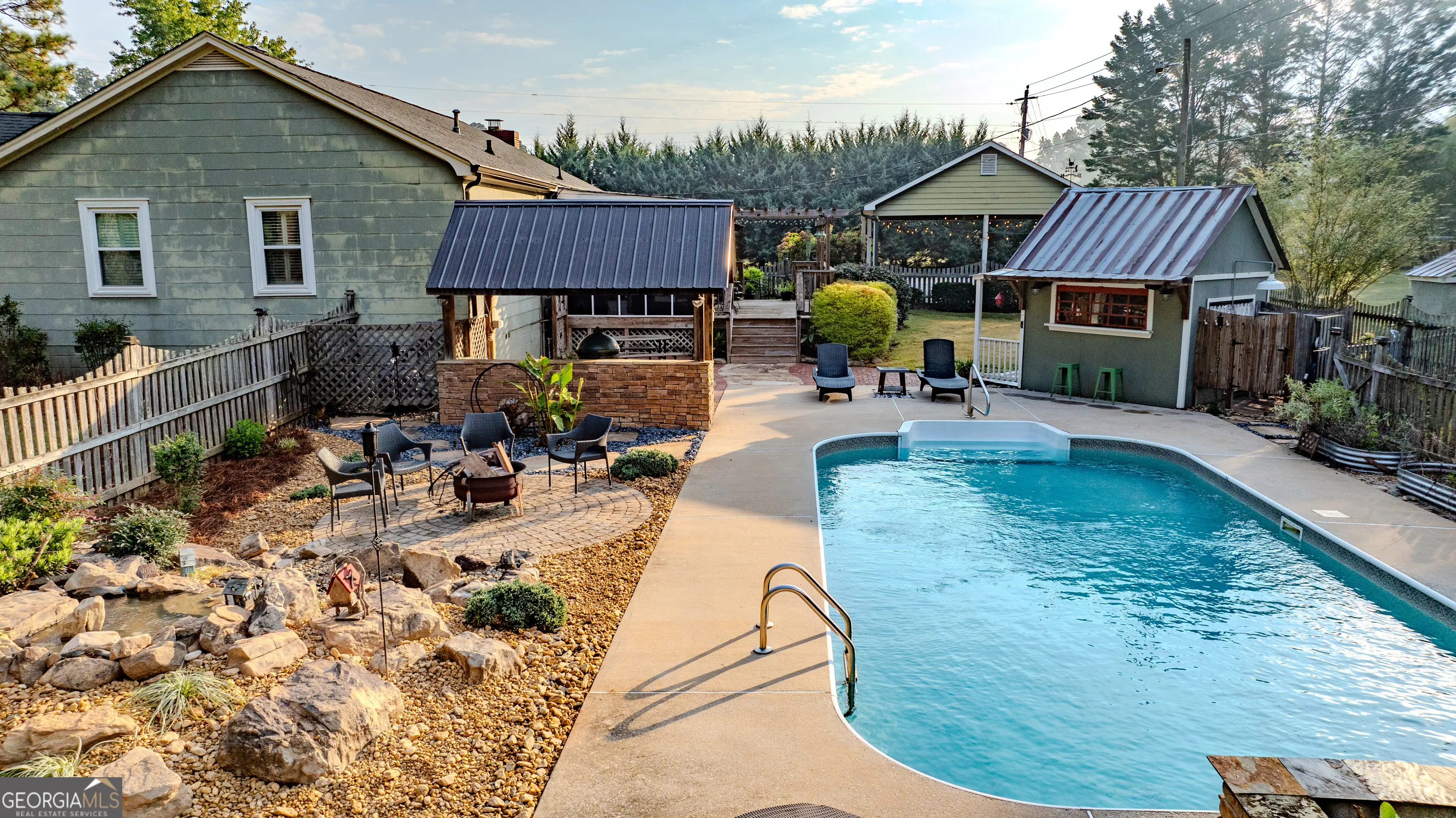 NEW ROOF! NEW SEPTIC SYSTEM! BEAUTIFUL FARMHOUSE WITH A POOL ON A SPACIOUS AND PRIVATE TWO-ACRE LOT. Gorgeous hardwood floors, plantation shutters, updated kitchen with marble countertops, new appliances and fixtures, beautiful cabinets, large island, coffee nook, living room with brick fireplace, built-in bookshelves, separate dining room with built-in china cabinet, glass transoms, beadboard ceilings, big den w/ lovely natural light, powder room with laundry in hall. Roomy master bedroom with brick, wood-burning fireplace, exposed beams, fantastic master bath with walk-in tiled shower, soaking tub, walk-in closet with built-ins, private entrance to wrap around porch. Split bedroom plan with nice-sized bedrooms. Screened porch off back foyer entrance. New 6mil moisture plastic barrier in the crawl space. Foam insulation in crawl space and in the attic. All windows are new energy saving windows. Backyard oasis with back deck with pergola, 16 x 32 pool, outdoor kitchen, pool house, speakers, outdoor shower, fire pit area, waterfall, fenced backyard, chicken coops, kennel, workshop, with power (240 amp), barn with stables, storage space, ample parking for RV. Enjoy life in the country while being close enough to downtown Newnan, Ashley Park and I-85.
