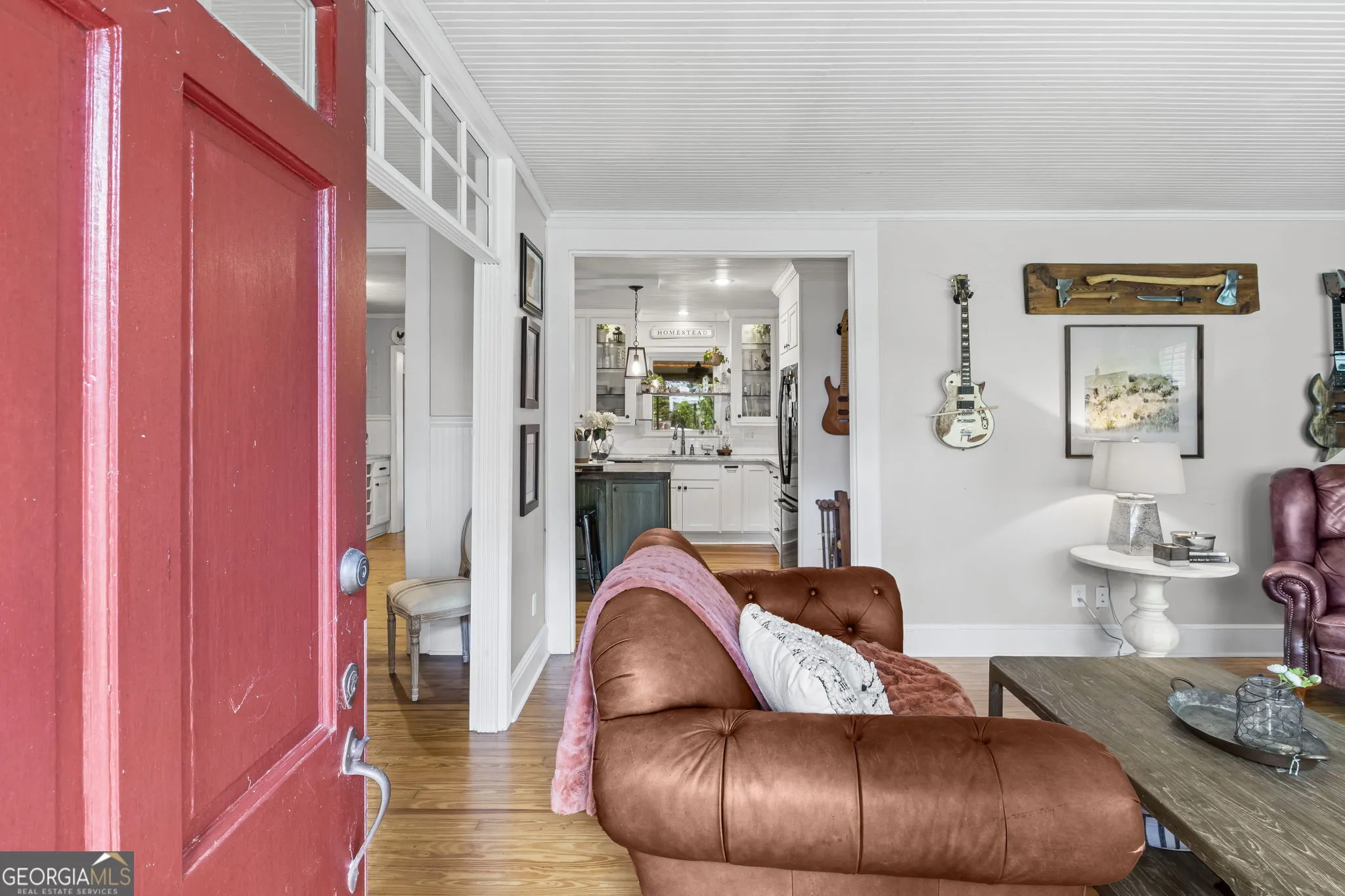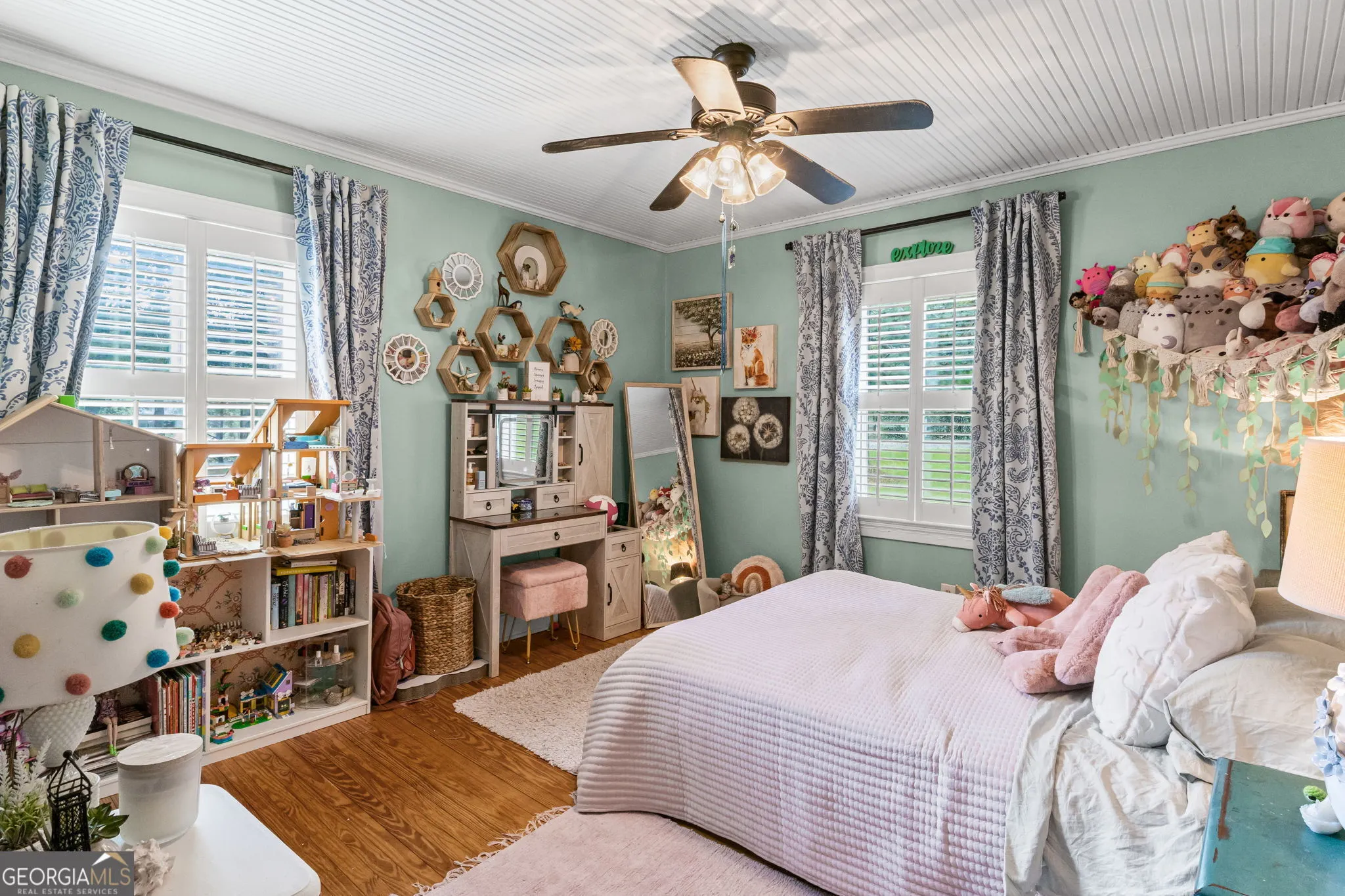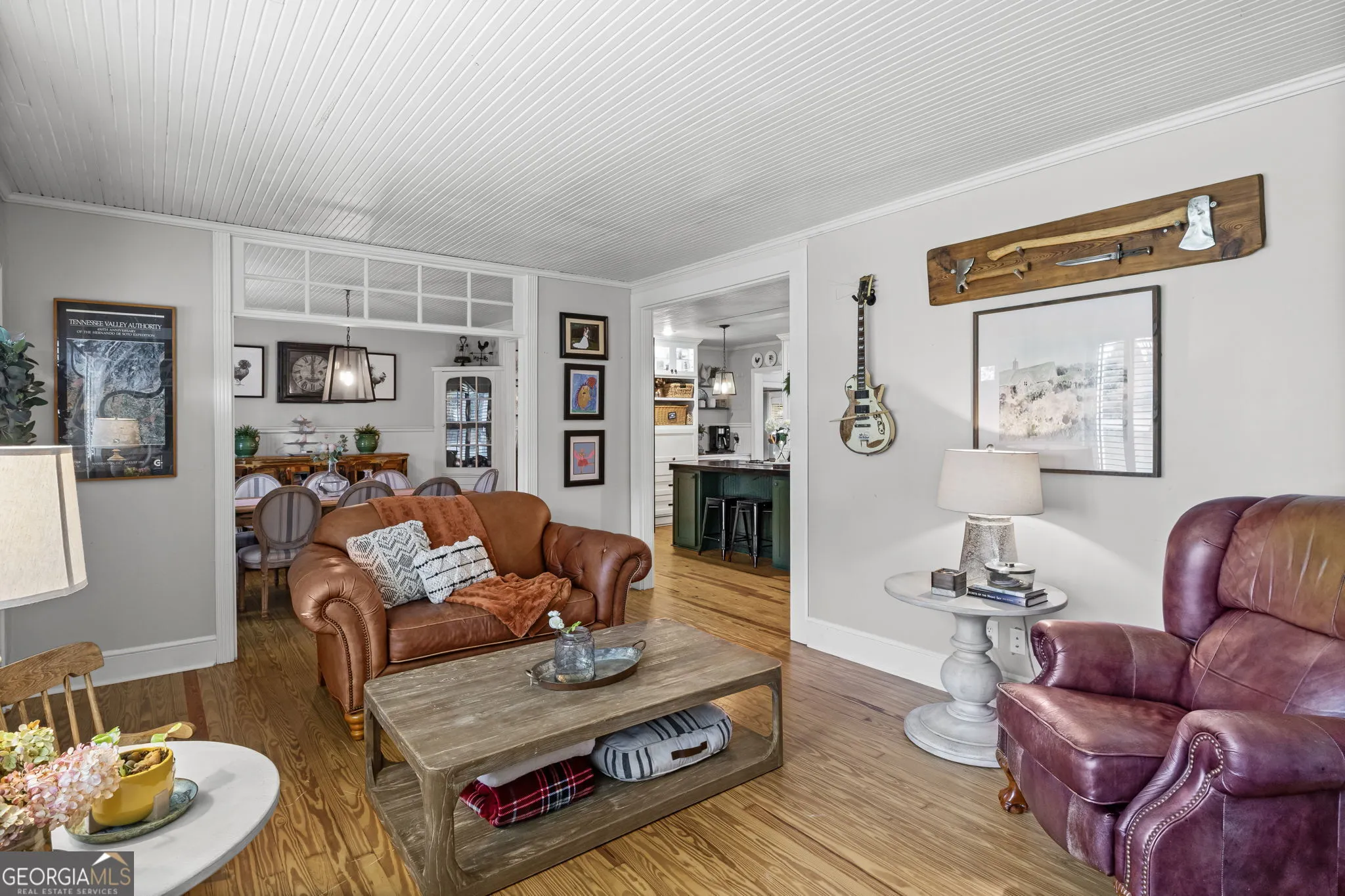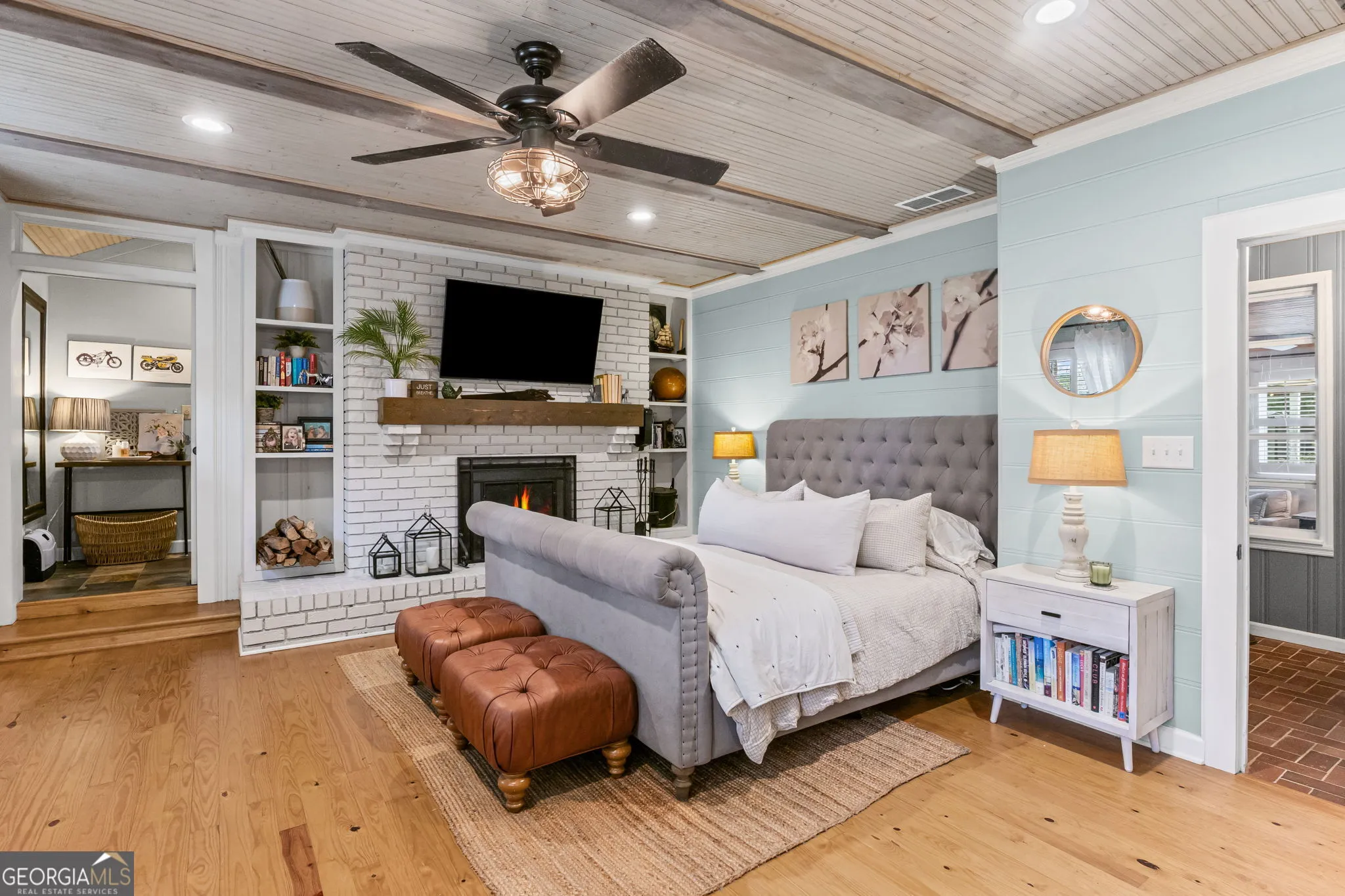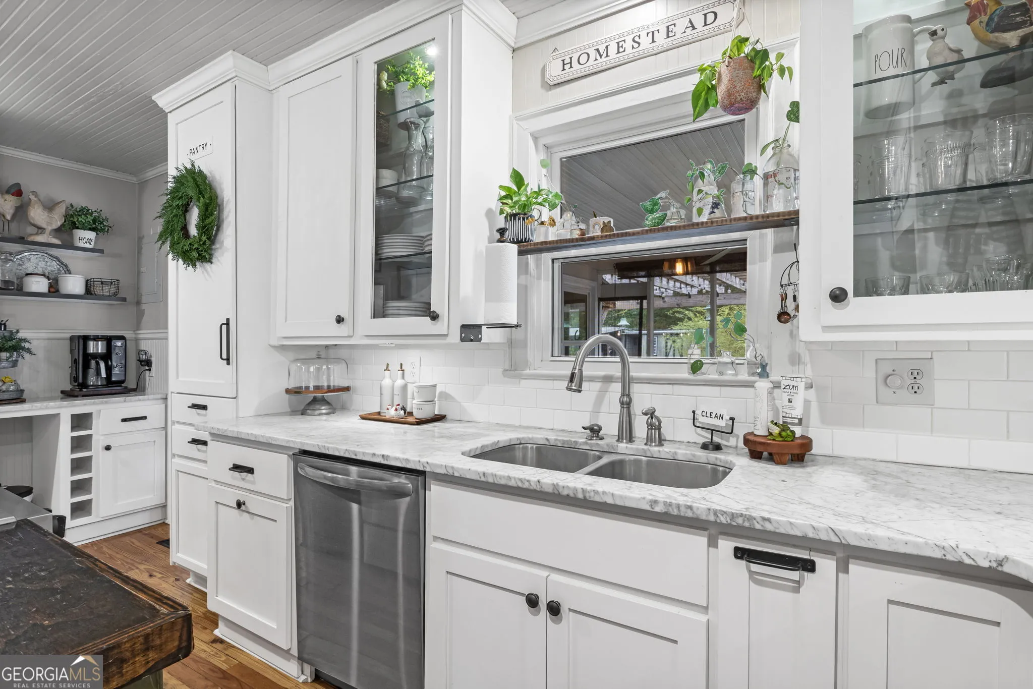 NEW ROOF! NEW SEPTIC SYSTEM! BEAUTIFUL FARMHOUSE WITH A POOL ON A SPACIOUS AND PRIVATE TWO-ACRE LOT. Gorgeous hardwood floors, plantation shutters, updated kitchen with marble countertops, new appliances and fixtures, beautiful cabinets, large island, coffee nook, living room with brick fireplace, built-in bookshelves, separate dining room with built-in china cabinet, glass transoms, beadboard ceilings, big den w/ lovely natural light, powder room with laundry in hall. Roomy master bedroom with brick, wood-burning fireplace, exposed beams, fantastic master bath with walk-in tiled shower, soaking tub, walk-in closet with built-ins, private entrance to wrap around porch. Split bedroom plan with nice-sized bedrooms. Screened porch off back foyer entrance. New 6mil moisture plastic barrier in the crawl space. Foam insulation in crawl space and in the attic. All windows are new energy saving windows. Backyard oasis with back deck with pergola, 16 x 32 pool, outdoor kitchen, pool house, speakers, outdoor shower, fire pit area, waterfall, fenced backyard, chicken coops, kennel, workshop, with power (240 amp), barn with stables, storage space, ample parking for RV. Enjoy life in the country while being close enough to downtown Newnan, Ashley Park and I-85.