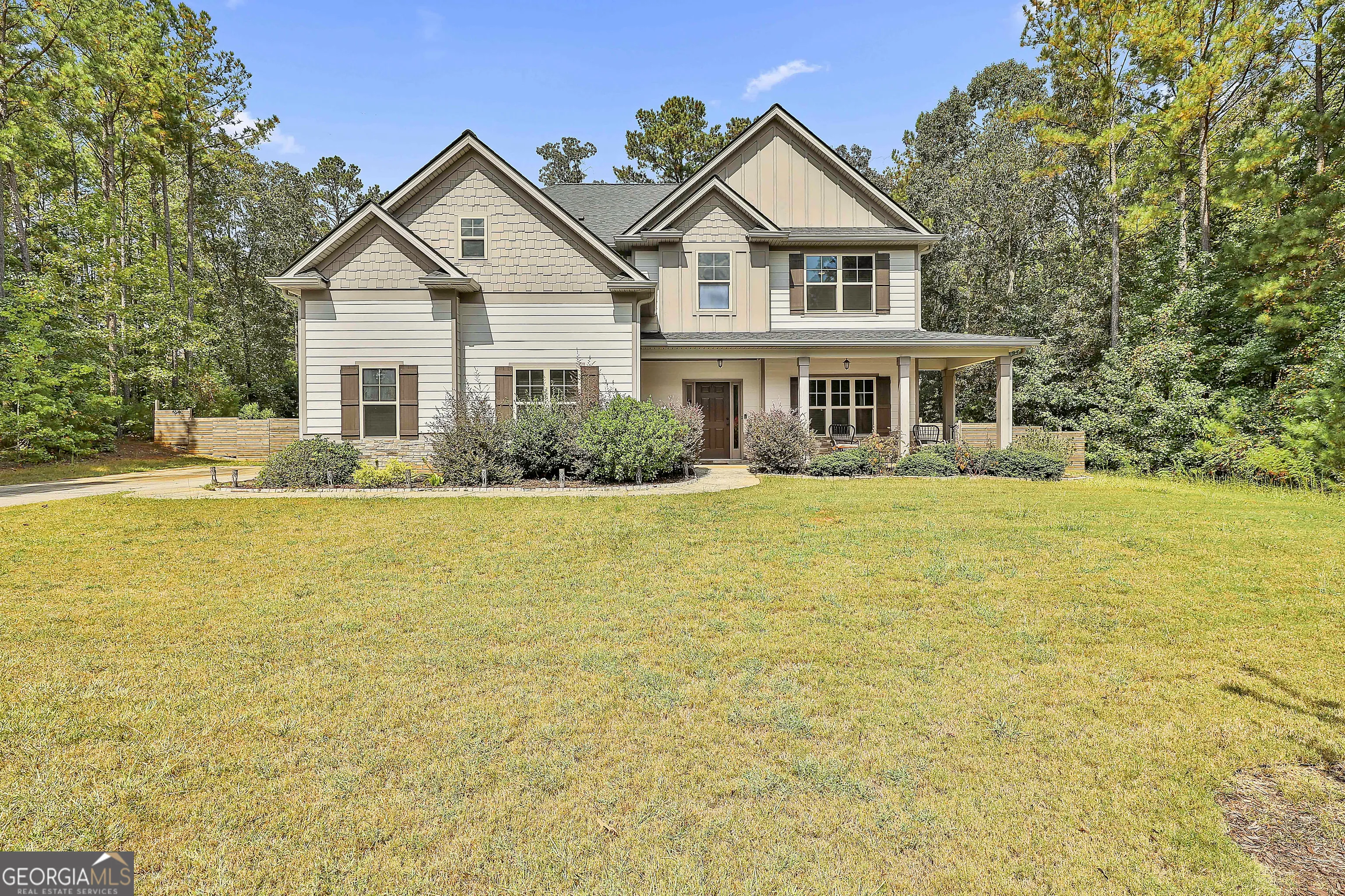 Your dream home that sits on 1.67 acres offers the perfect balance of privacy! Step into this stunning Craftsman-style home, where classic charm meets modern convenience. From the welcoming rocking chair front porch to the thoughtfully designed interior, this 4-bedroom, 3-bath, 2,478 sq.ft residence offers space, style, and comfort for every lifestyle. Main Level Highlights: The heart of the home is a gourmet kitchen featuring rich hardwood floors, gleaming granite countertops, and a spacious breakfast bar-perfect for casual meals or entertaining guests. The kitchen flows seamlessly into a dramatic 2-story great room, anchored by a cozy fireplace and filled with natural light. Included Whirlpool stainless steel appliances-range, dishwasher, and microwave-make cooking a breeze. A formal dining room with hardwood flooring adds elegance for special occasions. A versatile main-level bedroom or office with a full bath offers flexibility for guests, remote work, or multi-generational living. Upstairs Retreat: The expansive owner’s suite is a true sanctuary, complete with a tranquil sitting area and a generous walk-in closet. The luxurious en-suite bath features a 5-foot tiled shower, a separate garden tub for soaking, and dual vanities for added convenience. Community Perks at Fox Hall: Live like you’re on vacation every day with access to premium amenities: A spacious clubhouse with fitness center Jr. Olympic-sized pool with a thrilling water slide Tennis and volleyball courts for active fun Picnic pavilions and playgrounds for family gatherings and outdoor enjoyment Ideal Location: Nestled in the sought-after Fox Hall community, you’re just 20 minutes from Newnan or Peachtree City, offering easy access to shopping, dining, entertainment, and top-rated schools. Seller is offering 10,000 in closing costs!!!!!