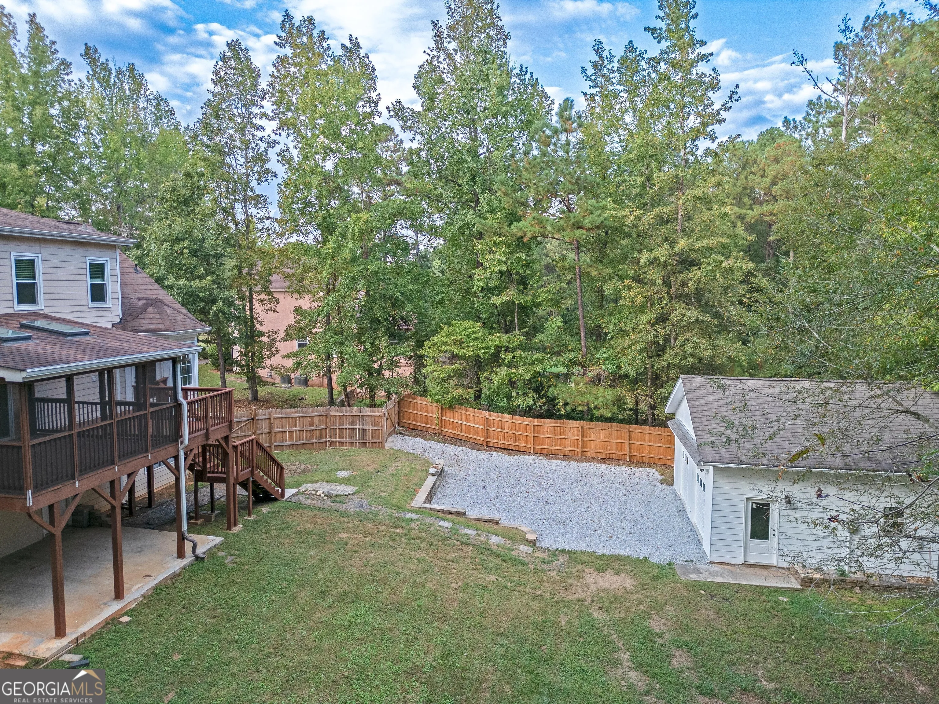 This 4 bedroom/3.5 bath “move-in ready” Fayetteville property is perfect for hobby/car enthusiasts! Only minutes to Trilith studios and the new US Soccer Headquarters, this lovely home features master on the main with a enormous screened porch and an additional detached garage/workshop! Parking for 4 cars as well as tons of room in basement for all your storage/workshop needs. Enter the welcoming foyer flanked by the dining room open to the spacious family room. Hardwood flooring, neutral paint and a cozy fireplace are highlights of the family room. Spacious kitchen with granite counters, tons of cabinets, huge walk-in pantry and eat-in area. MASTER ON THE MAIN with ensuite of soaking tub, tile shower and “to die for” walk-in custom closet. Upper level features three additional bedrooms and a convenient second full bathroom. Finished basement with tons of potential also has a full bath and huge utility closet. An acre private wooded lot with wooden privacy fence and outbuilding. Convenient location with close proximity to i-85 Atlanta, shopping, Fayette County Schools and medical facilities. Don’t miss this one!
