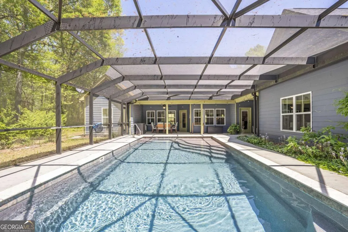 Welcome to this stunning 11-acre newer construction garden estate, where modern luxury meets country charm. The main residence features 3 spacious bedrooms and 2 beautifully appointed bathrooms, designed with comfort and functionality in mind. Soaring 10-foot ceilings throughout the home create a light, airy ambiance that enhances the sense of space and elegance. The modern kitchen boasts sleek finishes, an induction stove, walk-in pantry, and ample counter space, ideal for any home chef. Generously sized walk-in closets offer plenty of storage and easy organization. An expansive three-car garage provides additional storage solutions. An attached private guest suite offers complete independence with a full kitchen, comfortable living room, large bedroom, spacious bathroom, and walk-in closet-perfect for extended family or visitors. Both residences overlook a luxurious saltwater pool with a screened lanai enclosure, creating a seamless indoor-outdoor lifestyle and an ideal setting for year-round relaxation and entertaining. The estate is a true gardener’s paradise, with lush, mature landscaping and established fruit trees including peach, pear, Asian pear, apple, plum, and nectaplum. Enjoy fresh harvests from artichokes, strawberries, blackberries, a grape vineyard, and fully irrigated fruit and vegetable gardens. Outdoor enthusiasts will appreciate the on-site deer hunting opportunities across the expansive 11-acre property. Additional highlights include solar panels for energy efficiency, spray foam attic insulation, and high-speed internet-a rare luxury in a rural setting. A 1,000-square-foot insulated attic offers exciting potential for future expansion, whether for additional living space, a home office, or a recreational retreat. This extraordinary property blends modern amenities with the tranquility of nature-an exceptional opportunity for those seeking space, sustainability, and style.