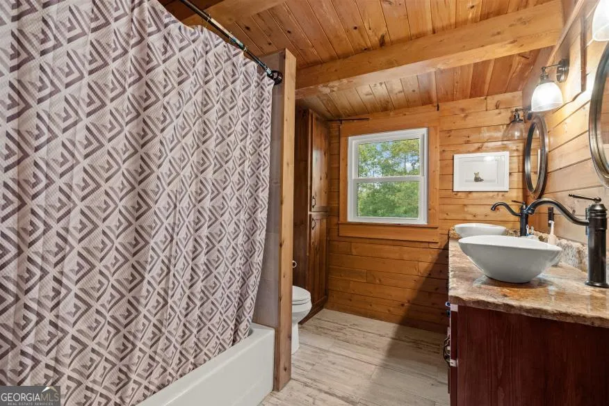 Welcome to this charming bungalow-style log home set on 6.64 acres in Heard County. This property offers fenced pasture, a private pond, and a brand-new 45×50 barn with concrete floors, four horse stalls, and dual lean-tos perfect for livestock, equipment, or hobbies. The home features 3 bedrooms and 3 full bathrooms, with recent updates throughout. The brand-new kitchen, all new windows, and remodeled finishes combine modern comfort with the character of a log cabin. Inside, you’ll love the open floorplan with vaulted ceilings, exposed beams, and a cozy living area anchored by a wood-burning stove. The master suite includes an additional room that works perfectly as an office, sitting room, or nursery. Enjoy peaceful country living while still being conveniently located just off Hwy 27, making it an easy drive to Carrollton, Newnan, or LaGrange.