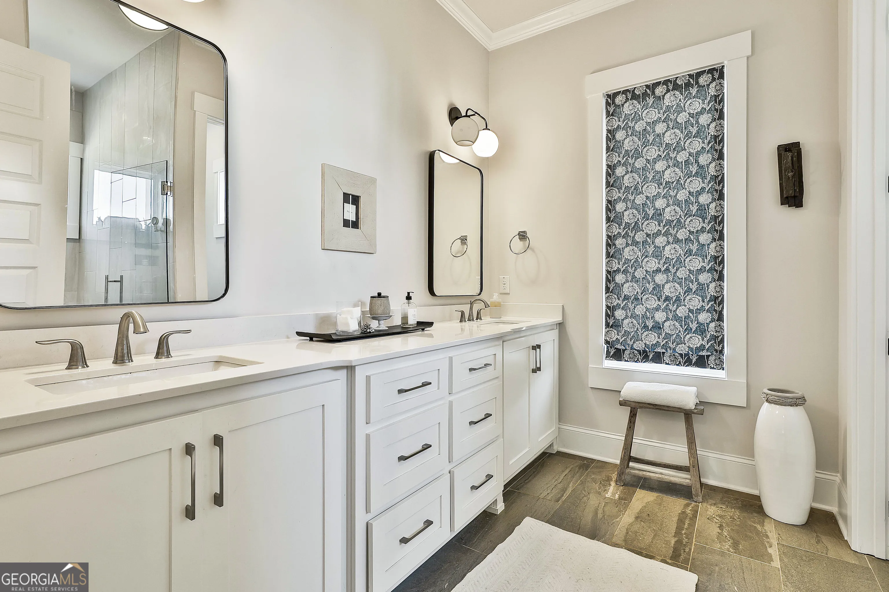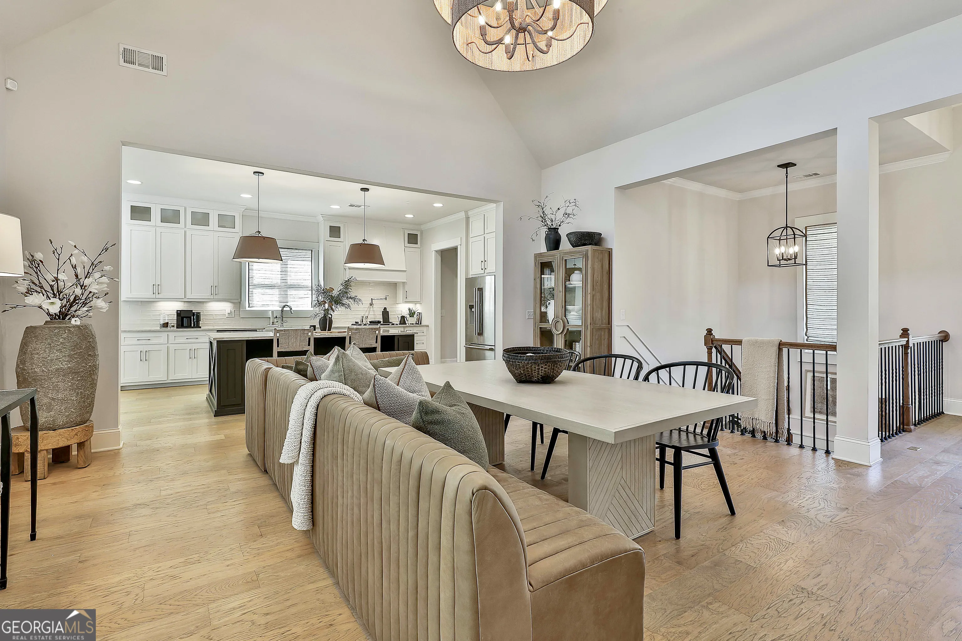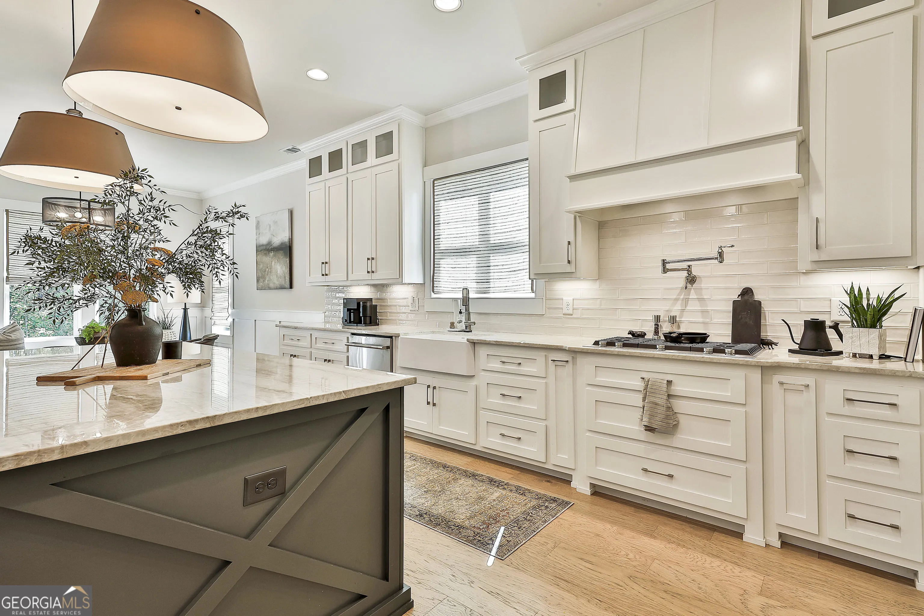 This elegant and meticulously updated home offers a perfect blend of modern luxury and comfortable living. From the custom finishes inside to the professionally designed landscaping outside, every detail has been thoughtfully curated for a move-in-ready experience. Enjoy the sophistication of brand-new lighting fixtures and designer finishes throughout, creating a bright and stylish ambiance in every room. The heart of the home features quartzite countertops and upgraded, JennAir appliances offering both high performance and aesthetic appeal for the home chef. The owners retreat is located on the main level featuring two closets with custom closet systems, serene views, and access to the covered back porch. The main level also includes a designated home office that offers a quiet and productive environment for remote work or study. Custom shades provide privacy and light control while adding a touch of tailored elegance to each window. The vaulted ceiling in the living room creates an open and airy feel, perfect for entertaining or relaxing. This home has two levels of outdoor living – the back balcony porch that flows off of the kitchen as well as the lower-level terrace patio off of the secondary living space. Relax in the spacious secondary living area with a custom wet-bar and beverage cooler. The home provides comfortable living arrangements with three additional, generously sized bedrooms and two full bathrooms for residents and guests. A built-in dog kennel is conveniently located on the terrace level, providing a dedicated and comfortable space for your canine companions. Enjoy privacy and security in the fully fenced backyard, a safe space for pets or play. The designer-grade landscaping and up-lighting provides exceptional curb appeal and a beautiful outdoor environment. The large garage provides ample space for multiple vehicles, storage, a home gym, or workshop of your choice. The North Shore neighborhood has a variety of amenities to ensure everyone has something to enjoy. Engage in friendly competition with access to the neighborhood tennis courts and pickle ball court. The neighborhood pool features a sun shelf with fountains, which is a shallow area perfect for lounging or for small children to play. A dedicated playground offers a great space for younger residents to play. Lastly, an expansive 300-acre recreational lake, complete with a dock, provides endless options for boating, fishing, and water play.