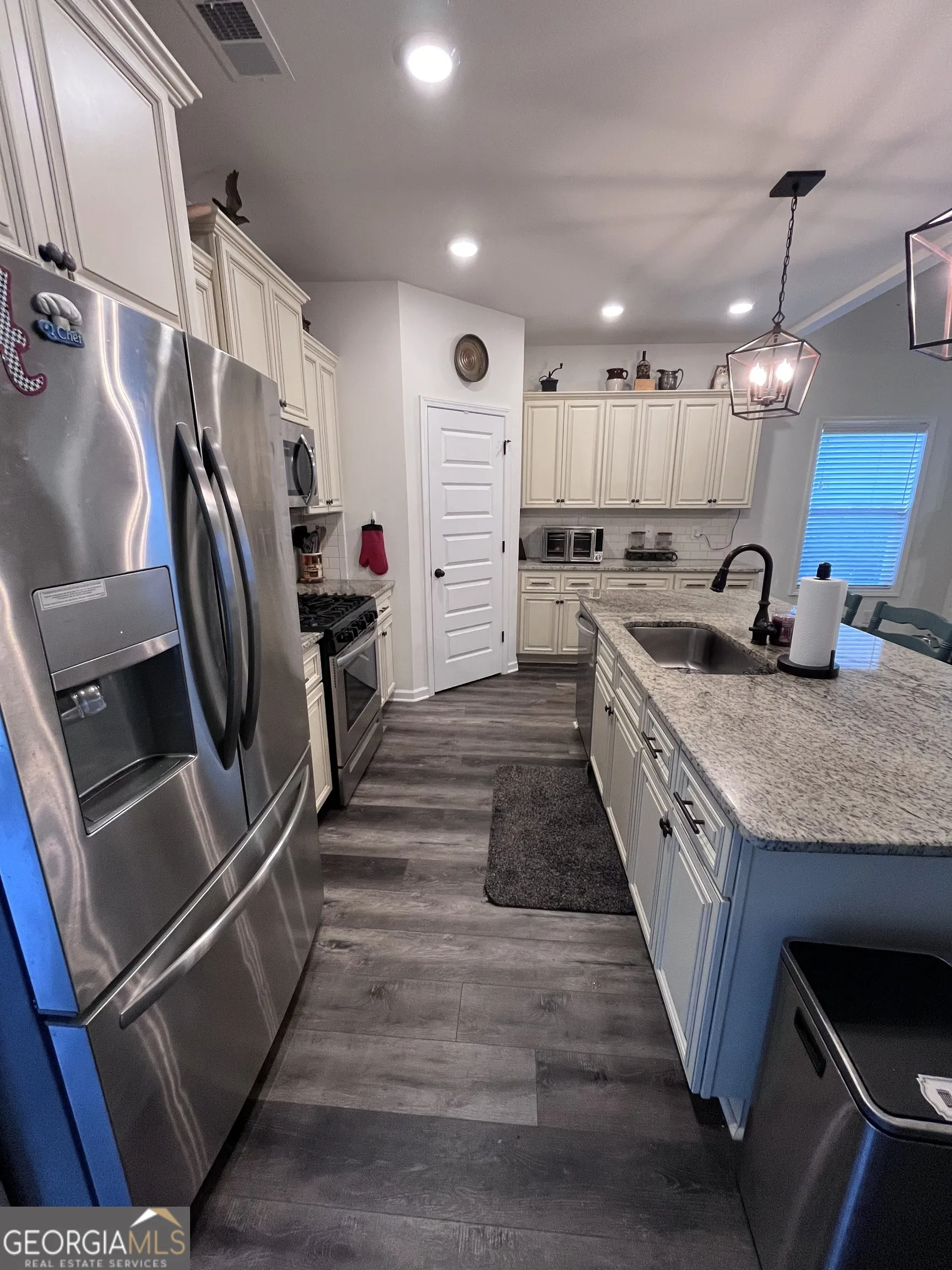 Welcome to this stunning Freeman Model home offering 4 spacious bedrooms, 2 5 baths, and a large, versatile bonus room that can easily transform into a fifth bedroom, game room, or entertainment space! The owner’s suite on the main level provides comfort and convenience, while the 14-foot vaulted ceilings in the great room create an open, airy, perfect feel for gatherings. Enjoy cooking in the large eat-in kitchen featuring granite countertops and plenty of space, or host special occasions in the separate dining room. Step outside to your fenced backyard oasis that backs up to tranquil wetlands-perfect for privacy and relaxation. Additional highlights include a larger garage unique to this model and a home that combines style, functionality, and natural beauty all in one! Less than a mile into town by walking, using golf cart path or a quick drive. This home is VA assumable at 3.25 for qualified buyers.