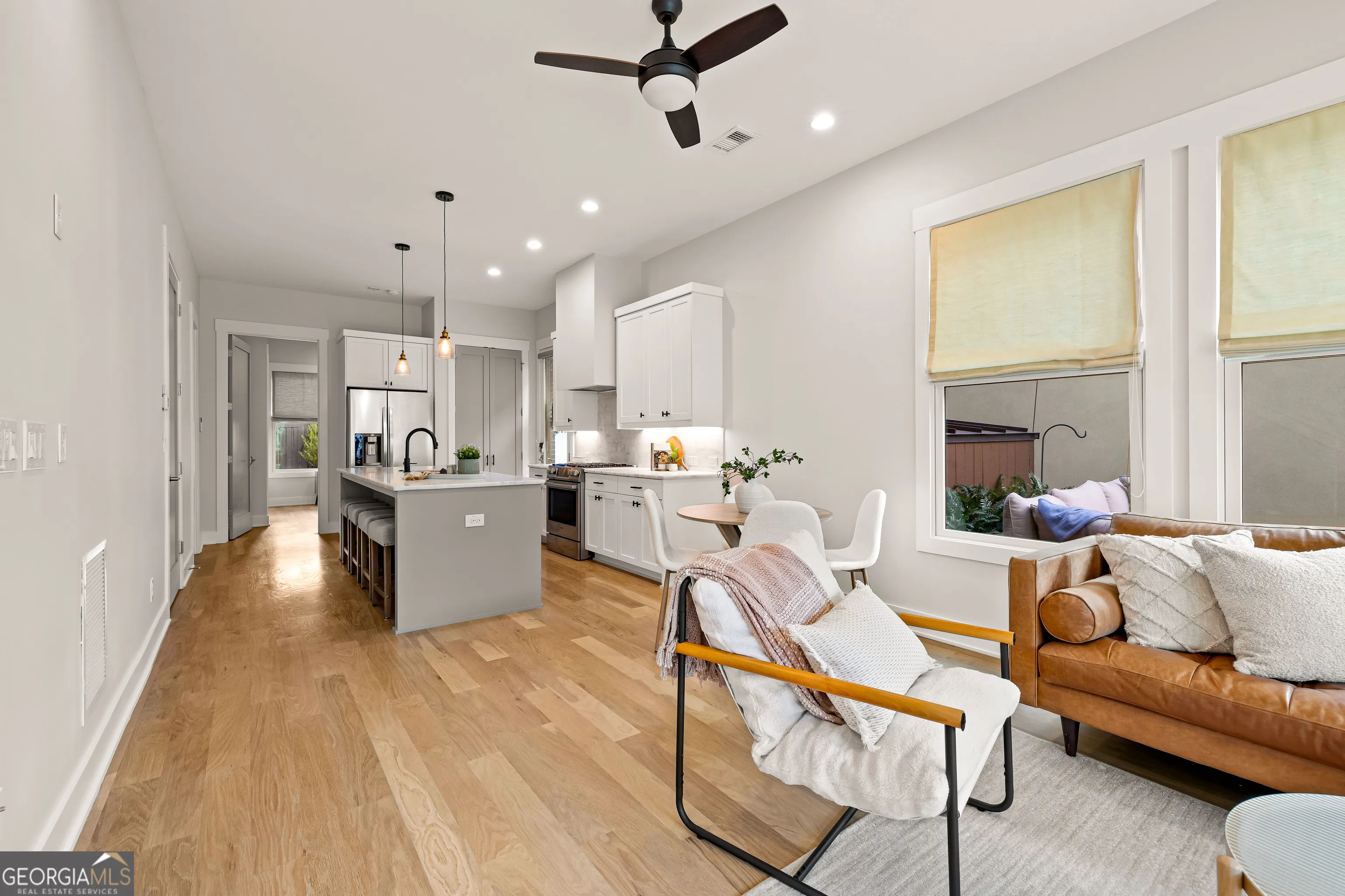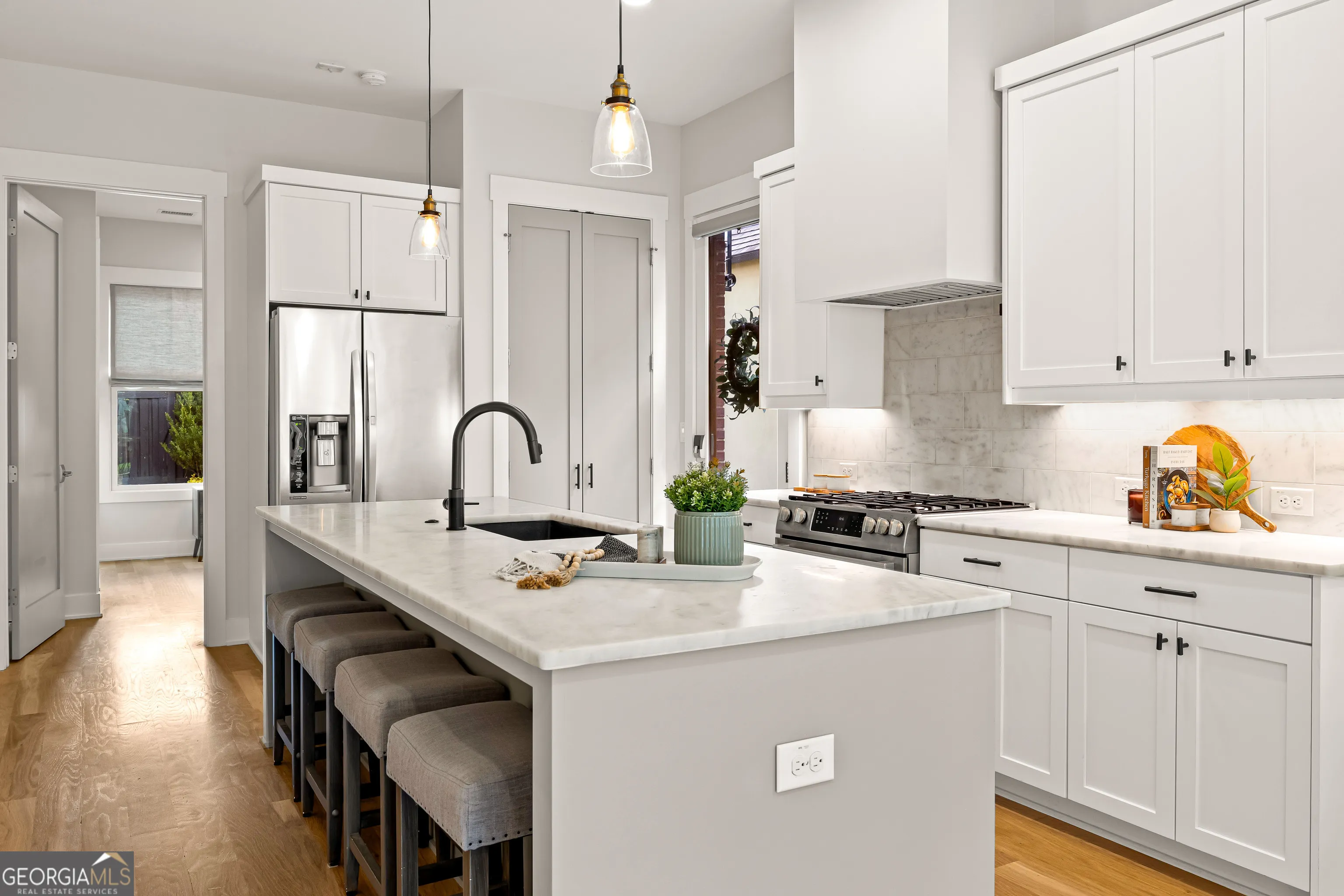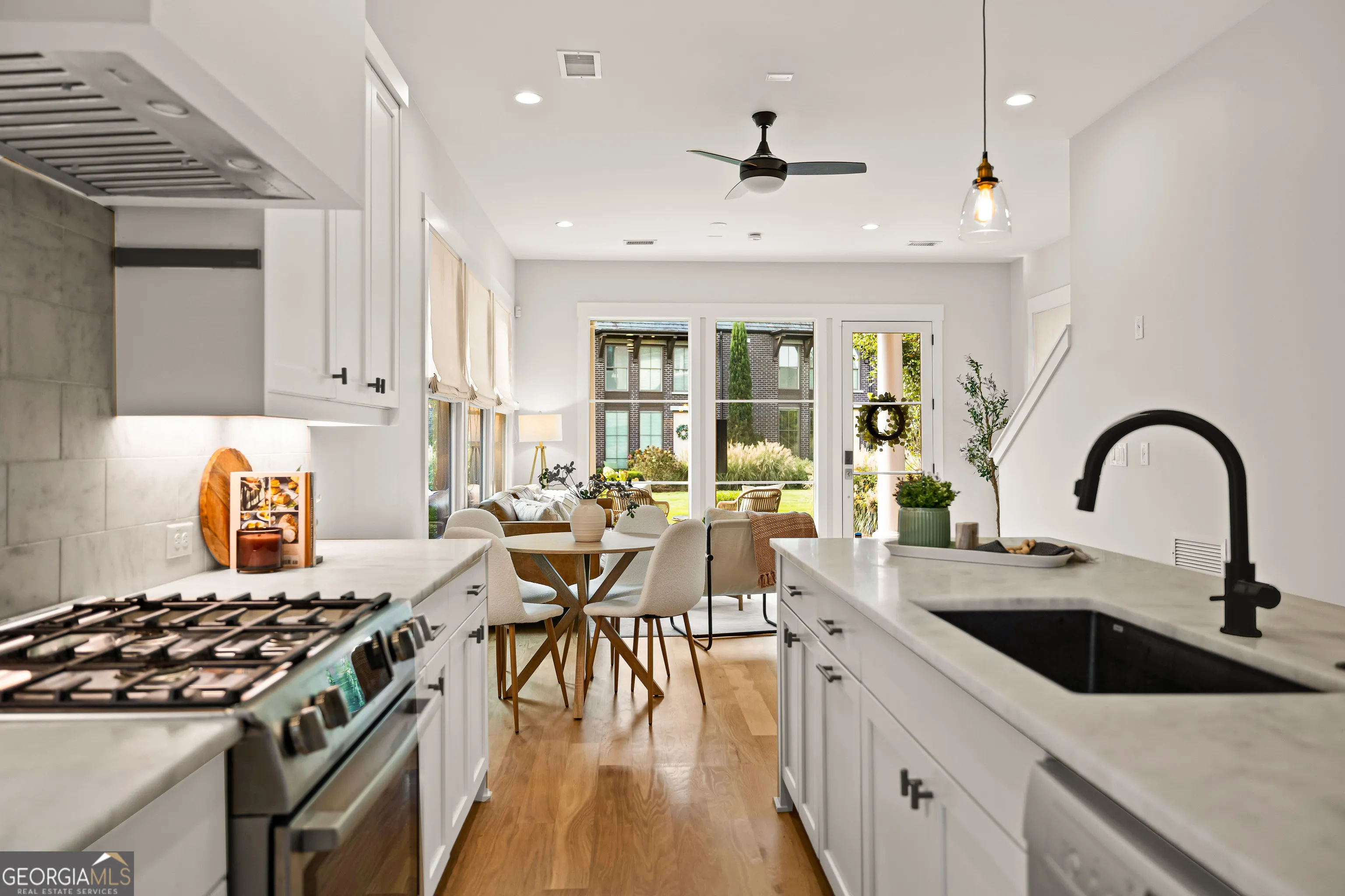 Welcome to your dream home in the heart of Trilith, Fayetteville’s award-winning master-planned community! This beautifully appointed 3-bedroom, 3.5-bath residence offers luxury living with stunning design and functionality. Soaring ceilings and expansive windows flood the home with natural light, highlighting high-end finishes throughout-including gleaming marble countertops and premium fixtures. The open-concept main level features a spacious living area that flows effortlessly to a private patio, perfect for morning coffee or evening gatherings. The second-floor primary suite is a true retreat, boasting a private balcony with serene, direct views of Triangle Park’s lush green space. A guest suite with en-suite bath is conveniently located on the first floor, while the versatile third bedroom upstairs offers flexibility as a home office or additional guest space. Two dedicated parking spaces and a Tesla EV charging station complete the package for effortless modern living. What truly sets Trilith apart is its people- a warm, connected community of creatives, entrepreneurs, families, and visionaries who share a passion for wellness, sustainability, and the arts. This vibrant, walkable community is home to world-class dining, shops, a state-of-the-art wellness center, walking trails, resort-style pool, tennis and pickleball courts, a dog park, and a state-of-the-art cinema is coming soon. Trilith offers an unparalleled living experience just minutes from Trilith Studios and a short drive to Hartsfield-Jackson Airport. Don’t miss this rare opportunity to own a designer home with one of the best park views in Trilith!