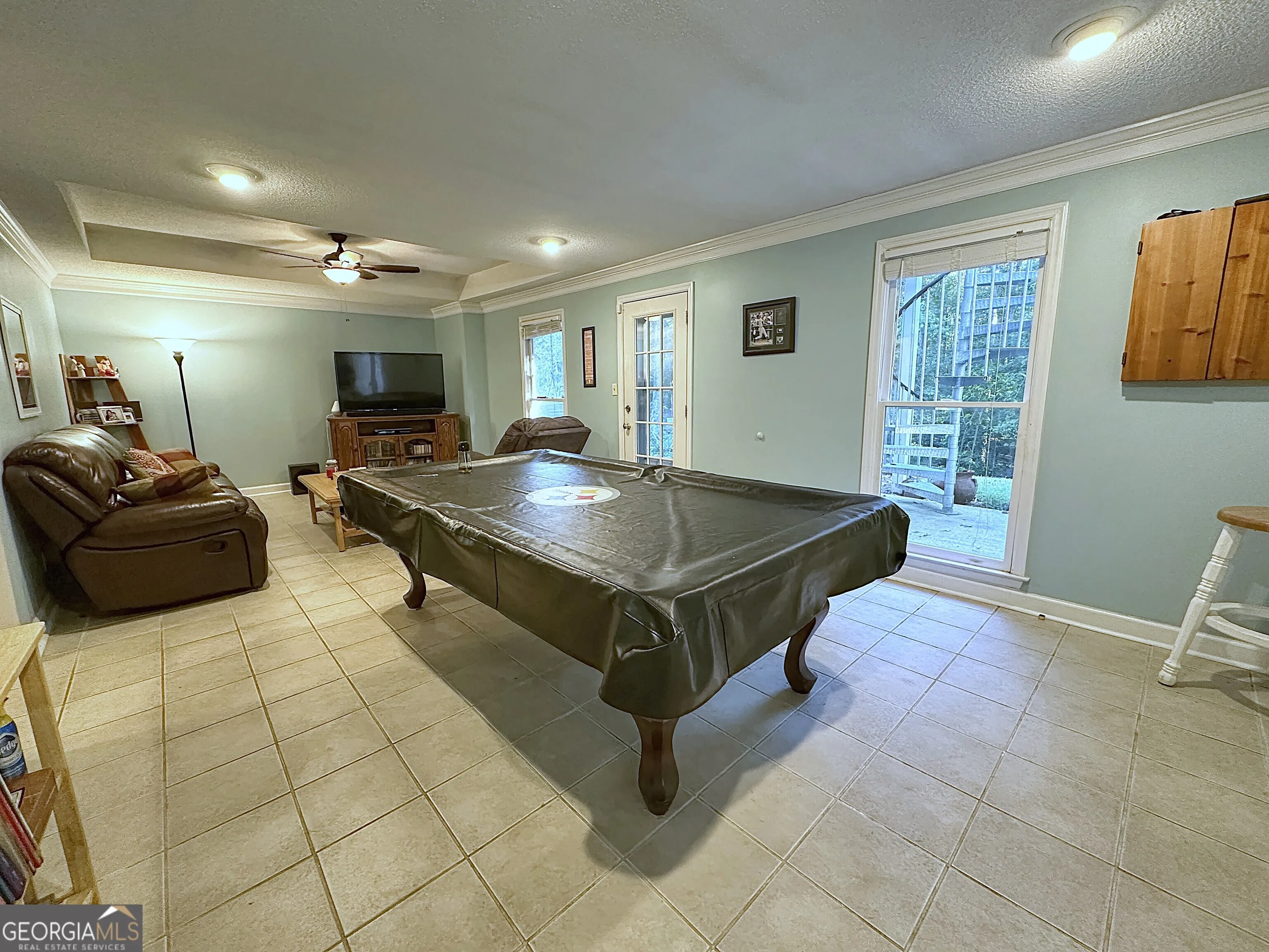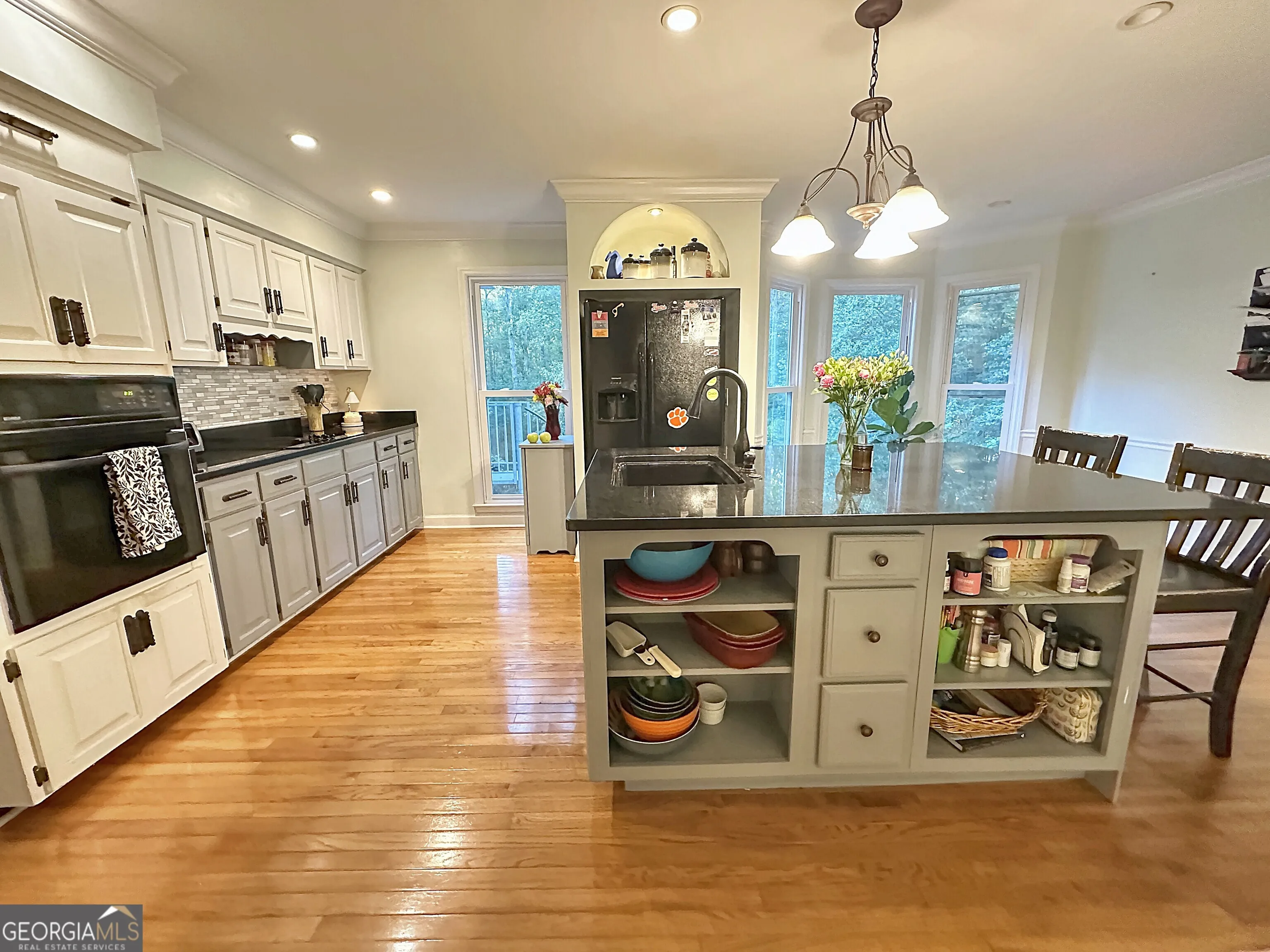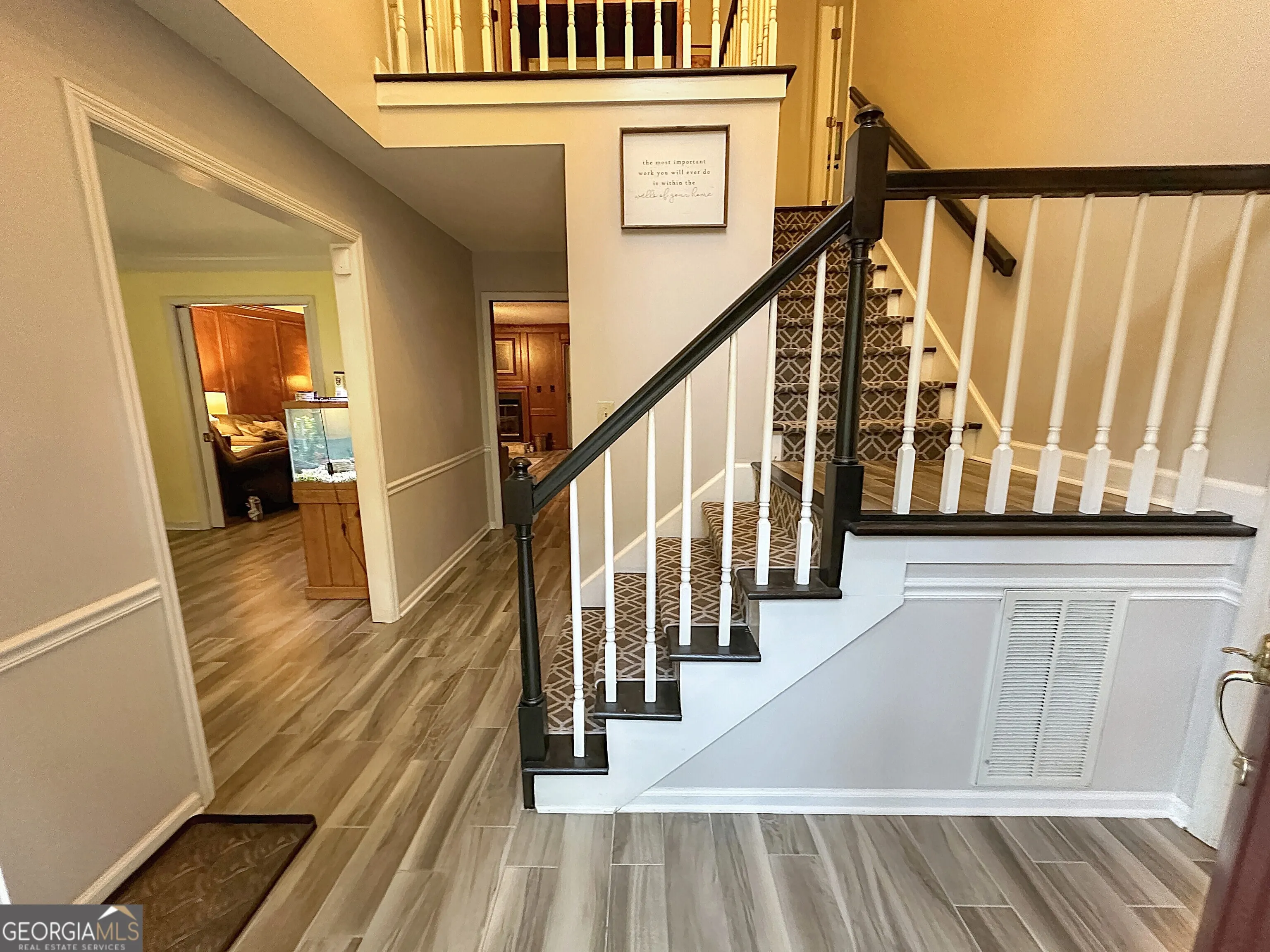 Welcome to this spacious home in a well-established neighborhood, just minutes from Highland Marina. From the moment you step inside, the inviting foyer sets the tone for the thoughtful layout and generous living spaces throughout. The large living room features a cozy gas fireplace and a built-in wet bar, perfect for entertaining, while a separate dining area and an office/sitting room provide flexibility for both formal and everyday living. The massive kitchen is a chef’s dream with a center island, bay-window breakfast area, and all appliances included. Beautiful wood-effect ceramic tile flooring flows throughout the main level, combining style and durability. Upstairs, the primary suite offers a relaxing retreat with a tiled shower and double vanity in the bath. Three additional bedrooms share a convenient Jack-and-Jill bath. The finished basement expands the living space with a bonus/5th bedroom, large game area with pool table, and a cozy second living room-ideal for family fun or hosting guests. Storage will never be a concern with the abundance of closets throughout, and recent upgrades bring peace of mind: both HVAC units replaced, energy-efficient windows installed, updated light fixtures, gutter guards, and more since the sellers ownership. Outdoor living shines with a gorgeous screened porch overlooking the private backyard, plus a covered grilling area. The property backs up to Corps of Engineers land, adding privacy and natural beauty. This home truly combines comfort, space, and modern updates-all in a desirable location near the lake.