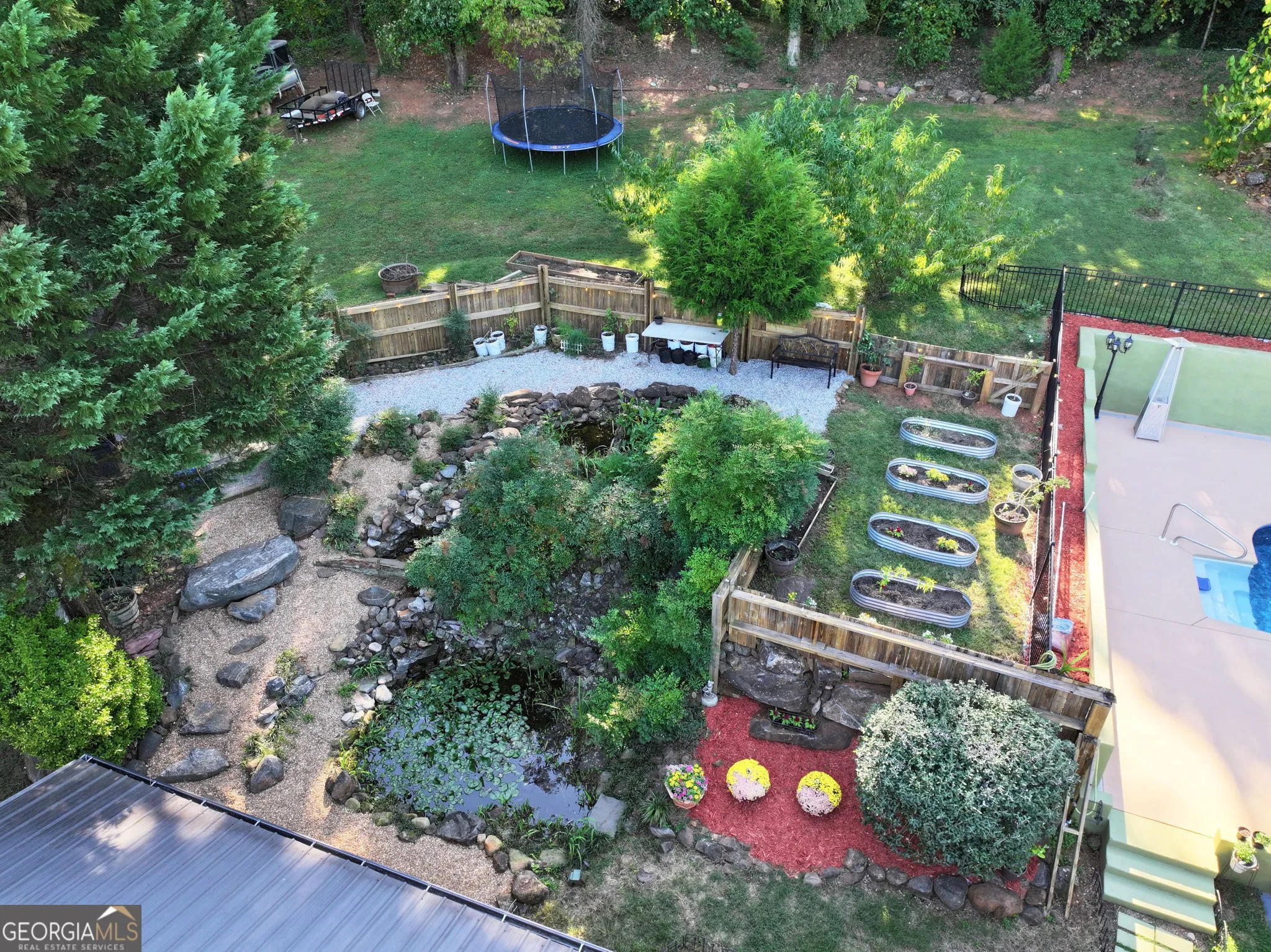FRESH PAINT IN THE FAMILY ROOM * GRANITE COUNTERTOPS IN THE KITCHEN AND BATHROOM * This home keeps getting better! Located in an exceptional school district and just minutes from everything, is nestled on 1.63 acres of beautifully landscaped grounds. Featuring a sparkling pool, delicate water features, indoor and outdoor living, and over 3,100 square feet of space ready for you to call home. This spacious tri-level residence blends comfort, convenience, and outdoor living in a truly one-of-a-kind setting. With four bedrooms plus a bonus room, three full bathrooms, and a thoughtful layout, it offers room to relax, entertain, and enjoy every season. As you step through the front door, gleaming hardwood floors invite you to explore the home’s many unique spaces. Designed to support everything from everyday meals to holiday feasts, the kitchen features granite countertops that provide a warm, functional work surface, complemented with a matching granite island. Cooking enthusiasts will appreciate the gas cooktop and the rare bonus of a second range, ensuring there’s plenty of space for preparing large meals. A generous walk-in pantry connects the kitchen and family room, keeping essentials close at hand and making it easy to move between cooking and entertaining. The dining room rises dramatically with a two-story ceiling, creating an airy, open atmosphere filled with natural light. Along one wall, a built-in window seat invites you to relax and take in expansive views of the backyard. The tall windows stretch upward, emphasizing the room’s height and allowing sunlight to pour in throughout the day, while a classic brick fireplace, updated with gas logs, adds warmth and character. The space feels both grand and welcoming-perfect for gatherings that flow effortlessly between the indoors and the peaceful outdoor setting. A flexible floor plan provides multiple gathering spaces, including a bright sunroom or playroom off the kitchen with windows looking out to the pool on one side and built-in storage on the other. Upstairs, you’ll find three of the four bedrooms, including the primary suite, two additional bedrooms, and a second full bath. Downstairs, the fourth bedroom functions as a comfortable secondary suite, complete with a wood-burning fireplace, large walk-in closet, private bath, and a versatile bonus room. An optional private entrance from the backyard adds flexibility for guests, extended family, or independent living. Step outside to your private haven. A sparkling 18×36 vinyl in-ground swimming pool, installed in 2023 with a new pool pump in 2025, invites you to unwind or host summer gatherings, while the expansive covered deck and backyard pavilion offer shaded spots for dining and entertaining. The fenced backyard provides privacy and security, making it ideal for both family living and entertaining guests. For moments of peace, explore the landscaped grounds where a pond with a cascading waterfall is home to lotus flowers and surrounded by pollinator-friendly plantings. Fruit trees, herbs, vegetables, and berry bushes offer seasonal harvests and add to the property’s natural beauty. Every detail of the landscape has been designed to create visual appeal and harmony with nature. Additional highlights include a welcoming front porch, a spacious carport and 2 additional parking pads offer room for multiple vehicles or even a boat, and ample storage. This property is more than just a house-it’s a way of life. Imagine mornings with coffee on the porch, afternoons by the pool, evenings gathered under the pavilion or covered deck, and weekends enjoying fresh fruit or vegetables from your own trees and plants while listening to the soothing sounds of the waterfall pond. With its rare combination of updated interiors, expansive outdoor living, and over an acre and a half of land in the middle of town, this home is truly special.