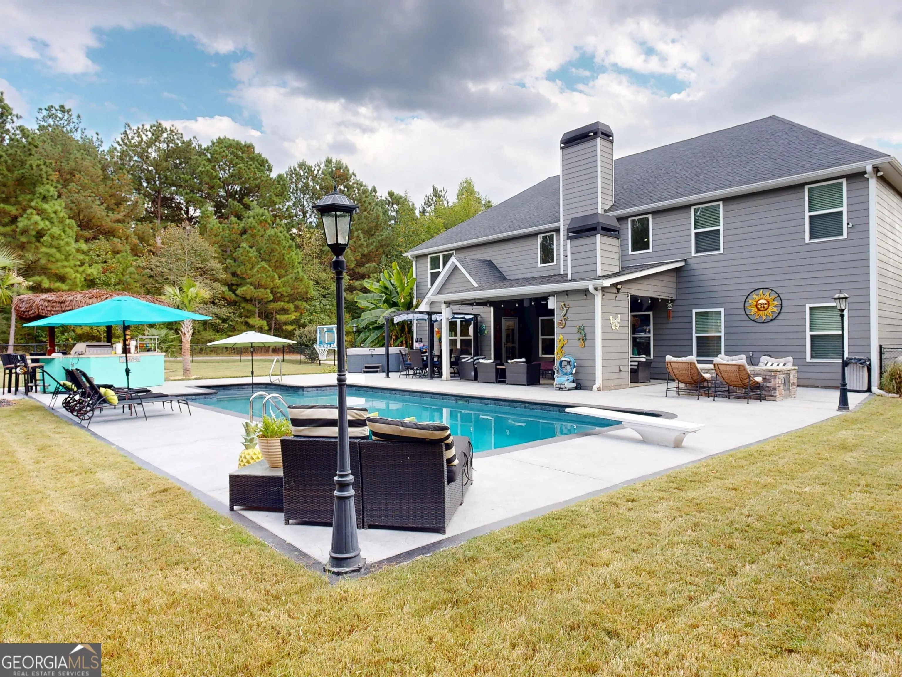 Welcome to this Stunning two-story Craftsman-style home nestled on 5 peaceful acres, offering the perfect blend of timeless design and modern comfort. With 5 spacious bedrooms, 3.5 bathrooms, and thoughtful upgrades throughout, this property is ideal for both everyday living and entertaining. Inside, you will find an inviting layout that flows beautifully from room to room. The main floor features a large family room with a fireplace that is open to the gourmet kitchen with marble counter tops and stainless-steel appliances, formal dining room, and a serene master suite with a spa-inspired ensuite bath. Stunning Hardwood floors span both levels of the home, adding warmth and elegance throughout. Upstairs, there are four additional bedrooms and two full bathrooms, loft that offers space and privacy for family and guests. Step outside to enjoy your gorgeous private backyard, featuring and in-ground swimming pool, lush landscaping, and a serene atmosphere for entertaining and relaxing. Gorgeous stone firepit. Front and back yard fenced in. The 5-acre lot provides plenty of room to garden, chicken pens, or to just simply enjoy the outdoors. For the hobbyists or those in need of extra storage, the property includes a 42×42 pole barn with electricity and attached workshop. Perfect for RV’s, tools or doing home projects. Located in a peaceful, rural setting yet conveniently close to downtown Senoia. This home has it all – space, style and the kind of outdoor living most only dream of. Call today to schedule your private showing.