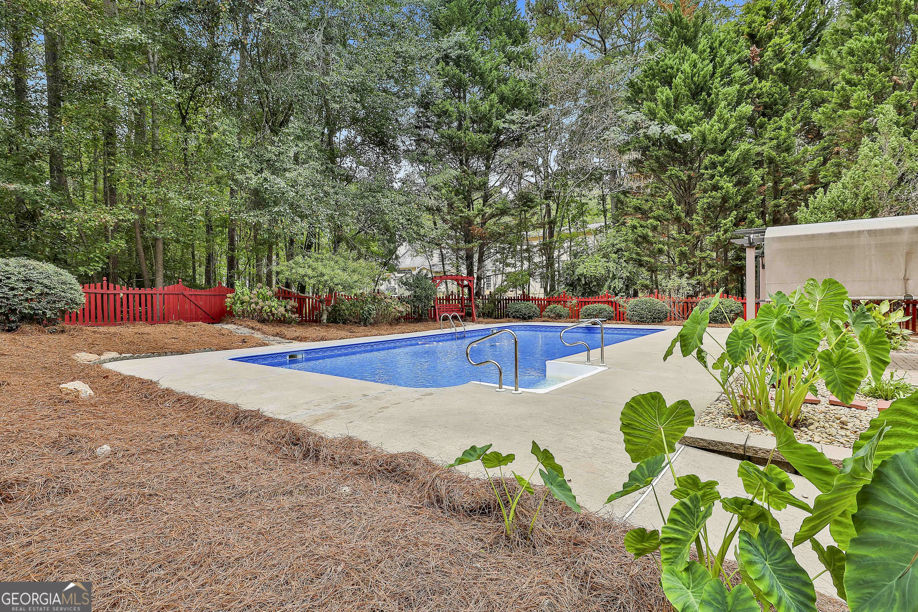 Brand new roof, freshly power-washed, and recently painted! This beautifully maintained two-story traditional home with a pool sits on over 1 acre-a rare find in Peachtree City. The soaring two-story foyer is flanked by a formal living room (perfect for an office or playroom) and a spacious dining room. Just beyond, a powder room leads into the open family room with custom built-ins and a striking accent wall. The updated kitchen boasts granite countertops, stainless steel appliances, a walk-in pantry, and island seating-all overlooking the sparkling 20′ x 40′ in-ground pool. Step outside to a private backyard designed for entertaining, complete with a pergola, swing, and ample space for dining and lounging. Upstairs, you’ll find three generous secondary bedrooms, a stylishly updated full bath, and a large laundry room. The primary suite impresses with tray ceilings, dual closets, and a spa-inspired bath featuring a frameless tile shower, free-standing soaking tub, double vanities, and designer tile flooring. Additional highlights include hardwood flooring and pride of ownership throughout. Connected to 100 miles of golf cart paths and just minutes to Starr’s Mill schools and shopping-this move-in ready home is waiting for its next owner!