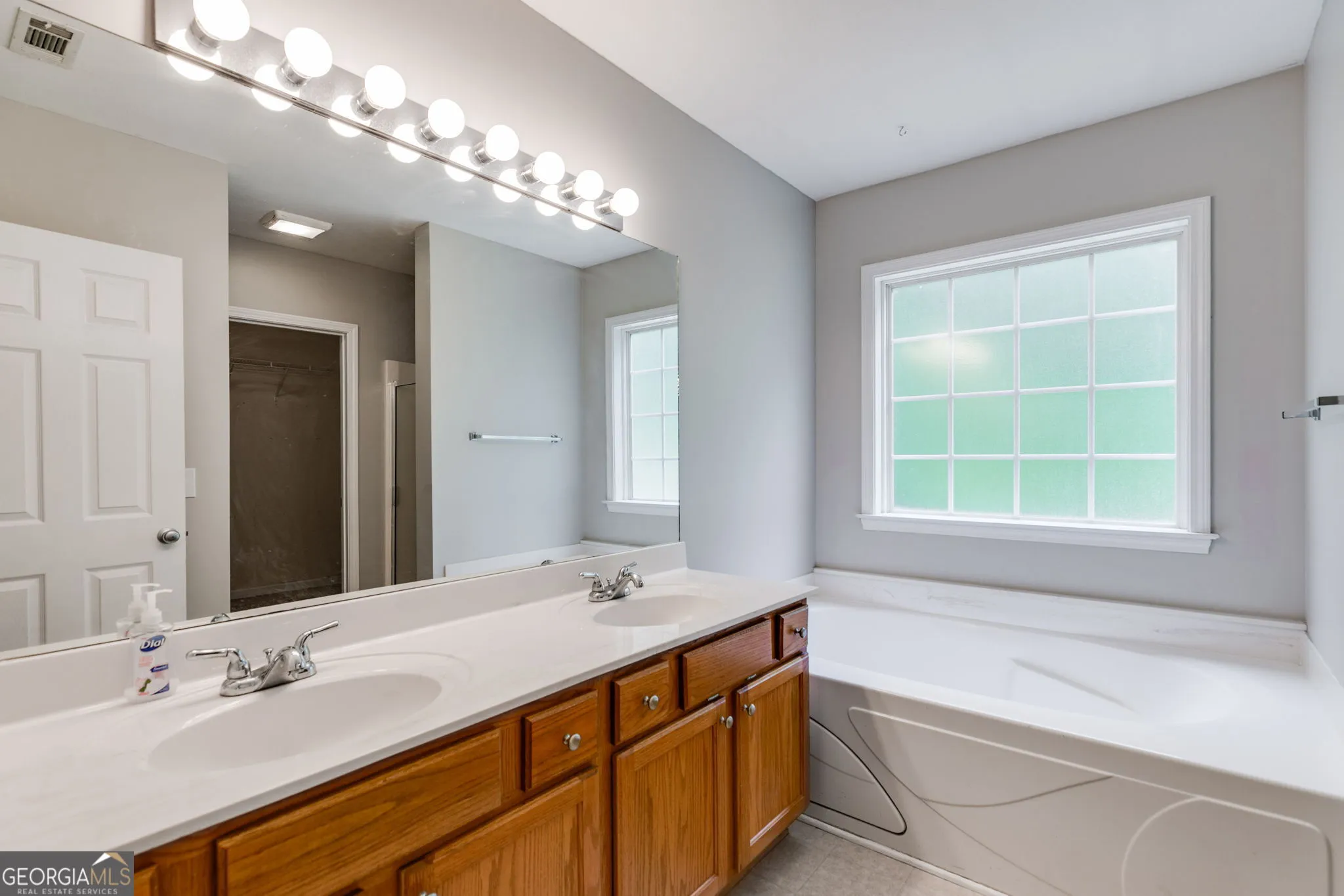 : Walk-In Closet(s), High Ceilings, Double Vanity, Master On Main Level, Pulldown Attic Stairs, Separate Shower, Soaking Tub