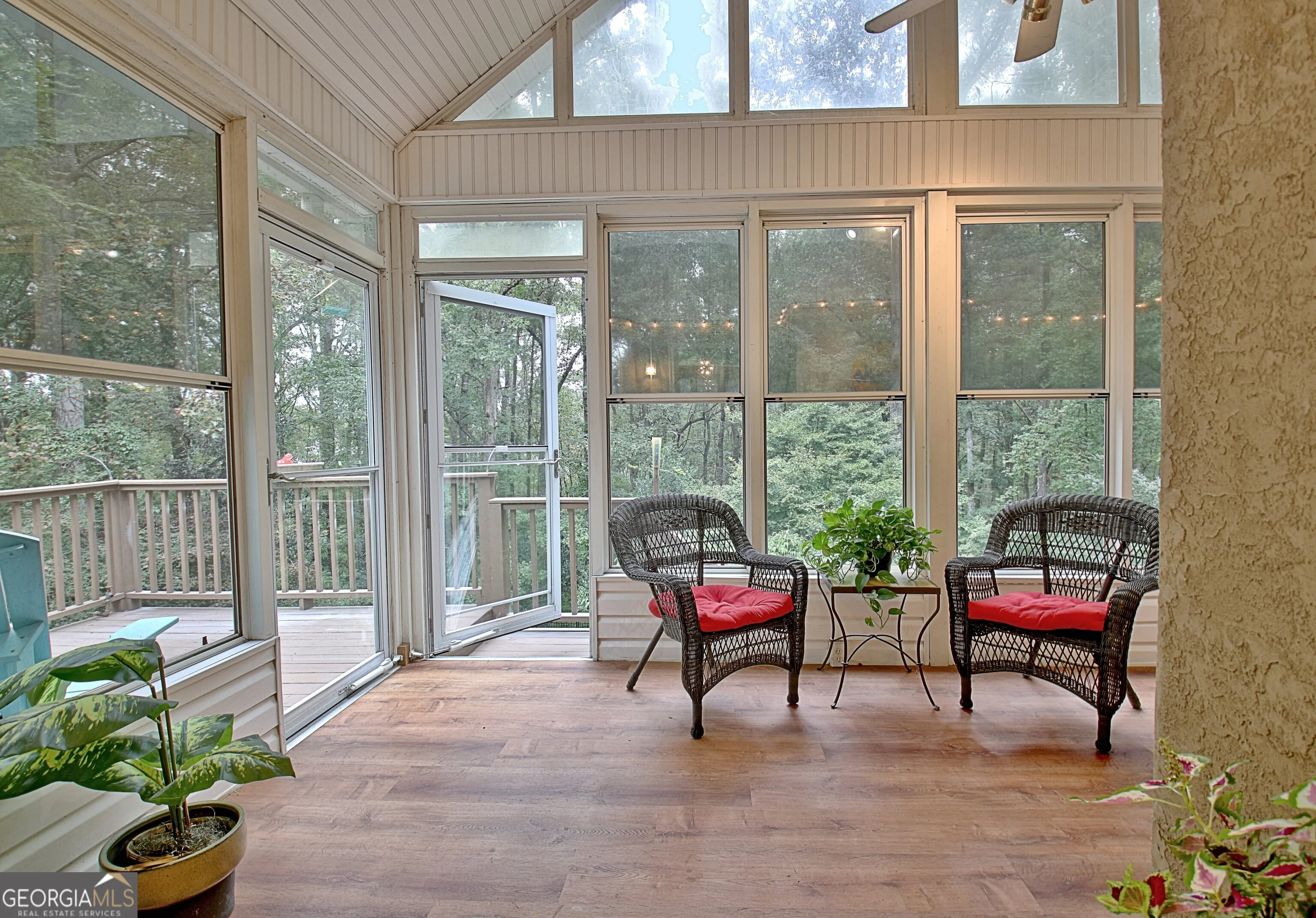 COVETED RANCH IN PLANTERRA RIDGE! This highly sought-after ranch with a finished terrace level offers the perfect blend of comfort, functionality, and privacy. Gleaming hardwood floors flow throughout the open main living space and primary suite, creating a warm and inviting space for everyday living and entertaining. Two additional bedrooms on the main floor share a full bath. Enjoy morning coffee in the bright sunroom overlooking the private backyard. Designed for convenience, this home features laundry access on both levels. The finished terrace level adds valuable living and recreation space, including a large bedroom, full bath, and oversized workroom with direct access to the golf cart garage. With plenty of room to add a kitchen, it’s ideal for multi-generational living. Planterra Ridge is known for its exclusive golf course and stunning sunsets over Lake McIntosh. Neighborhood amenities include a swimming pool, volleyball court, sports court, and a newly designed playground. Peachtree City is a unique golf cart community with over 100 miles of multi-purpose biking, running/walking, and recreation paths. From this home, you’re just a quick golf cart ride to Line Creek, and easy access to Lake McIntosh, shopping, dining, and all that make this area so desirable. Welcome Home!