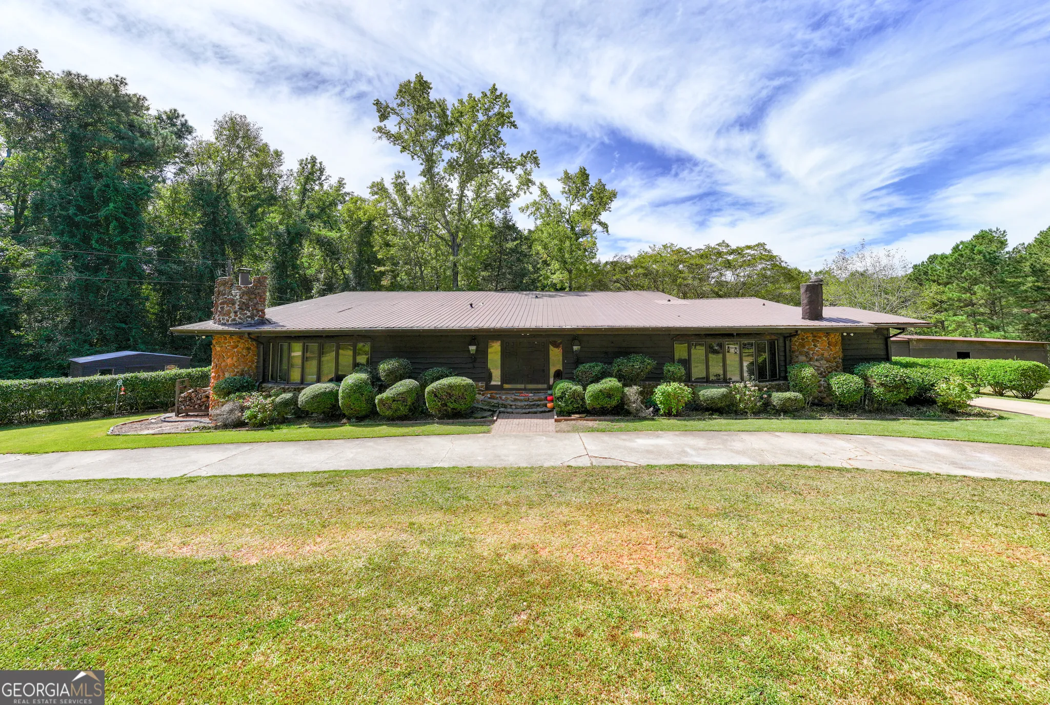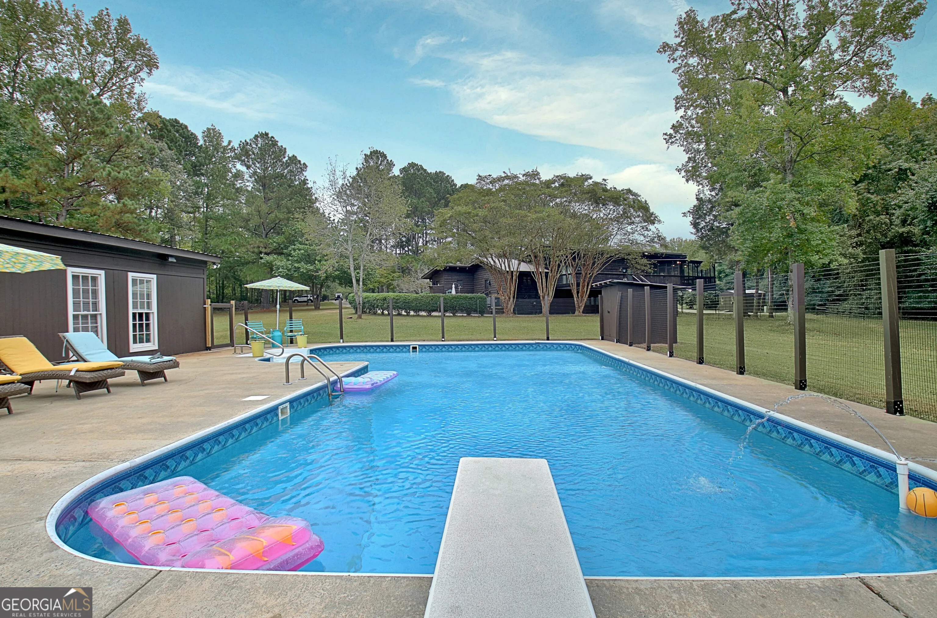 Welcome to 1604 Judson Bulloch, Warm Springs – A Stunning Family Estate in Meriwether County. Set on approximately 3.93 acres of scenic pasture and wooded landscape, this exceptional 5-bedroom, 5.5-bath estate offers 4,425 square feet of thoughtfully designed living space. A true family compound, this property is perfect for relaxation, entertaining, and enjoying the best of country living-with a luxurious saltwater pool as its centerpiece. This spectacular home was designed and built by the legendary Chip Moman, an inductee of both the Rock & Roll and Country Music Halls of Fame. His legacy is reflected in every corner of this custom-built residence, where timeless style meets modern comfort. Inside, the open-concept layout seamlessly connects spacious living and dining areas. The chef’s kitchen is a dream, featuring double islands, sleek granite countertops, a stylish tile backsplash, and a built-in gas griddle-perfect for hosting and everyday meals. Just off the kitchen, you’ll find a large mudroom with laundry, as well as a hallway leading to a guest bedroom with its own full bath. The main-level primary suite is a serene retreat, complete with a cozy wood-burning fireplace, abundant natural light, and an elegant en-suite bath boasting beautiful tile work, double vanities, a soaking tub, and a separate shower. Upstairs, two additional guest bedrooms each have private full bathrooms. One of these rooms includes a spacious sitting area and opens onto a screened porch and deck-ideal for quiet mornings or evening relaxation. The terrace level offers even more living space, including a bedroom, a full bath, a cozy sitting area, and the potential for an additional bedroom or flexible living space. A unique feature of this level is the underground storm shelter-offering peace of mind in any weather. Outdoors, the saltwater pool is complemented by a large pool house that includes a game room, wet bar, wine cellar, and ample space to host unforgettable gatherings. On the other side of the pool house, a spacious storage area adds convenience. A multi-vehicle carport, generous storage space, and dedicated RV/boat parking make this home ideal for those who value both adventure and organization. Travel times: Minutes to downtown Warm Spring and less than 20 minutes to Pine Mountain~ 45 minutes to Newnan & Peachtree city~ 1 hour to Hartsfield-Jackson Atlanta International Airport~ 35 minutes to Lagrange~50 minutes to Columbus and for our Florida Friends: 4 hours to Florida Panhandle~ 6.5 hours to Tampa and 9 hours to Boca Raton.