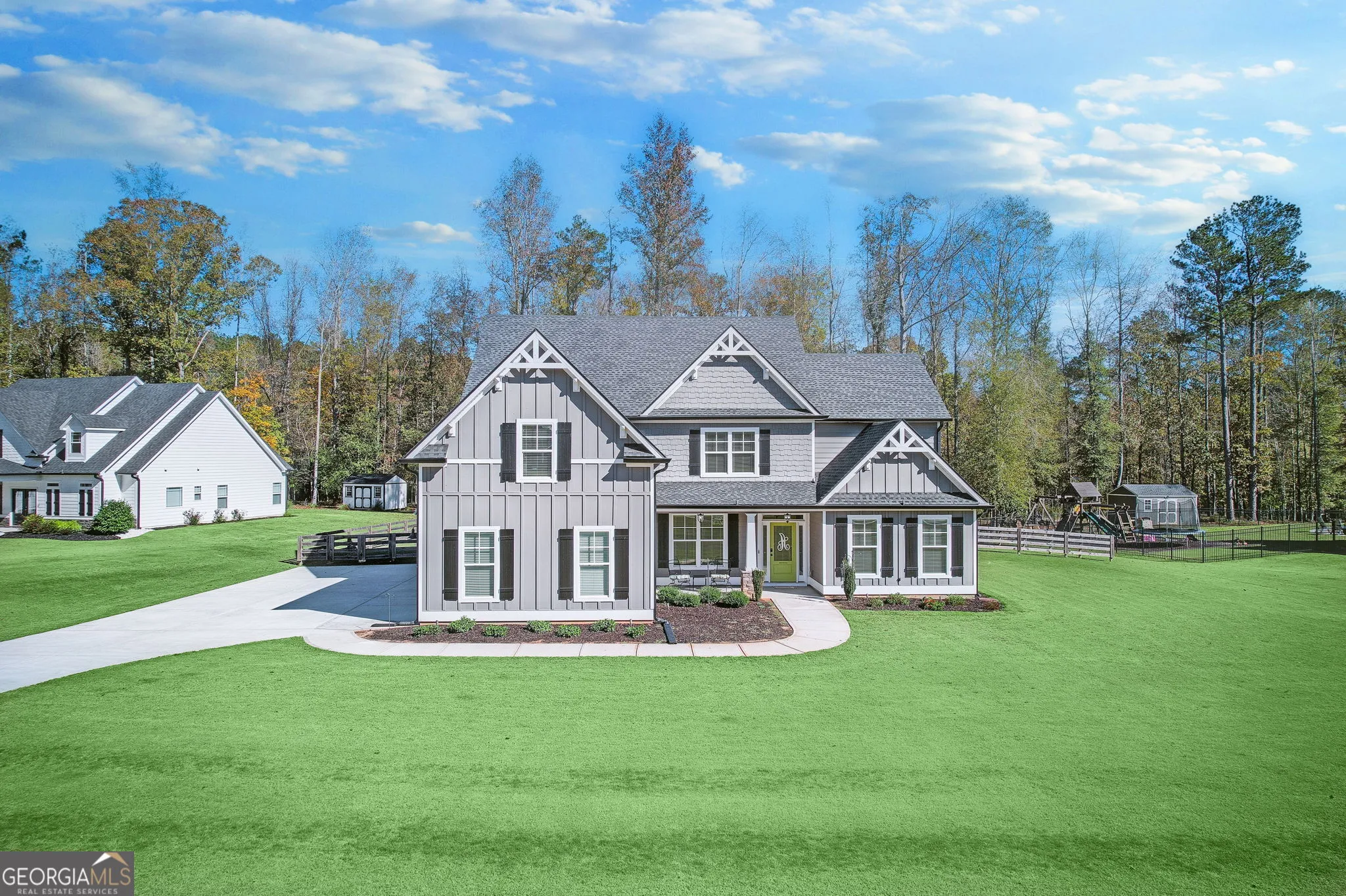 IMMACULATE 2-story Craftsman on 1 acre in Moreland. Over 3,800 sq. ft. Main floor features spacious owner suite w/custom shower & separate soaking tub. The kitchen is open w/stainless appliances, nice finishes ,pantry and island that opens into breakfast area with lots of natural light and overlooks pretty board-fenced back yard. Also there is a large, open living area w/formal dining and a convenient guest half bath. The upper level has 4 additional bedrooms & 2 baths plus a multi-media room. There is a 3-car side entry garage and the architectural roof & gutters were new in 2023. Please make it a priority to visit this “Smart Home” in a small, private subdivision with so much to offer and convenient to Newnan ,Senoia and i-85!