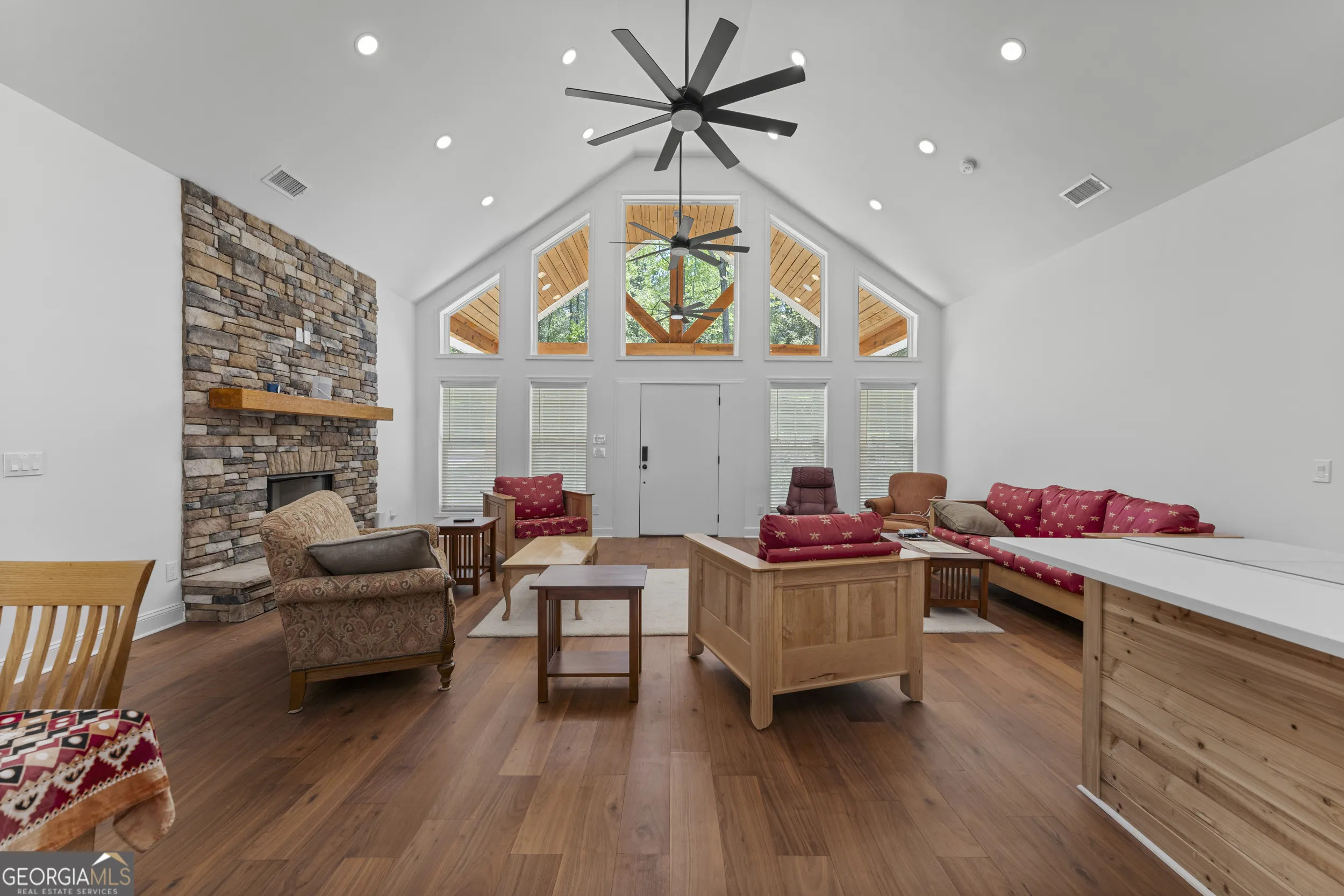 : Walk-In Closet(s), High Ceilings, Vaulted Ceiling(s), Double Vanity, Split Bedroom Plan, Pulldown Attic Stairs, Separate Shower, Soaking Tub, Bookcases