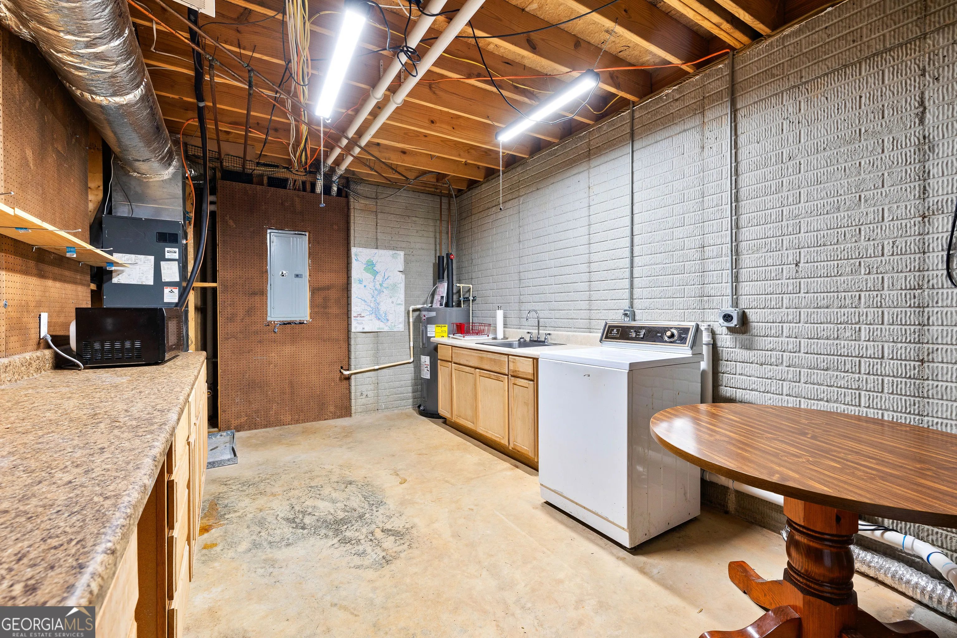 Welcome to this beautifully maintained home offering the perfect blend of comfort, space, and versatility. Step inside to find vaulted ceilings, crown molding, and a cozy wood-burning fireplace anchoring the spacious living area. French doors open to the screened back porch and covered deck overlooking the private backyard, while the charming front porch welcomes guests in style. The kitchen boasts a breakfast bar, ample cabinetry, generous counter space, and a walk-in pantry. The split bedroom design features a peaceful primary suite with a walk-in closet, double vanity, soaking tub, and separate shower, along with two additional bedrooms and a full bath on the opposite side. Downstairs, the finished basement adds incredible flexibility-featuring a large living area, 4th bedroom, optional 5th bedroom or hobby room, full bath, second laundry, and a summer kitchen. There’s also excellent storage space, making it ideal for an in-law suite, teen retreat, or guest quarters. Nestled in a quiet cul-de-sac neighborhood, this home offers peaceful living and easy access to West Point Lake and local amenities.