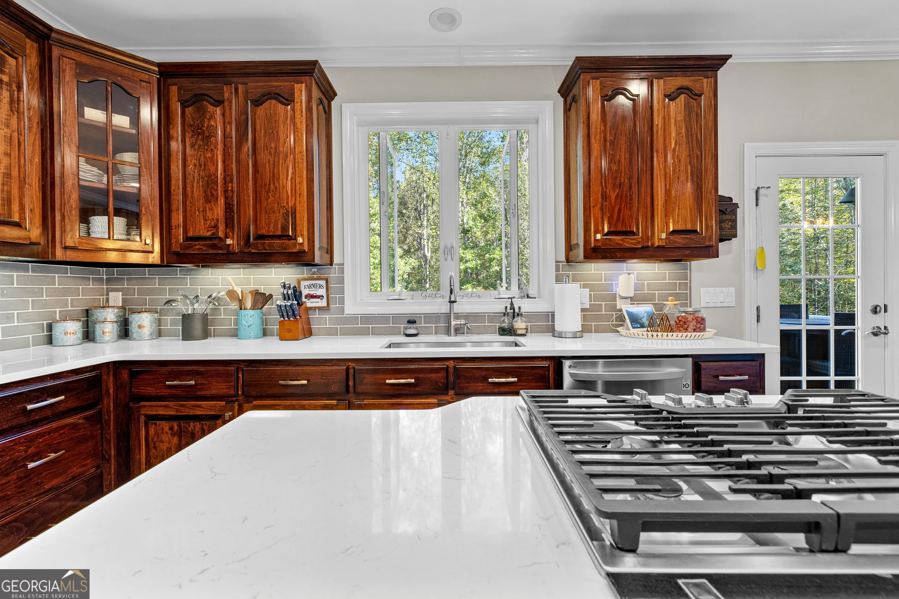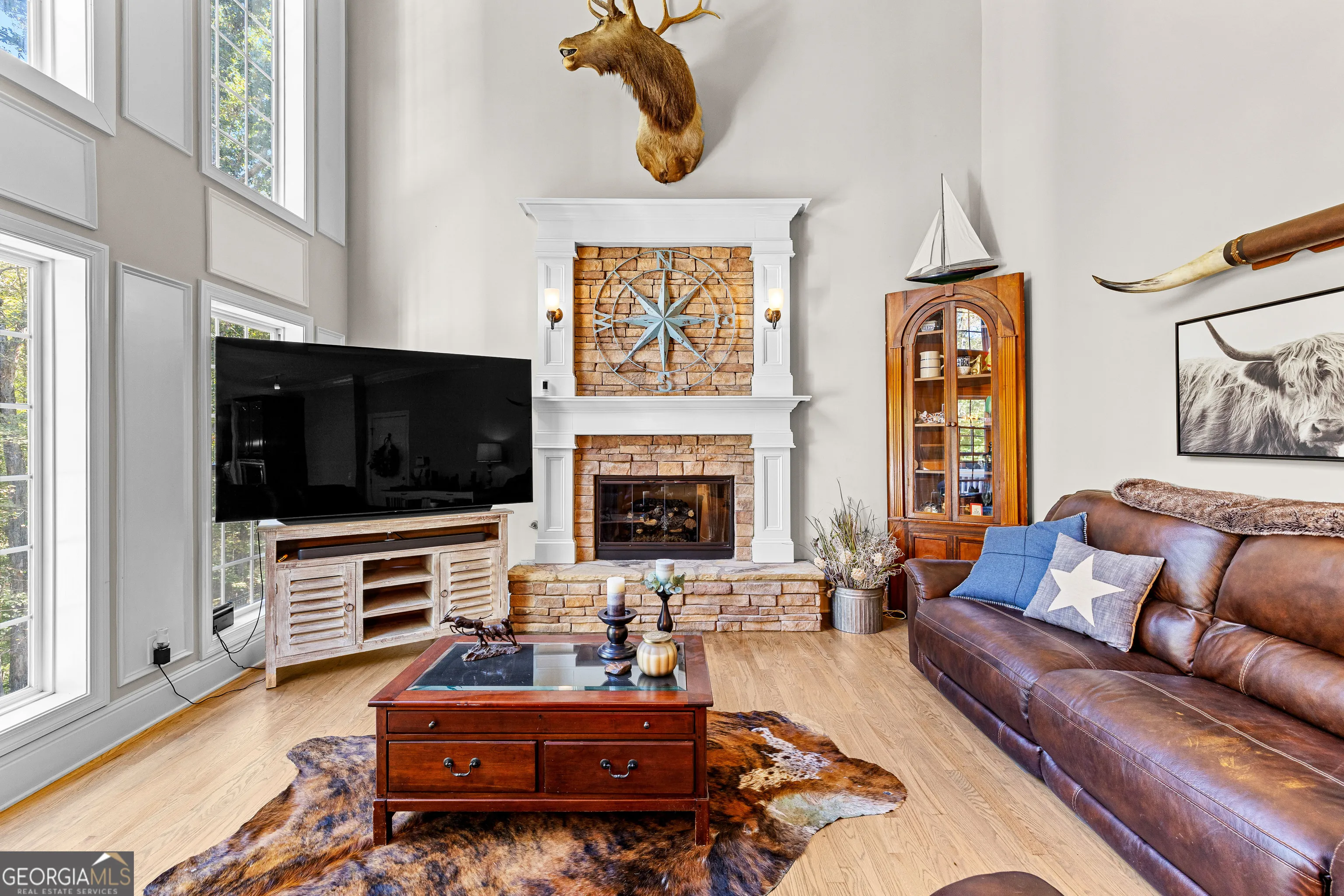Located in the prestigious Arbor Springs golf community, this 4-bedroom, 4 bath home with a finished terrace level offers timeless European-inspired architecture, elegant living spaces, and a private wooded backdrop, all in a location that perfectly balances tranquility with convenience. From the moment you arrive, the home’s circular driveway, manicured landscaping, and classic European-style exterior make a striking first impression. Inside, you’ll find soaring ceilings, gleaming hardwood floors, and a grand staircase that set the tone for the home’s inviting and refined atmosphere. The two-story great room serves as the heart of the home, featuring a floor-to-ceiling stone fireplace framed with custom millwork and a wall of oversized windows that fill the space with natural light and peaceful wooded views. The chef’s kitchen offers custom cabinetry, quartz countertops, stainless steel appliances, a double oven, and a large gas cooktop island, perfect for both everyday meals and entertaining. A formal dining room with vaulted ceilings and detailed trimwork adds warmth and elegance to the home’s design. The bedroom layout provides comfort and versatility. Upstairs, the primary suite is a serene retreat with a spacious sitting area and private fireplace, plus a spa-inspired bath featuring vaulted ceilings, a soaking tub, separate shower, dual vanities, and a custom walk-in closet. Two additional bedrooms share a Jack-and-Jill bath with double vanity, ideal for family or guests. On the main level, a fourth bedroom with a full bath that also opens to the hallway is perfect for guests or a home office. The finished terrace level offers endless possibilities, complete with a custom bar, living area with fireplace and built-ins, a full bath, and multiple flexible rooms ideal for a gym, office, or media space. Outdoor living is a highlight with multi-level decks, including an open-air grilling deck and a covered porch with dual ceiling fans, both overlooking the private, fenced backyard framed by mature trees. Recent upgrades include a new roof, exterior recently repainted, new gutters and downspouts, and a brand-new complete HVAC system for the basement, giving you peace of mind and efficiency for years to come. Living in Arbor Springs means enjoying an active, resort-style lifestyle. This golf course community features two swimming pools (including a new one currently being built), tennis courts, nature trails, a playground, and a community clubhouse, everything you need to relax, play, and connect. Enjoy being just minutes from I-85, Serenbe, B.T. Brown Reservoir, and Cochran Mill Park, and only about 25 minutes from Hartsfield-Jackson Atlanta International Airport, making travel and commuting remarkably convenient. This home beautifully combines luxury, comfort, and location, offering the best of both worlds: peaceful suburban living and easy access to Atlanta’s premier amenities.