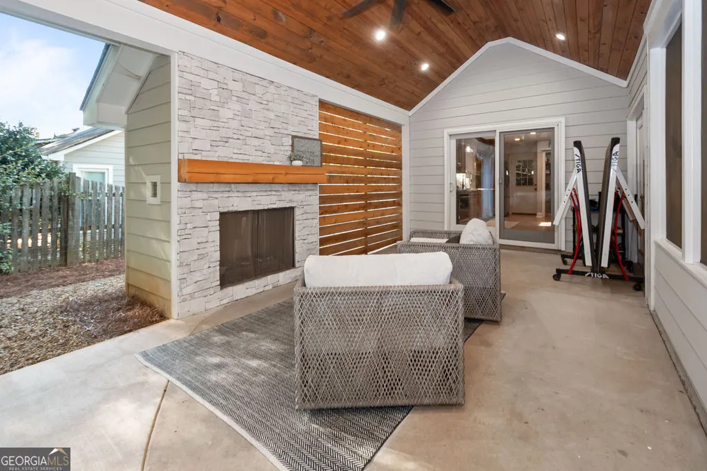 PEACHTREE CITY SHOWSTOPPER!!! Welcome Home! This beautifully renovated ranch in the heart of Peachtree City perfectly blends comfort, style, and Southern charm. With 5 bedrooms and 3 baths, this home offers plenty of space for family and guests – all wrapped in elegant design and thoughtful updates. Step inside to find gleaming laminate floors, cozy carpeted bedrooms, and designer touches throughout. The foyer opens into a warm and inviting family room featuring a vaulted ceiling, built-in shelves, and a fireplace that anchors the space beautifully. A versatile living area just off the foyer can serve as a home office, guest suite, or sitting room – highlighted by a gorgeous Palladian window and vaulted ceiling. The open-concept dining room flows seamlessly into the family room and kitchen, featuring a charming built-in window seat, brick flooring and French doors that lead outside. The kitchen is a true gathering spot, boasting rich wood cabinetry, gorgeous, unique granite countertops, stainless steel appliances, and a breakfast bar perfect for casual meals or morning coffee. The spacious owner’s suite is your private retreat, with a vaulted ceiling and a luxurious bath featuring a marble surround, pebble-tiled shower floor, garden tub, and separate vanities. But the real showstopper is out back – a stunning covered porch with soaring vaulted wood ceilings, a cozy outdoor fireplace, a relaxing bed swing, and a hot tub where you can unwind year-round. It’s the perfect place to enjoy a quiet morning, entertain friends, or simply soak in the peaceful surroundings. The level, fenced backyard also includes a patio and outbuilding, offering extra storage and plenty of space to play or garden. Impeccable, ranch homes like this are a RARE find in Peachtree City – full of character, beautifully updated, and move-in ready. Don’t miss your chance to make it yours! *Seller related to listing agent.