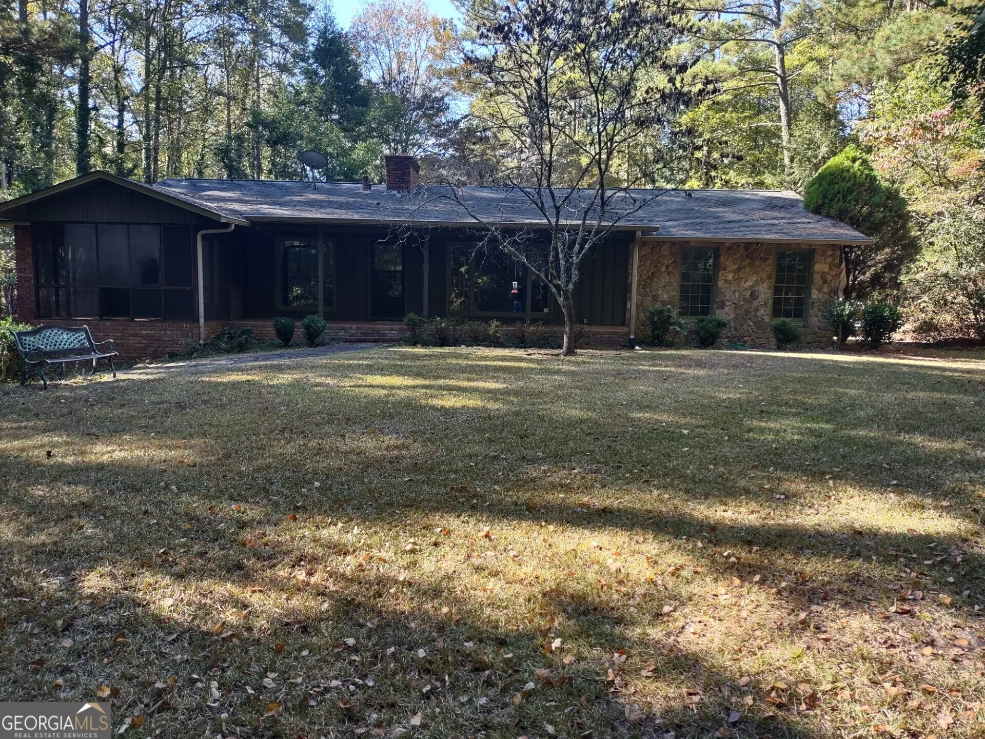 FIRST TIME OFFERED Custom built house in the middle of a 7.5 acre forest, house sits 350 ft. from road and has a 550 ft. road frontage. You may feel as though you are at a private vacation retreat, yet you are only a 10 minute drive to Fayette Pavilion, with Target, Belks, Walmart, Home depot, Publix, Cinema, and restaurants, just 25 minutes to Atlanta Intl. airport, and only a short distance to Trilith Movie Studios. This property has 2 potential building sites, and a spring fed stream that provides water for the deer that roam the property. This property has a flat backyard, perfect to add your own private swimming pool. This custom built house features an exterior with brick, stone, and cedar board and batten. The house has a split floor plan for extra privacy, all rooms have floor to ceiling windows, with a over sized picture window in the family room to let the outdoors inside. The walls of the family room are adorned with 600+ year old California clear heart redwood toung and grove paneling and built in redwood book cases on either side of the over sized stone fireplace. House sits on a full daylight unfinished basement with full bath and massonry fireplace. The kitchen comes with almost all new appliances. Most of the carpet has been removed, a $5000.00 closing credit towards new flooring is included giving the new owners the opportunity to choose the flooring that fits their taste. Fiber optic wifi is already in place, as well as Simply- Safe alarm system. This house comes with a one Year Home Warranty thu American Home Shield for your peace of mind. Don’t miss out on this rare and unique offering.
