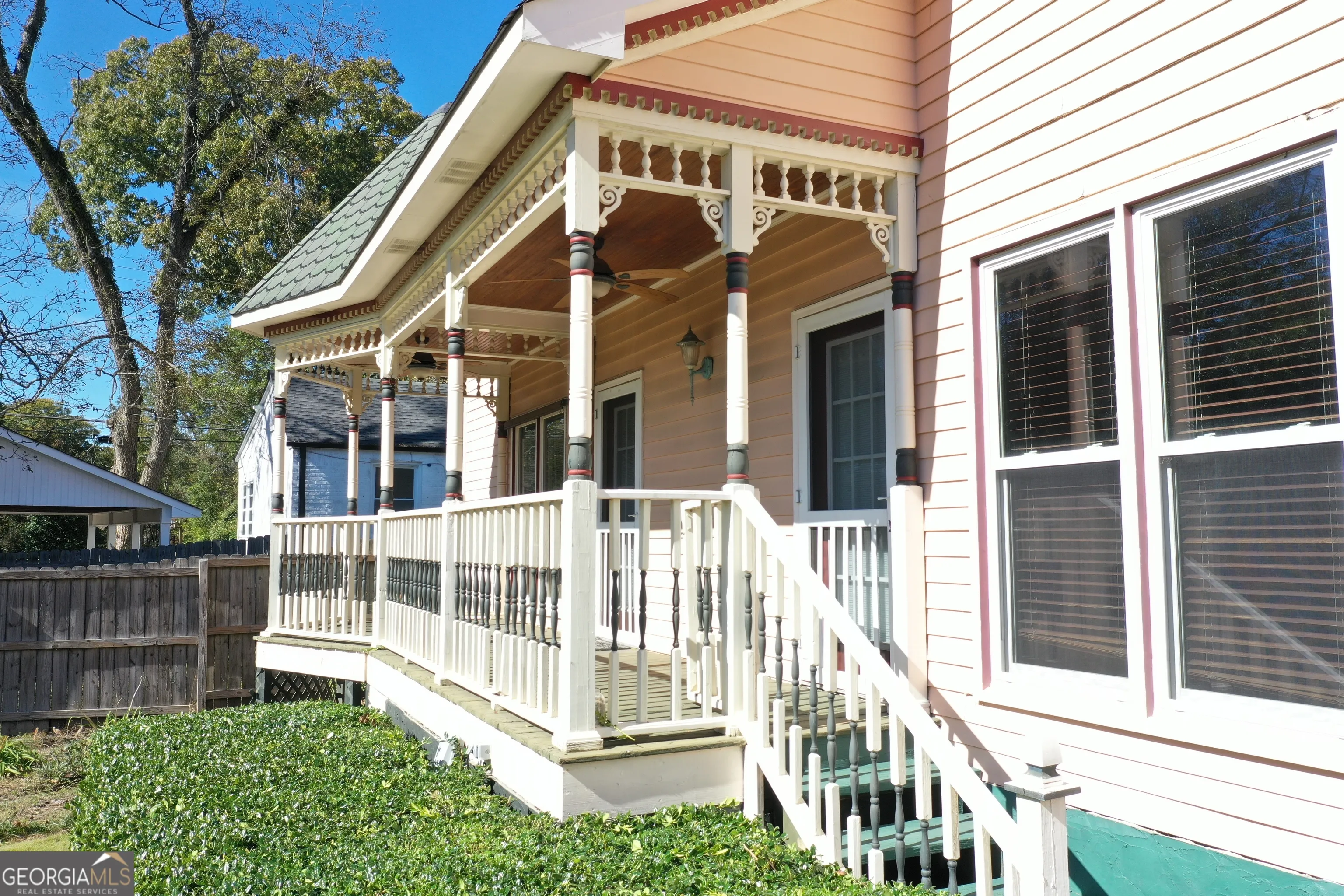 A victorian home built in 1907, renovated in late 1990’s, consisting of seven rooms; 3 bedroom 3 full bath, kitchen with breakfast room, dining room, living room, and great room. Beautiful pine flooring, tall ceilings(11 ft.), and large hallway/foyer and bedrooms. Master on Main level with gorgeous stain glass windows. Front porch, back porch and small deck. A 25′ by 36′ detached victorian style garage and workshop consisting of a 25′ by 24′ garage and an air conditioned 25′ by 12′ workshop with cabinetry and staircase leading to an unfinished loft.